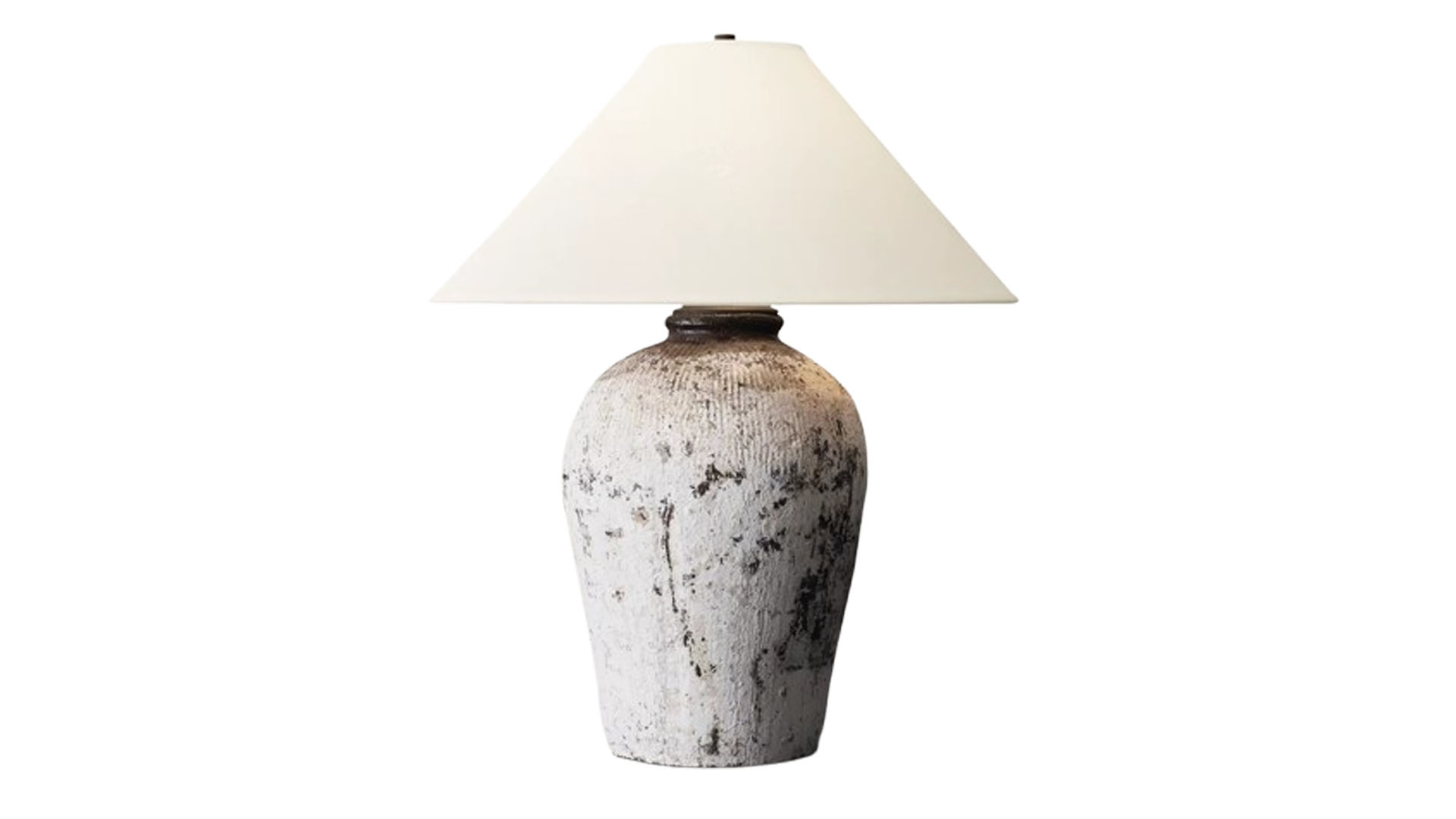 中式米酒器客厅卧室亚麻灯罩手工陶罐台灯