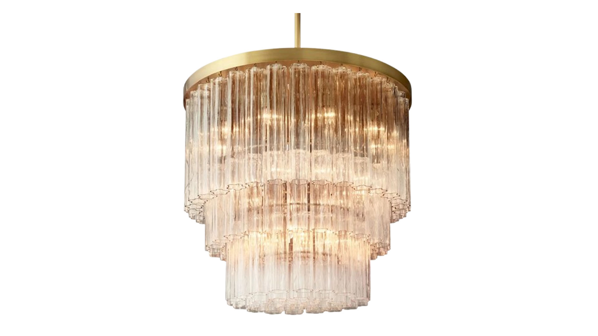 美式轻奢客厅餐厅三层圆形玻璃吊灯