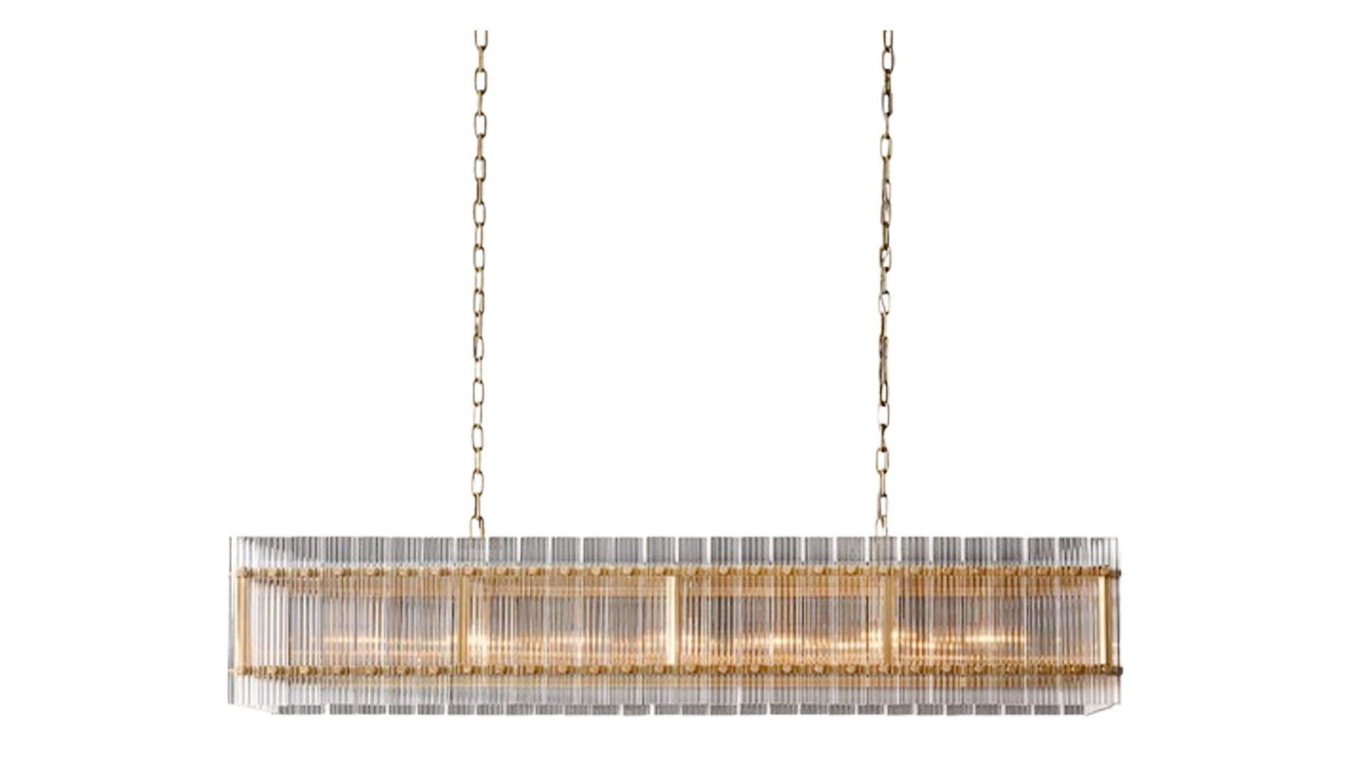 美式轻奢客厅餐厅凹槽矩形玻璃吊灯