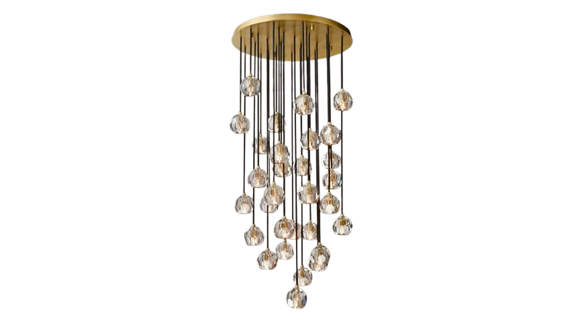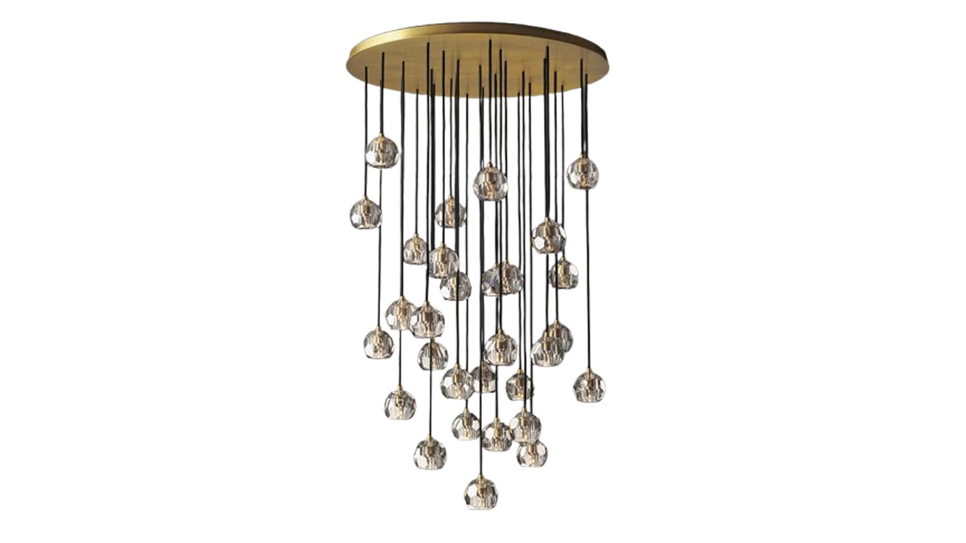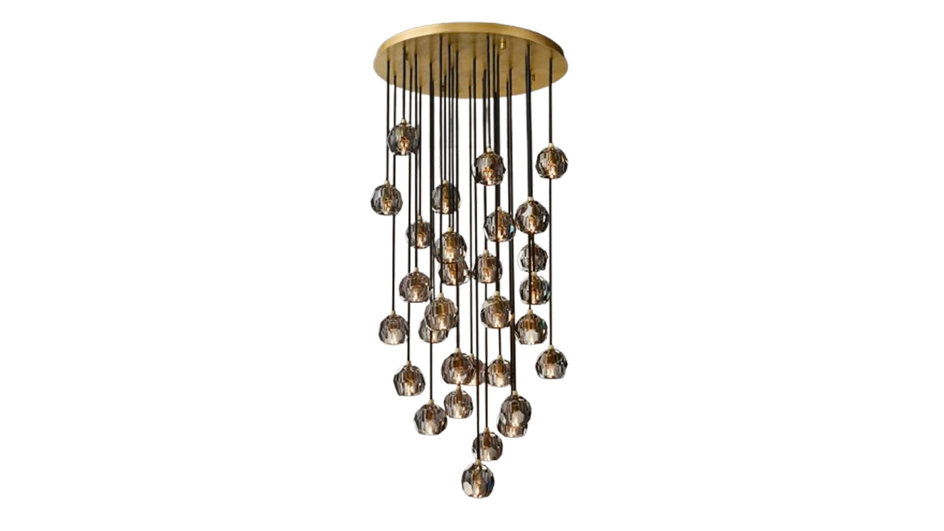 美式轻奢客厅楼梯烟熏玻璃吊灯