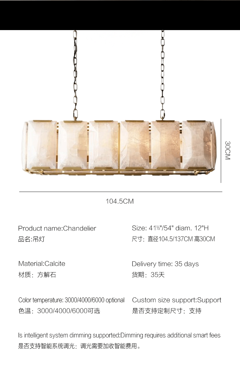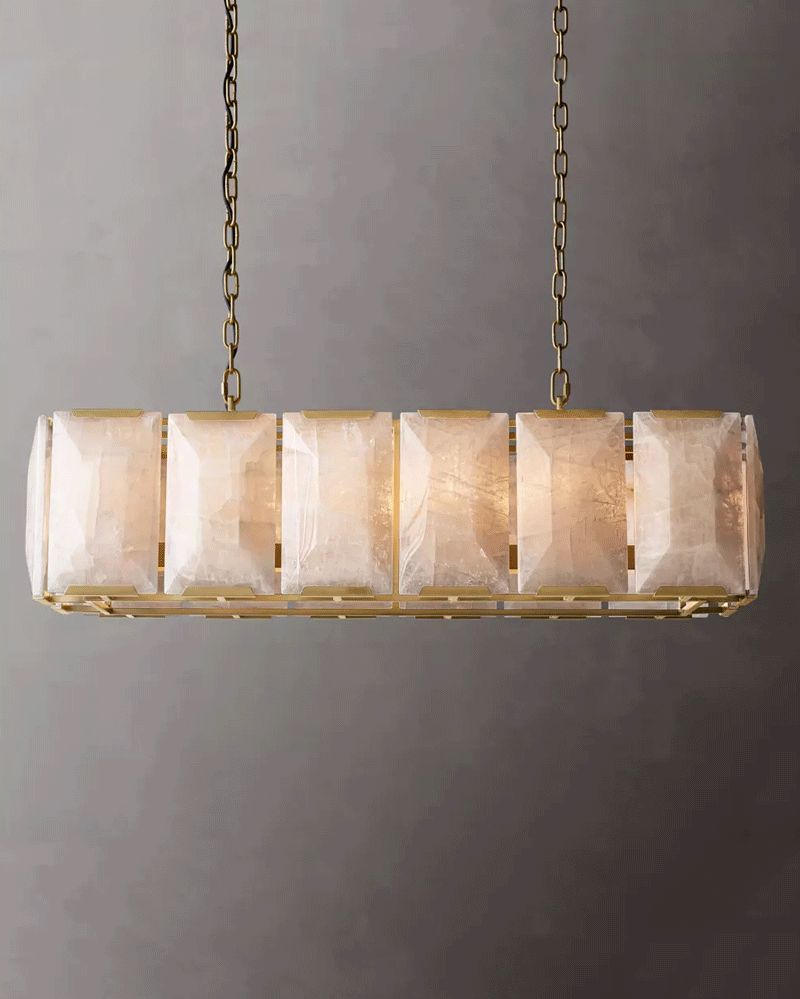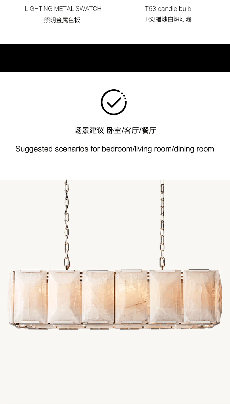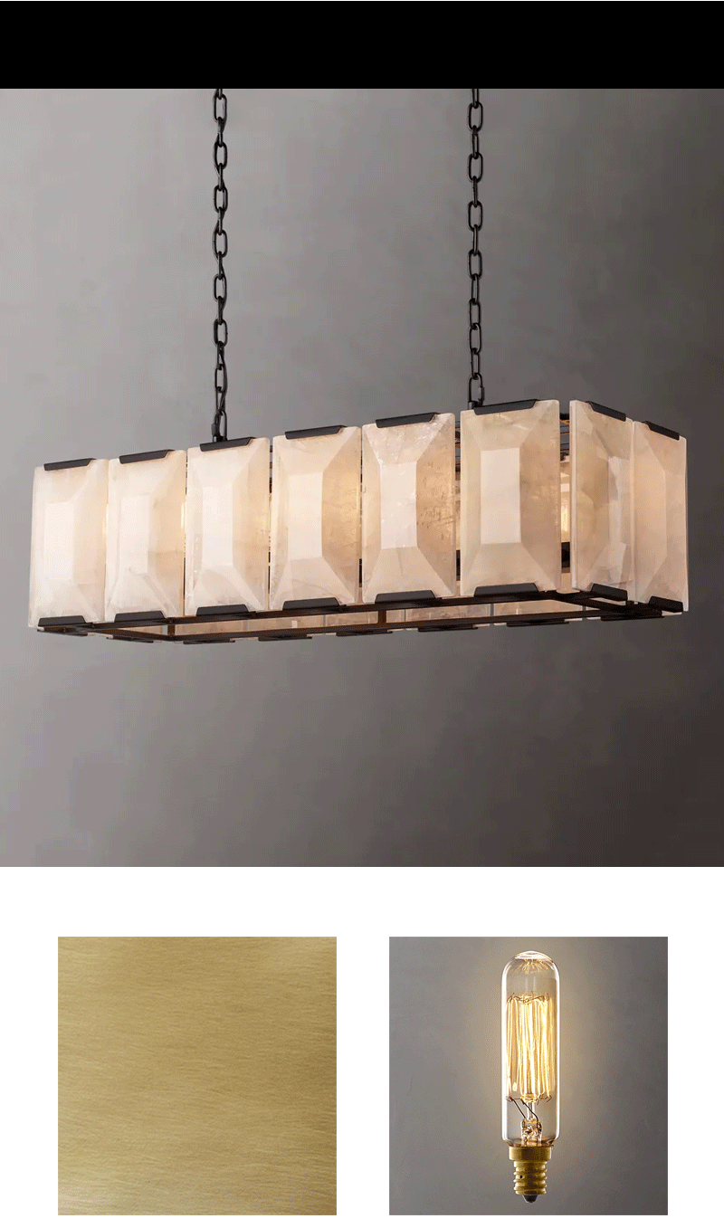 美式轻奢客厅餐厅矩形方解石吊灯