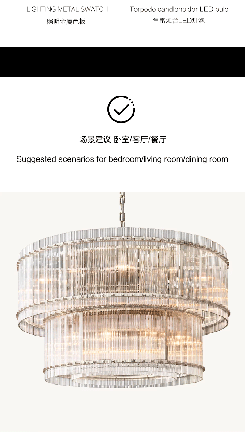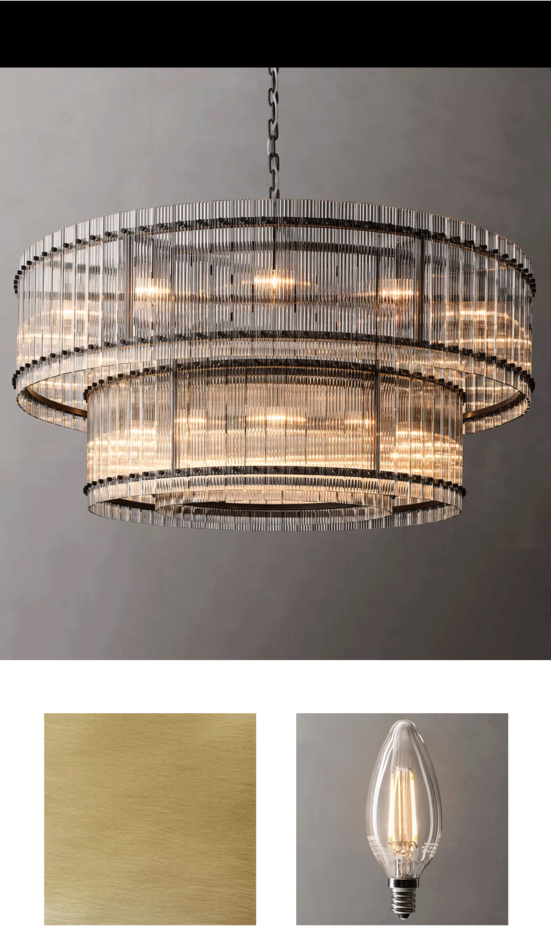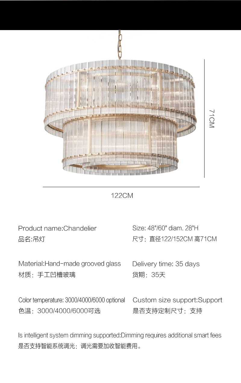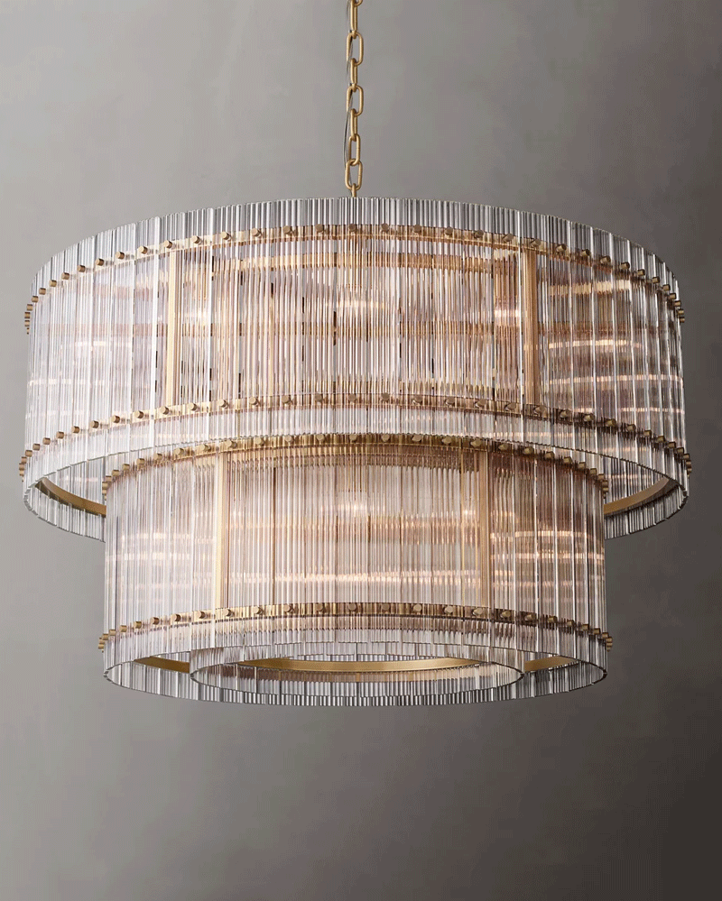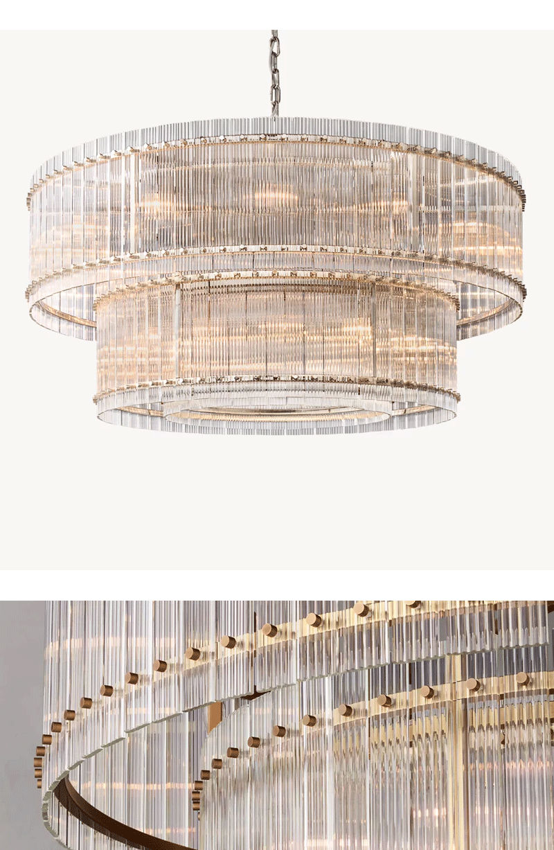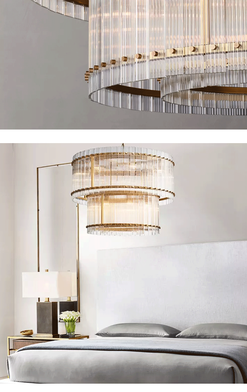 美式轻奢客厅卧室凹槽玻璃大吊灯