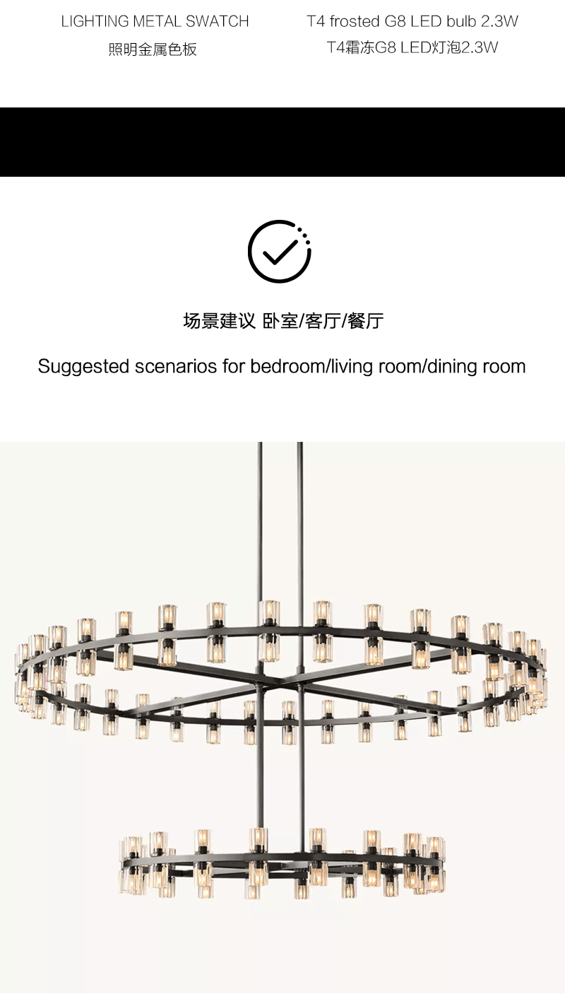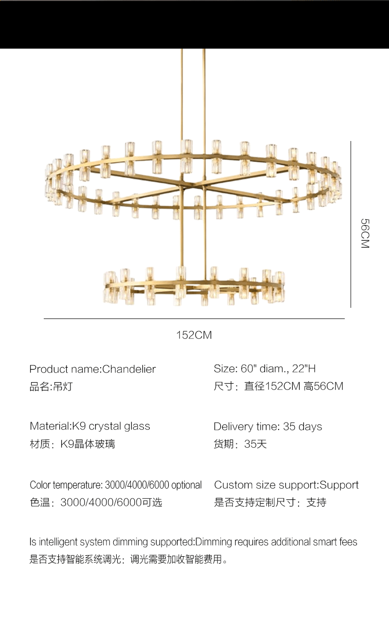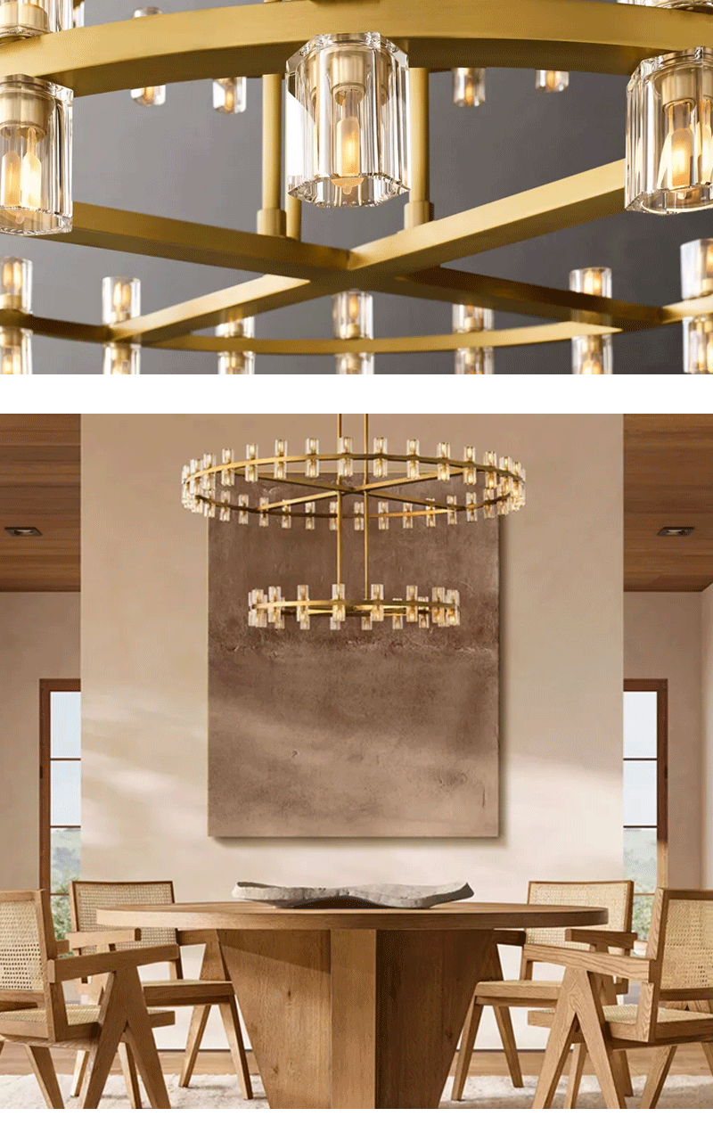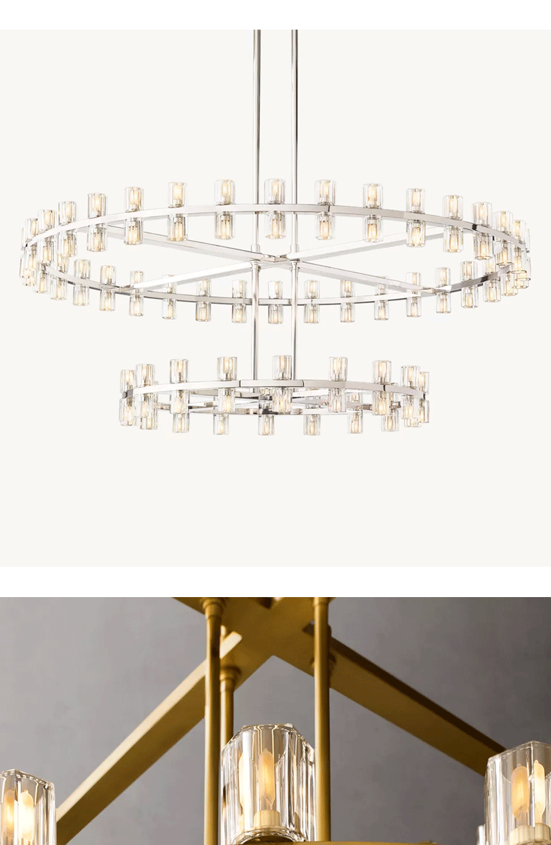 美式轻奢客厅卧室双层晶体玻璃吊灯