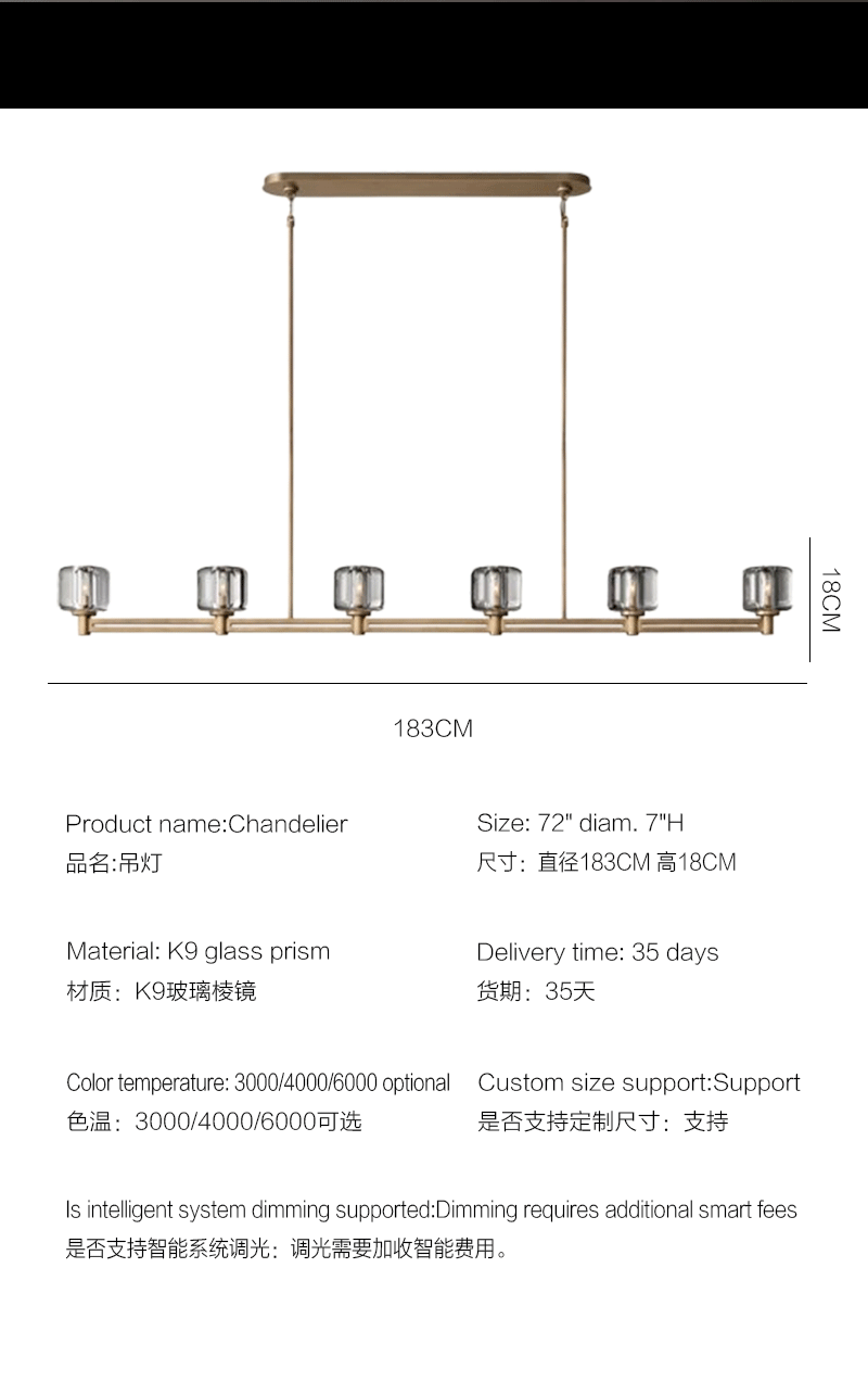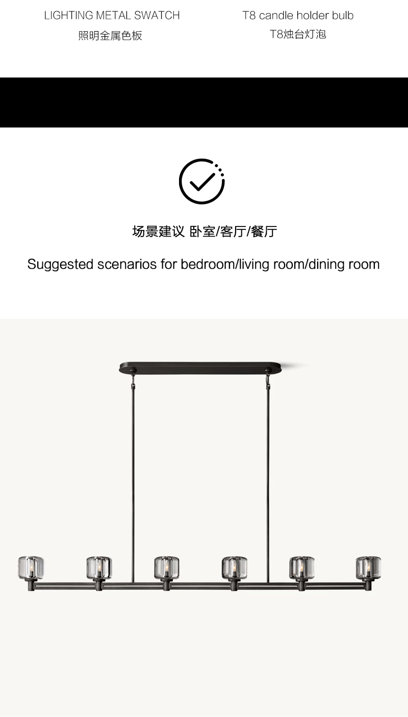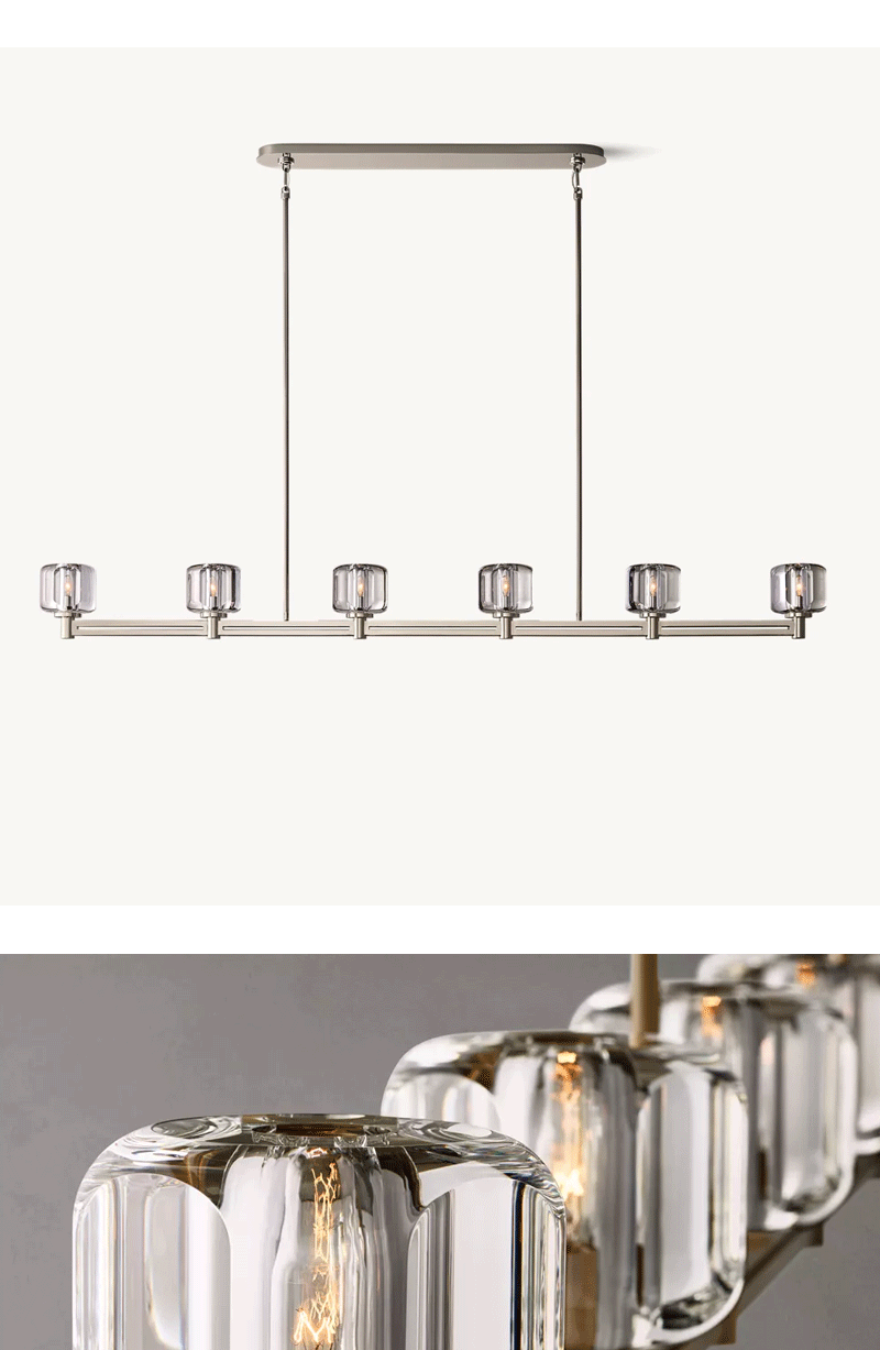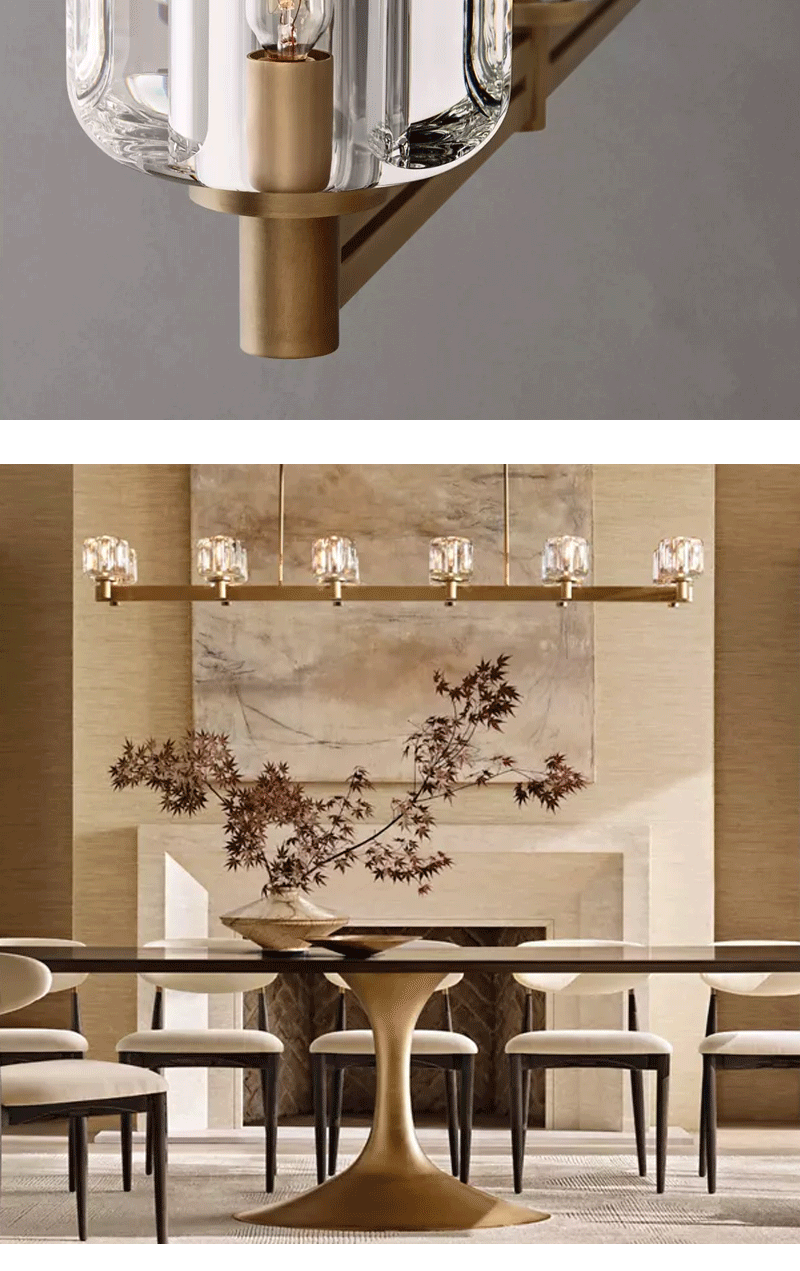 美式轻奢客厅餐厅矩形玻璃吊灯