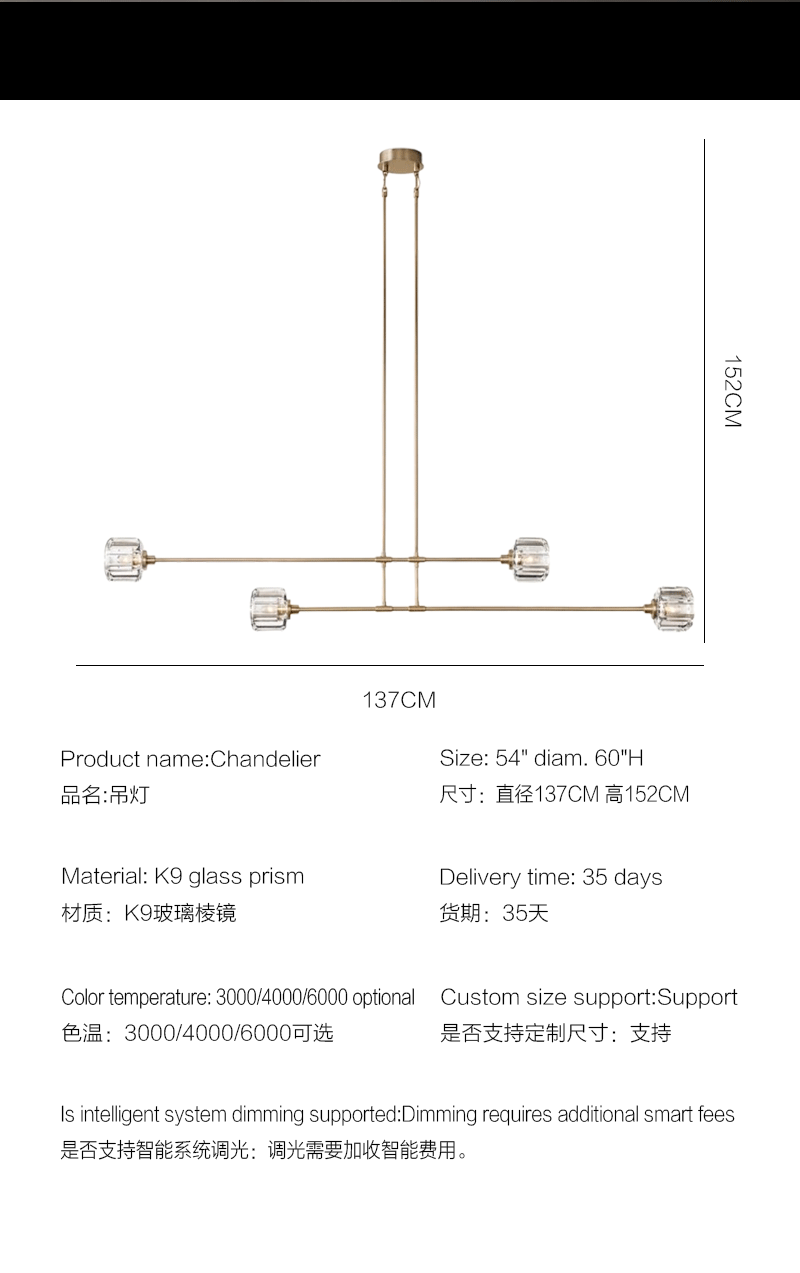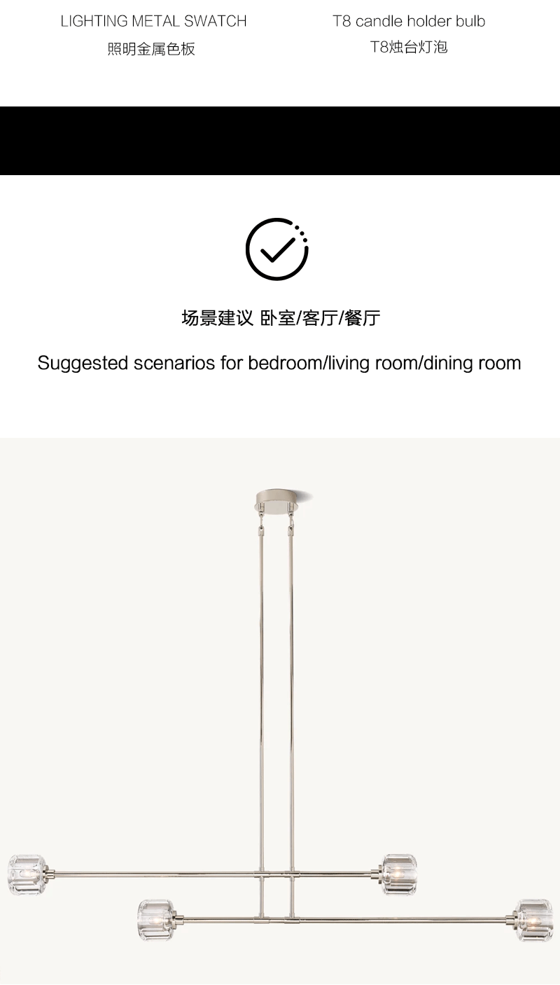 美式轻奢客厅餐厅移动枝形玻璃吊灯