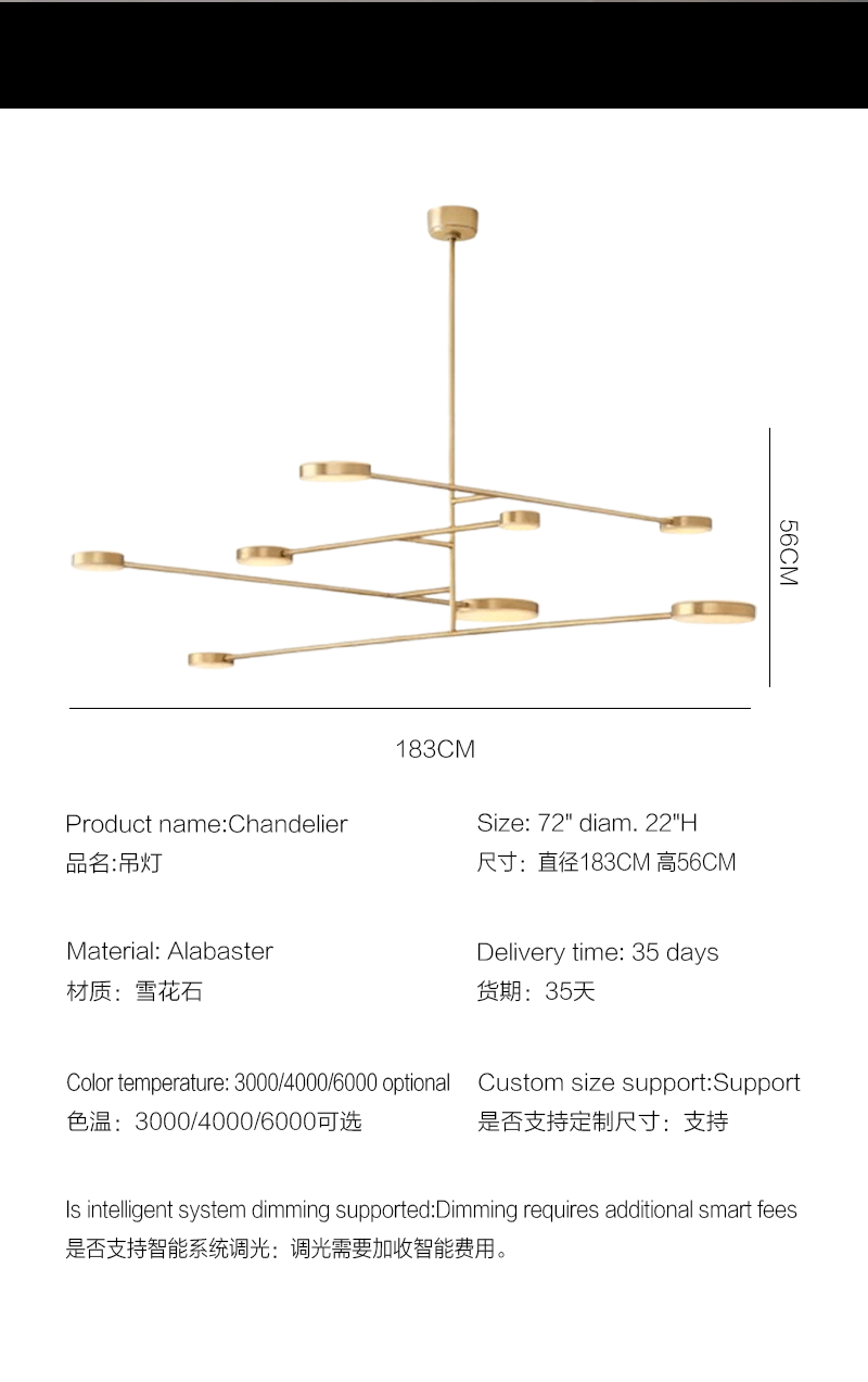 美式轻奢客厅餐厅枝形移动云石吊灯