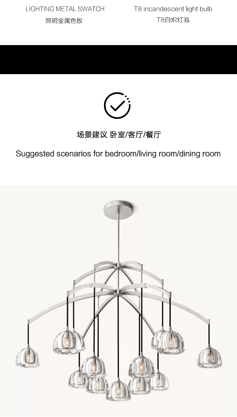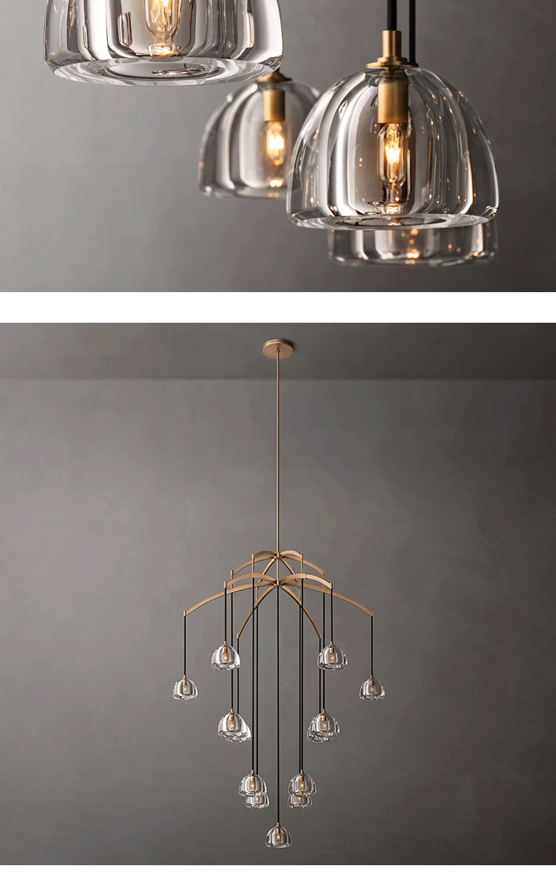 美式轻奢客厅餐厅半球玻璃圆形吊灯