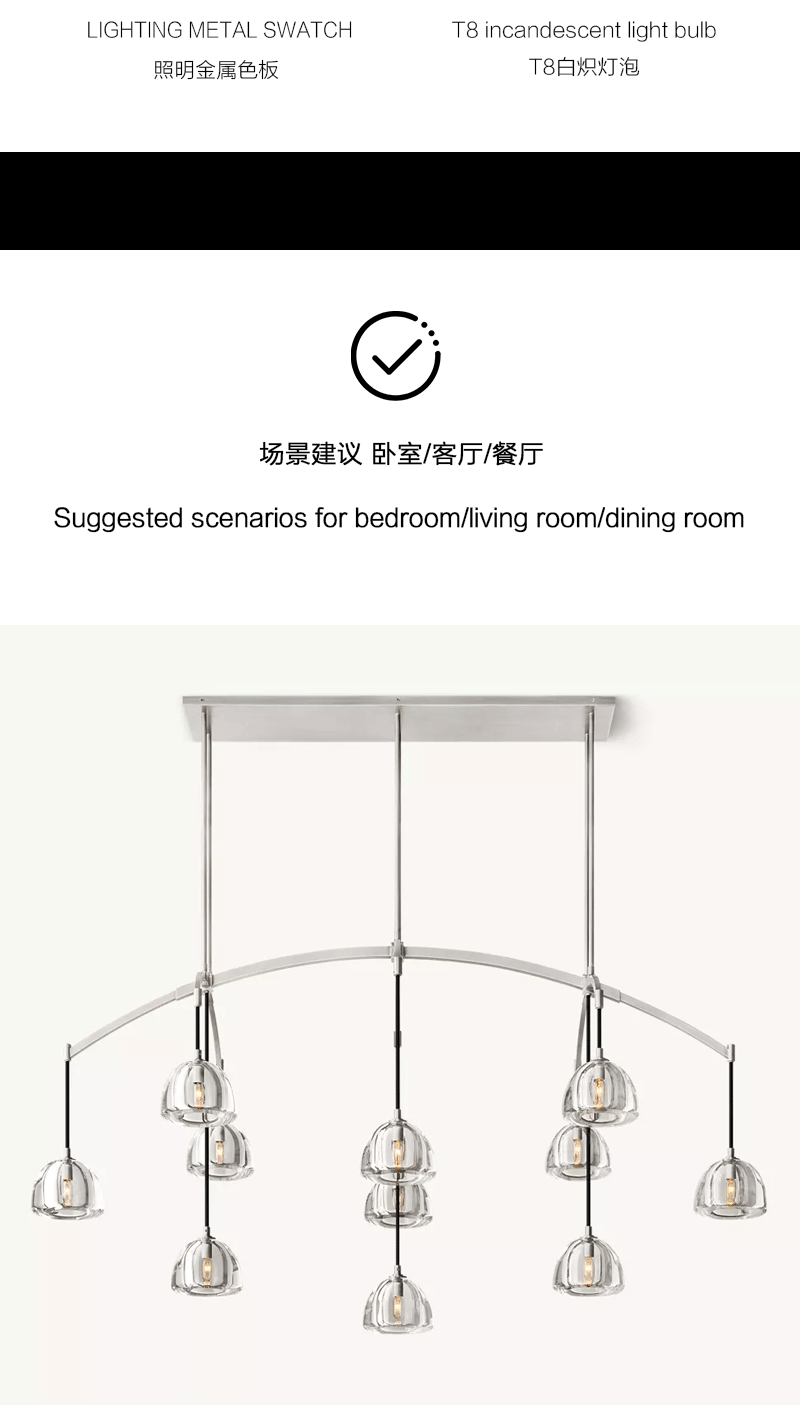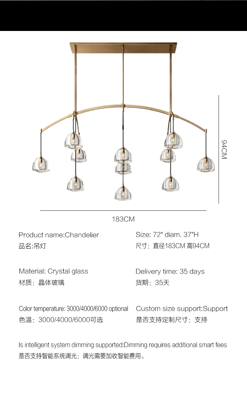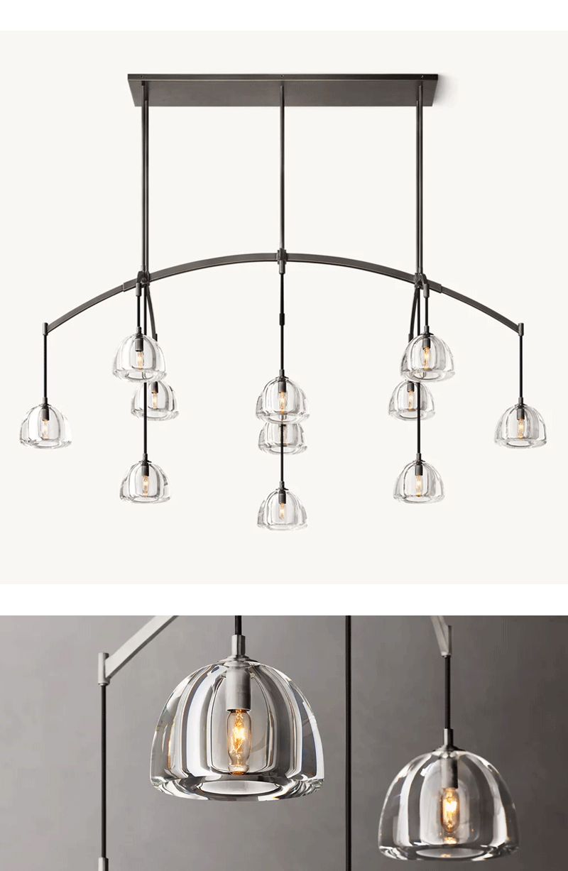 美式轻奢客厅餐厅半球线性玻璃大吊灯