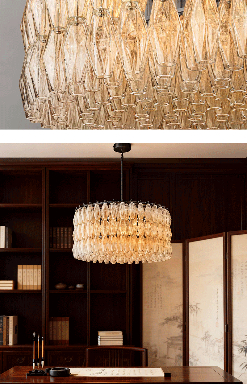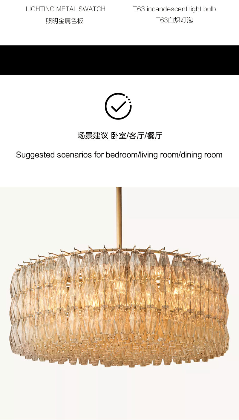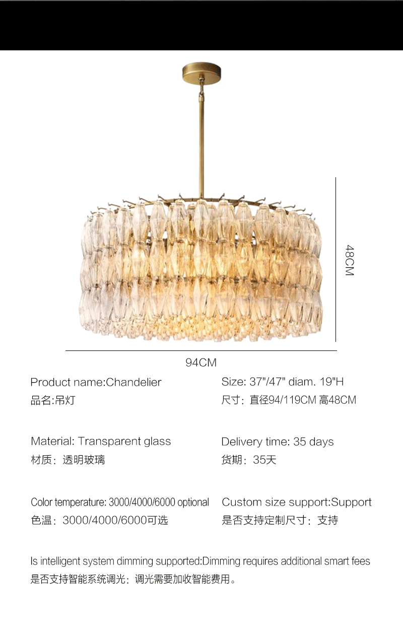 美式轻奢客厅餐厅透明玻璃圆形吊灯