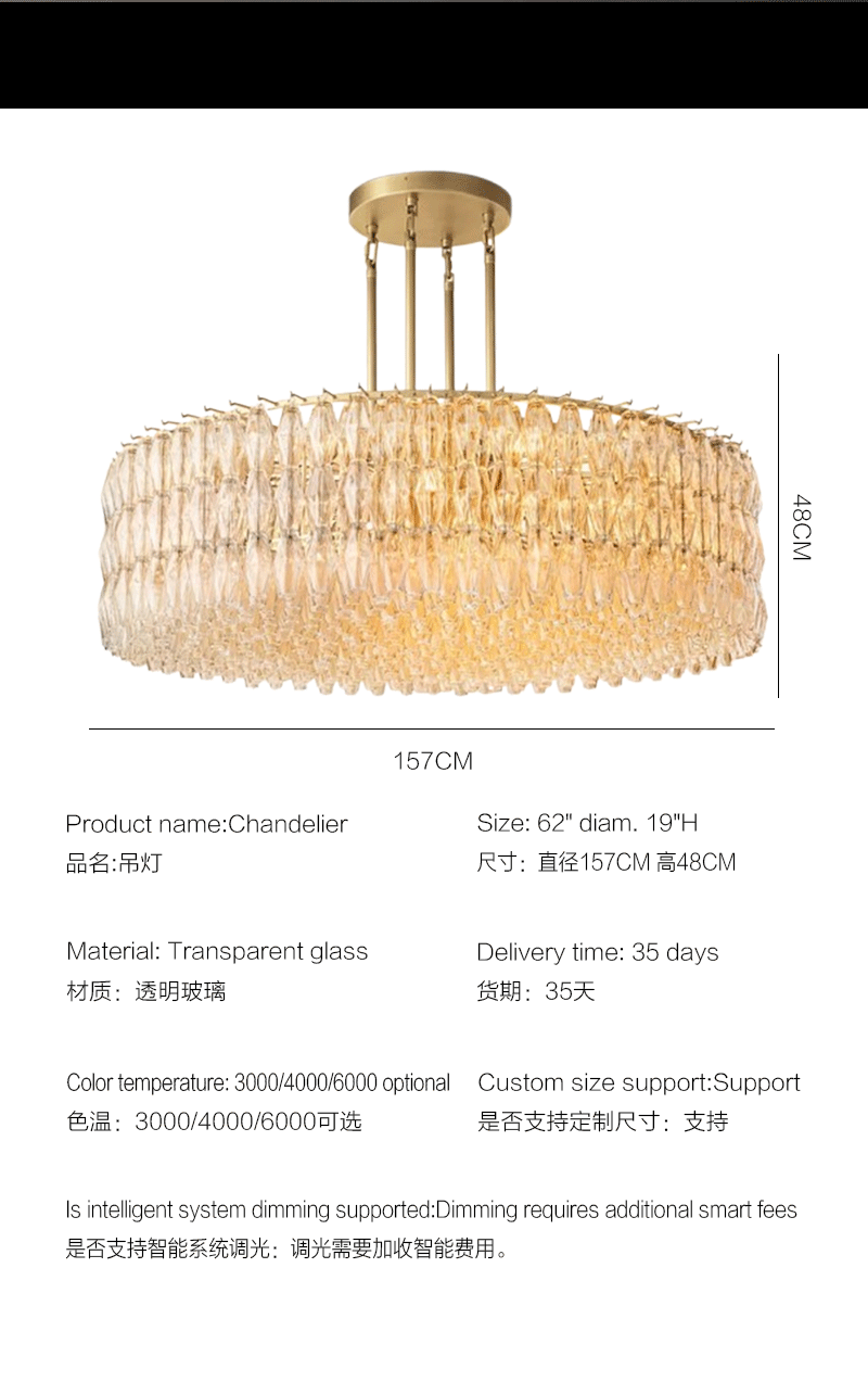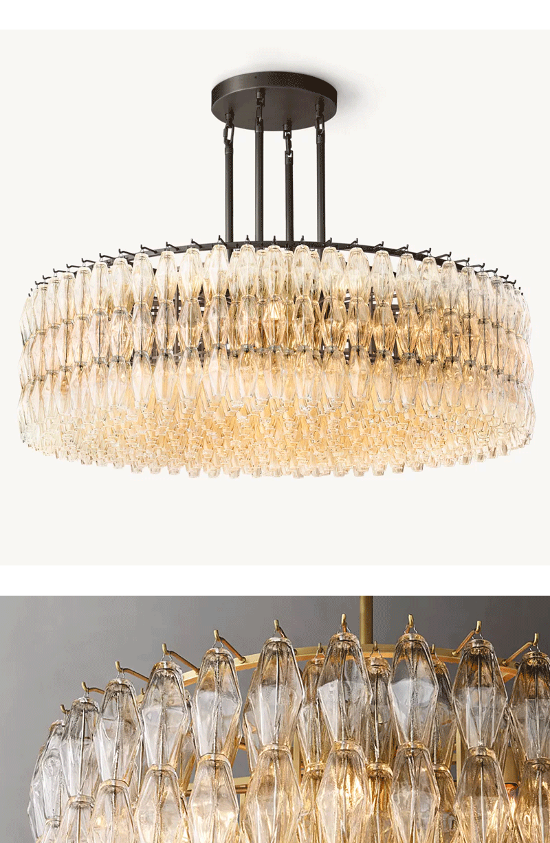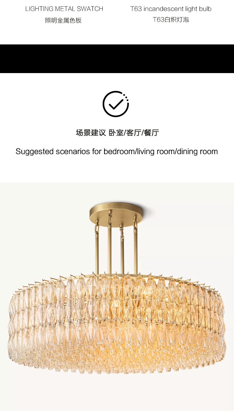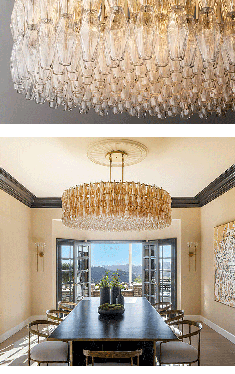 美式轻奢客厅餐厅透明圆形玻璃吊灯