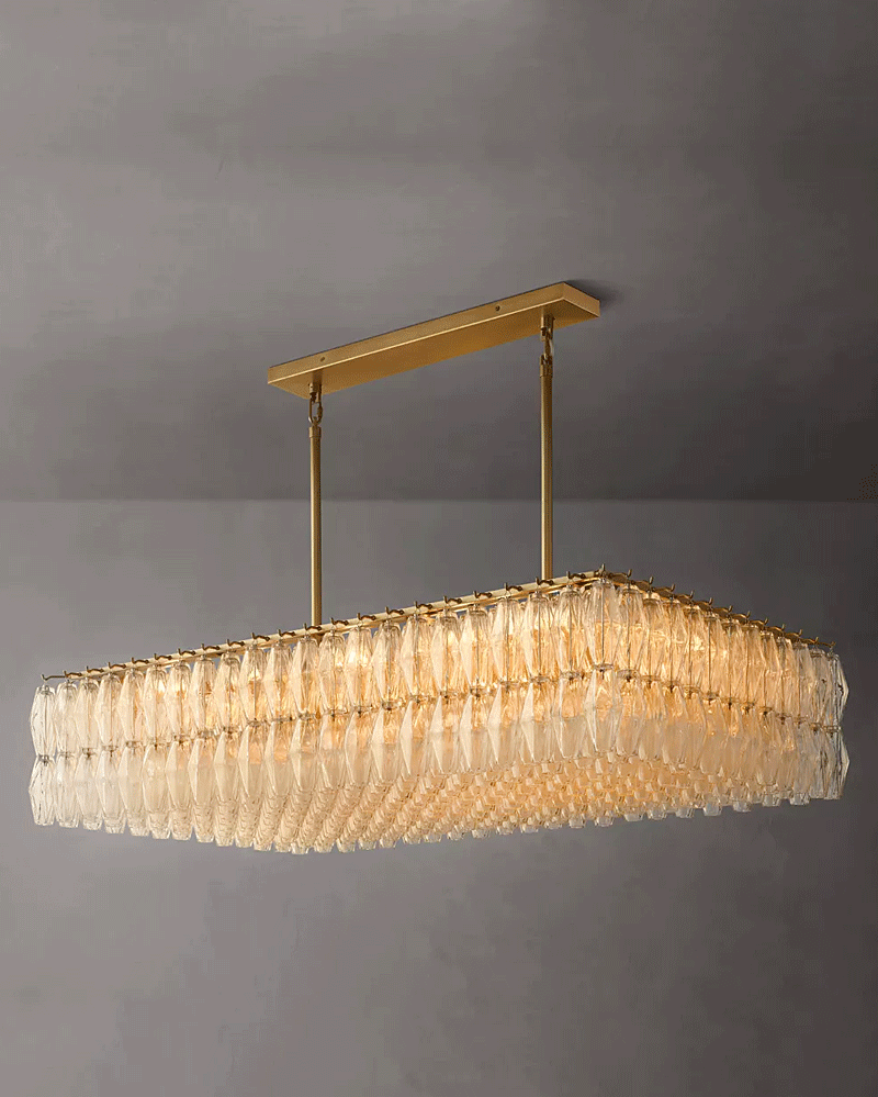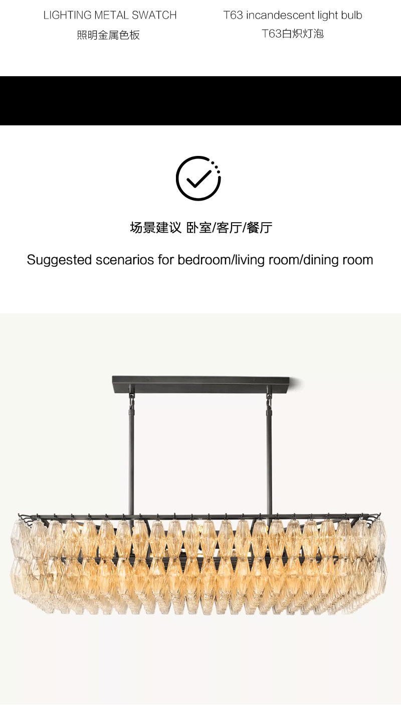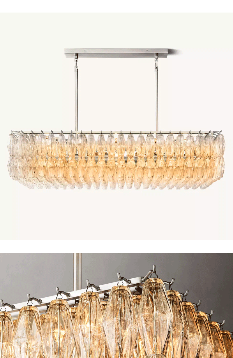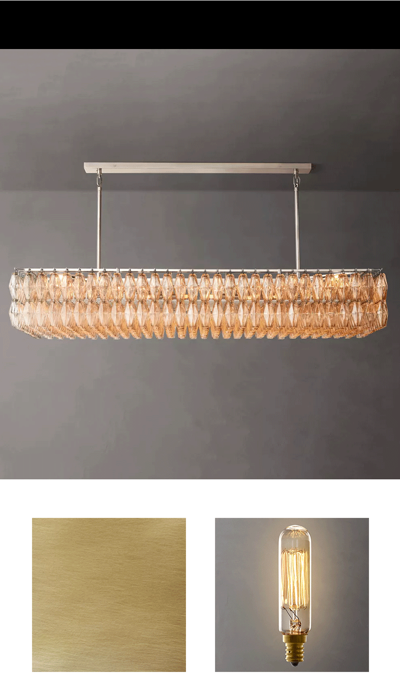 美式轻奢客厅餐厅透明矩形玻璃吊灯