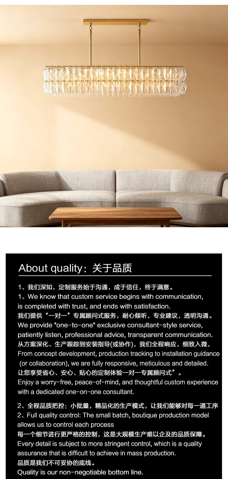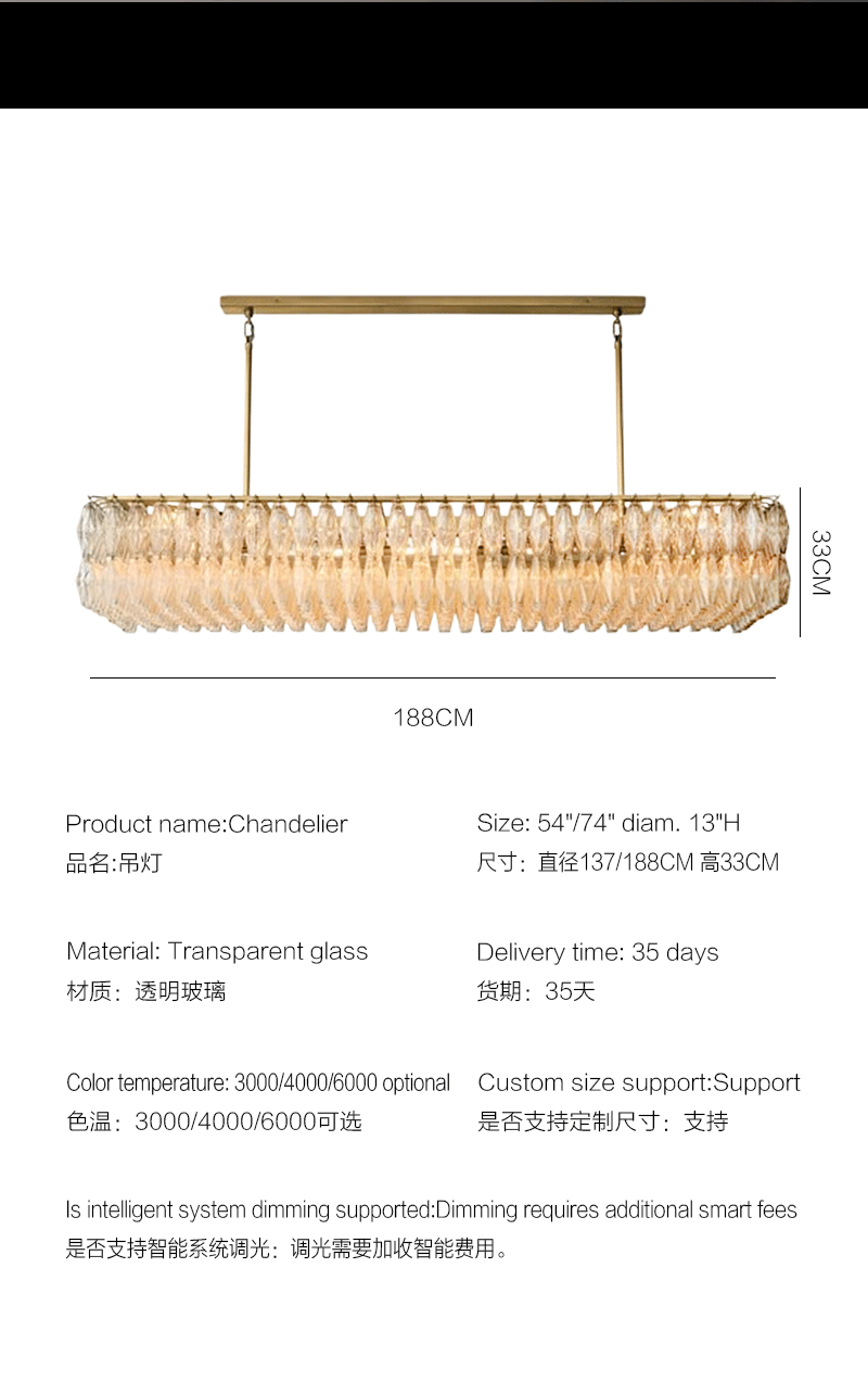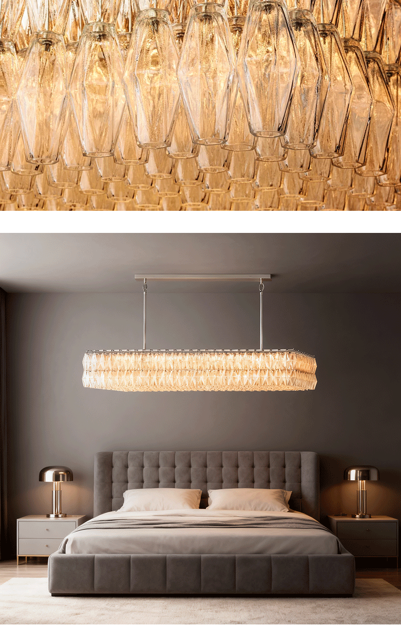 美式轻奢客厅餐厅透明矩形玻璃吊灯
