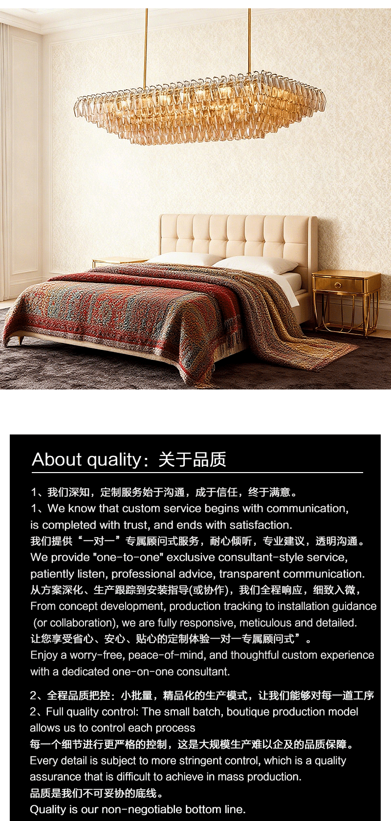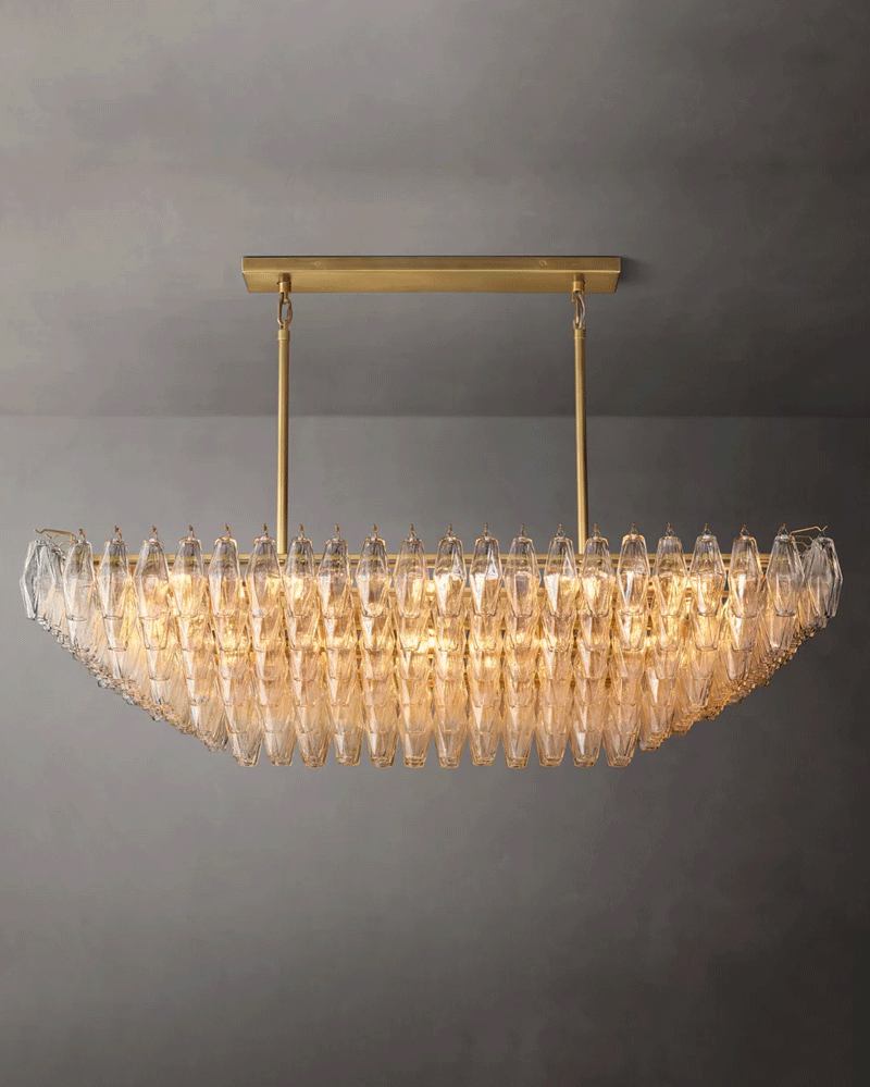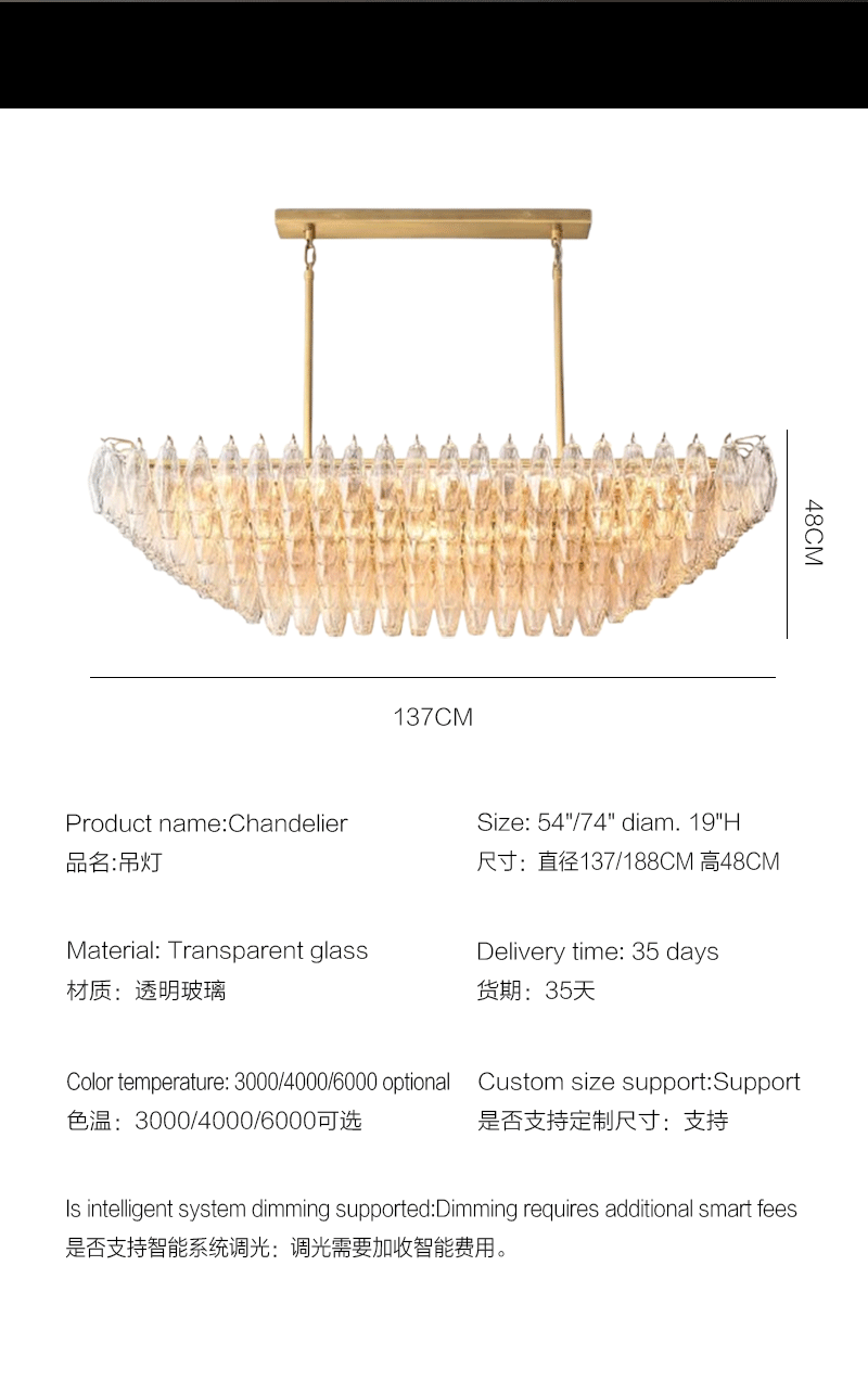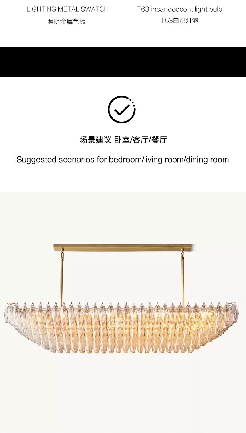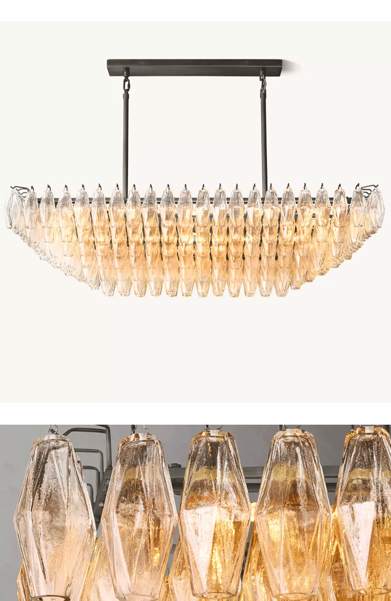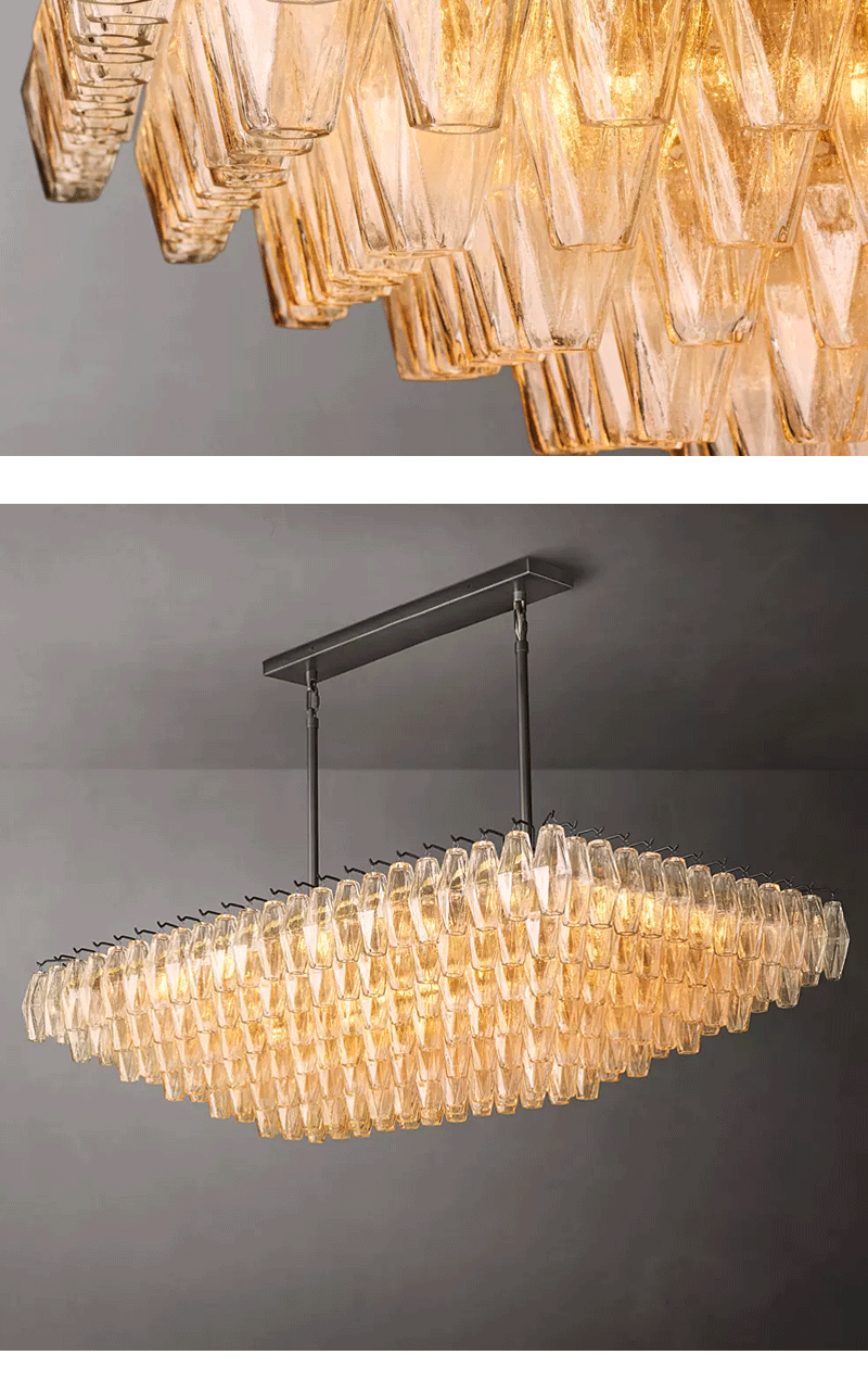 美式轻奢客厅餐厅透明分层矩形玻璃吊灯