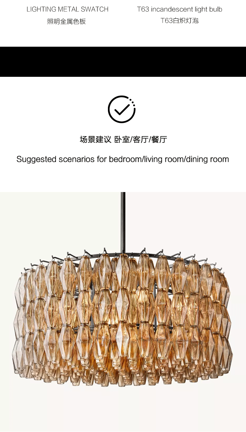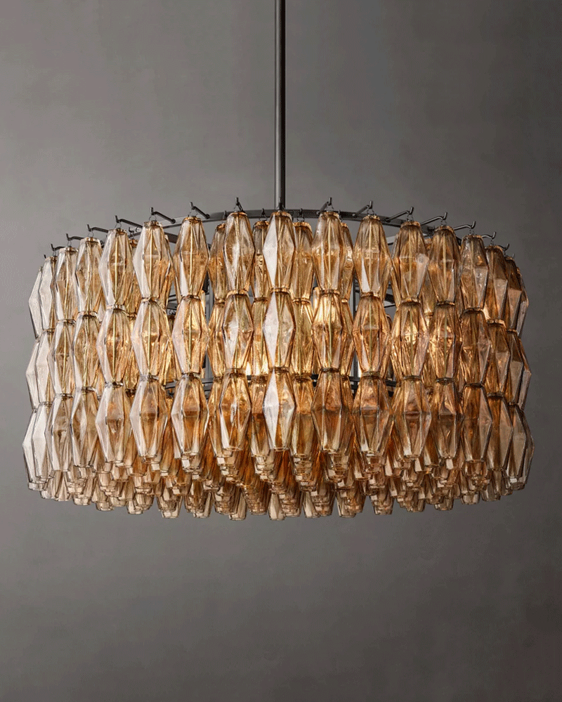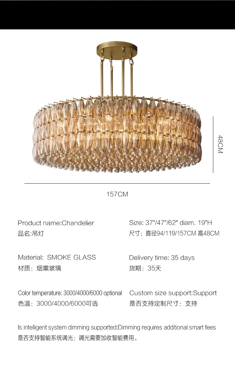 美式轻奢客厅餐厅烟熏圆形玻璃吊灯