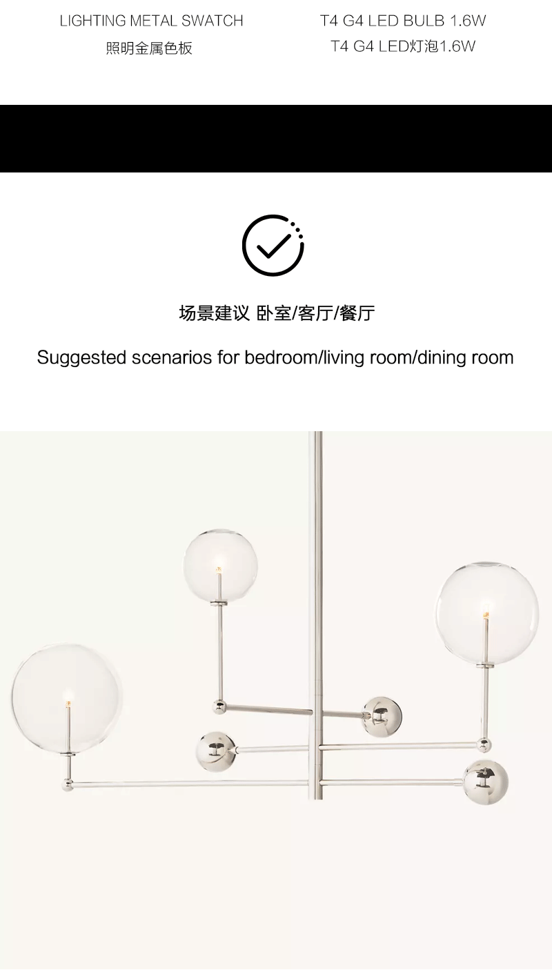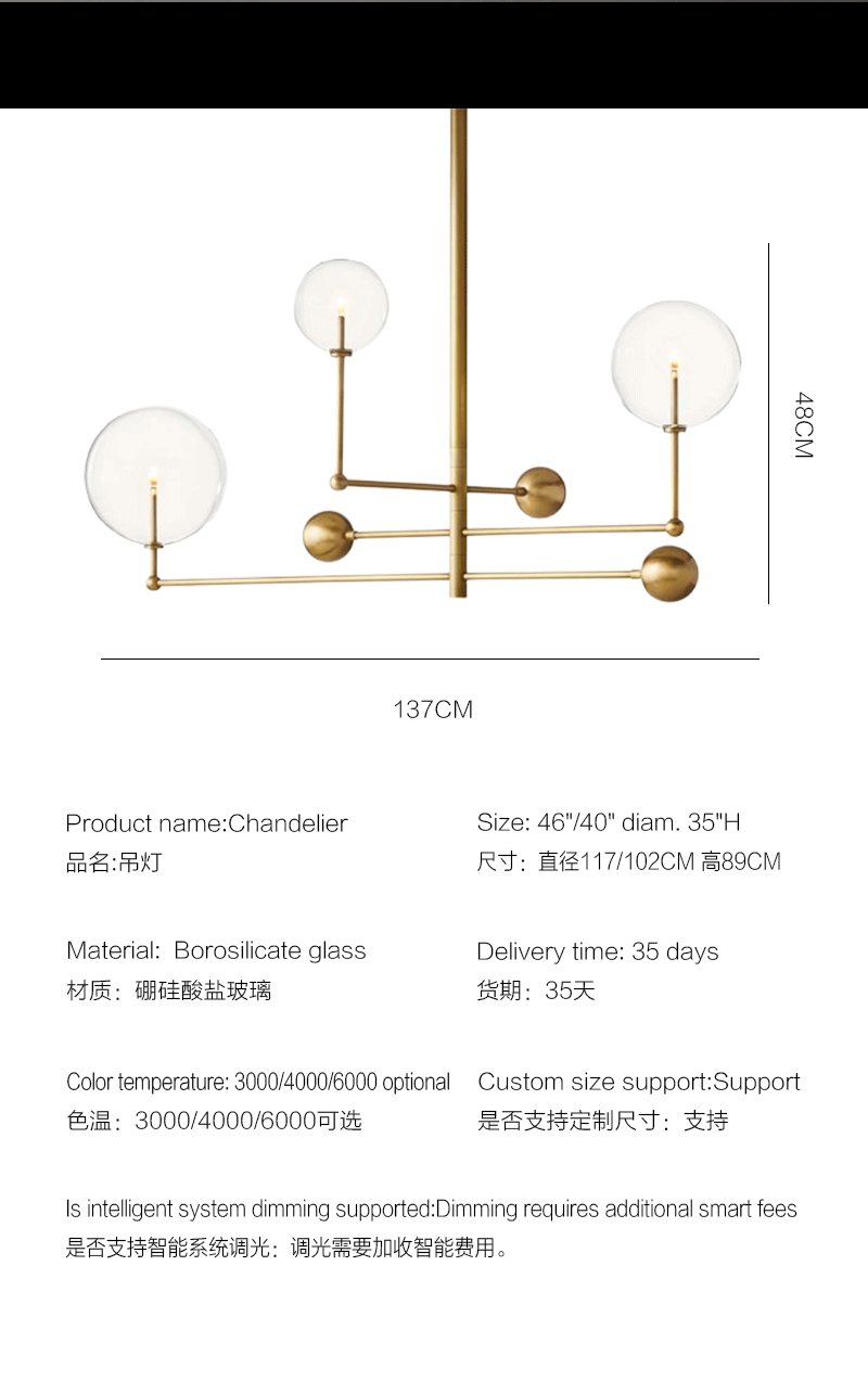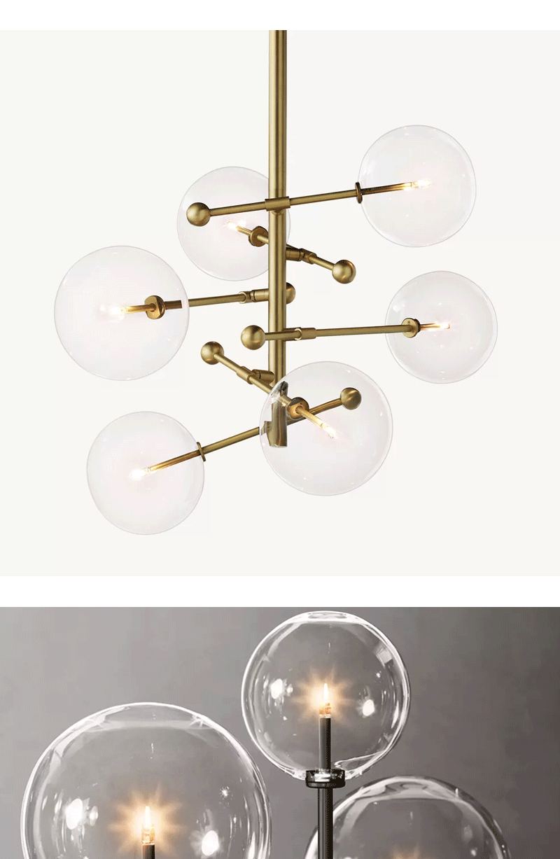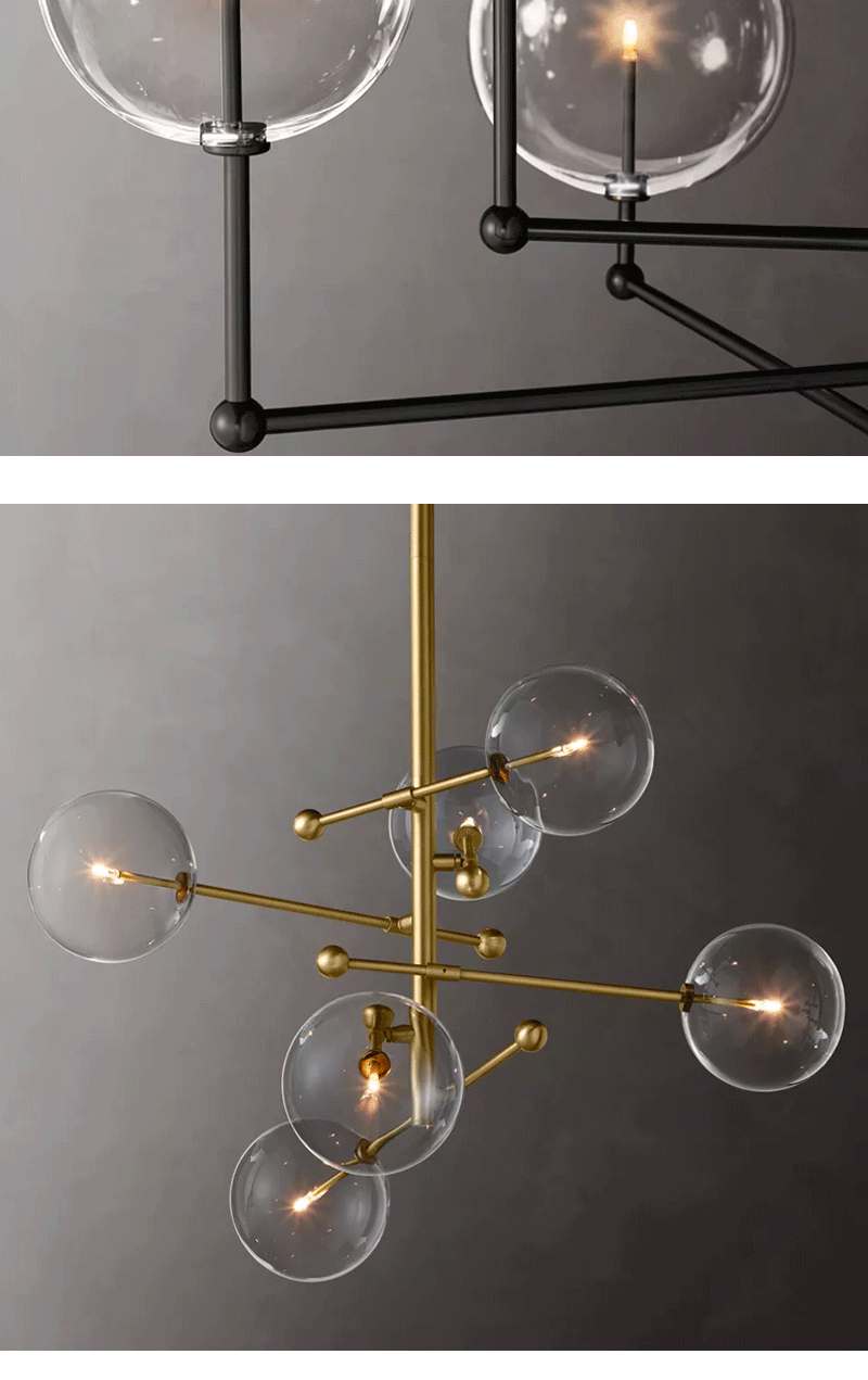 美式轻奢客厅餐厅移动三臂玻璃吊灯