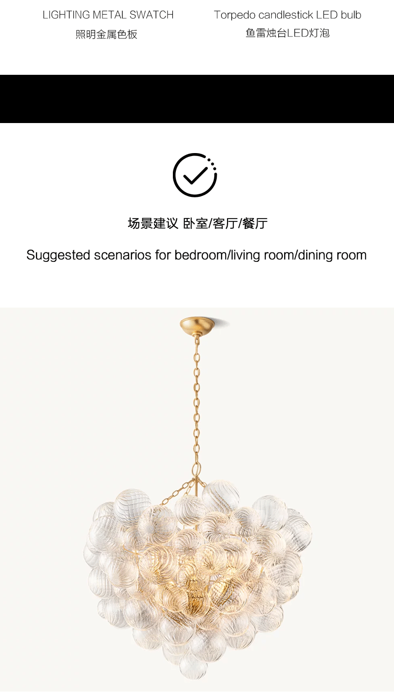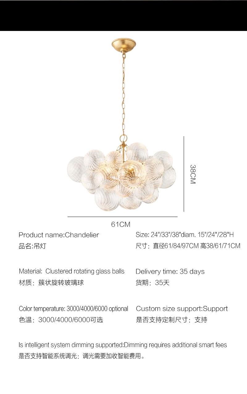 美式轻奢客厅卧室圆形枝形玻璃球吊灯