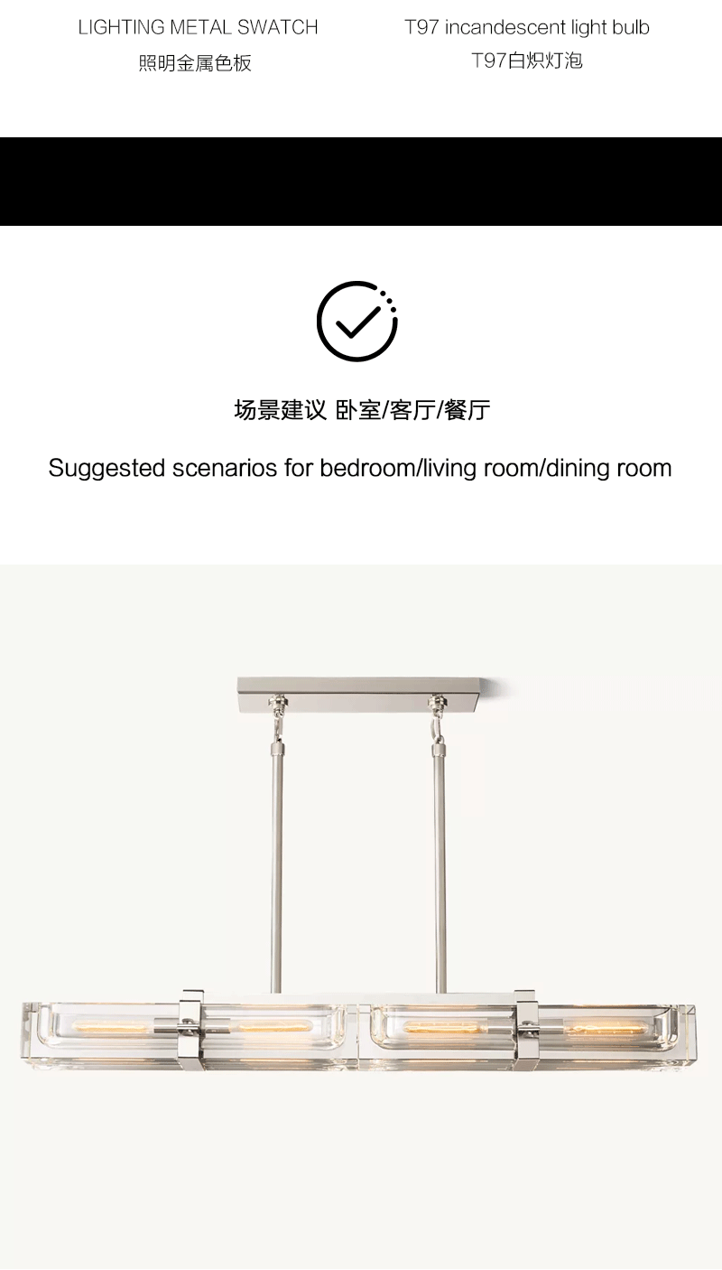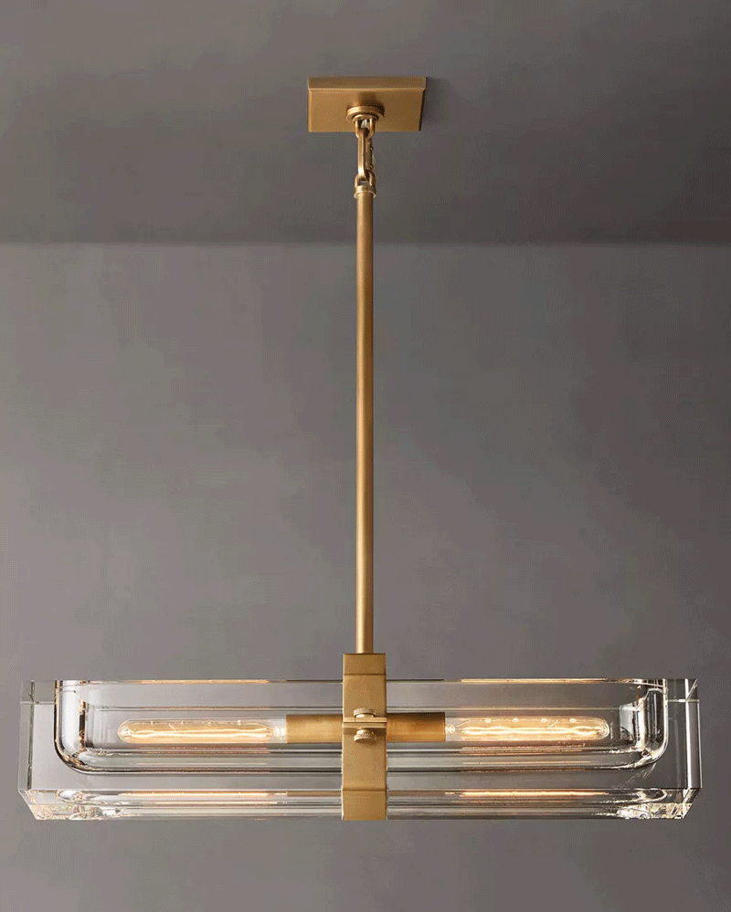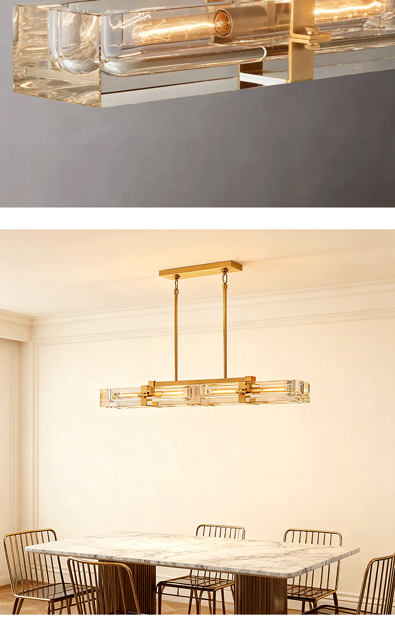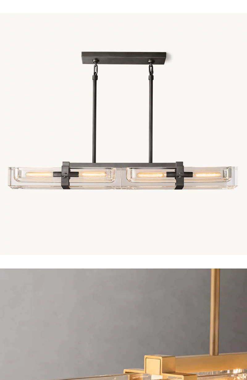 美式轻奢客厅餐厅线性透明玻璃吊灯