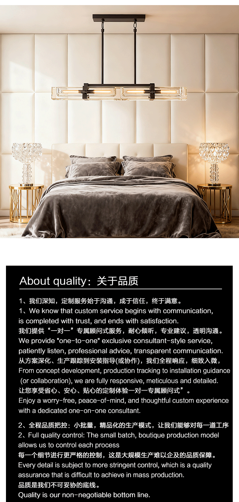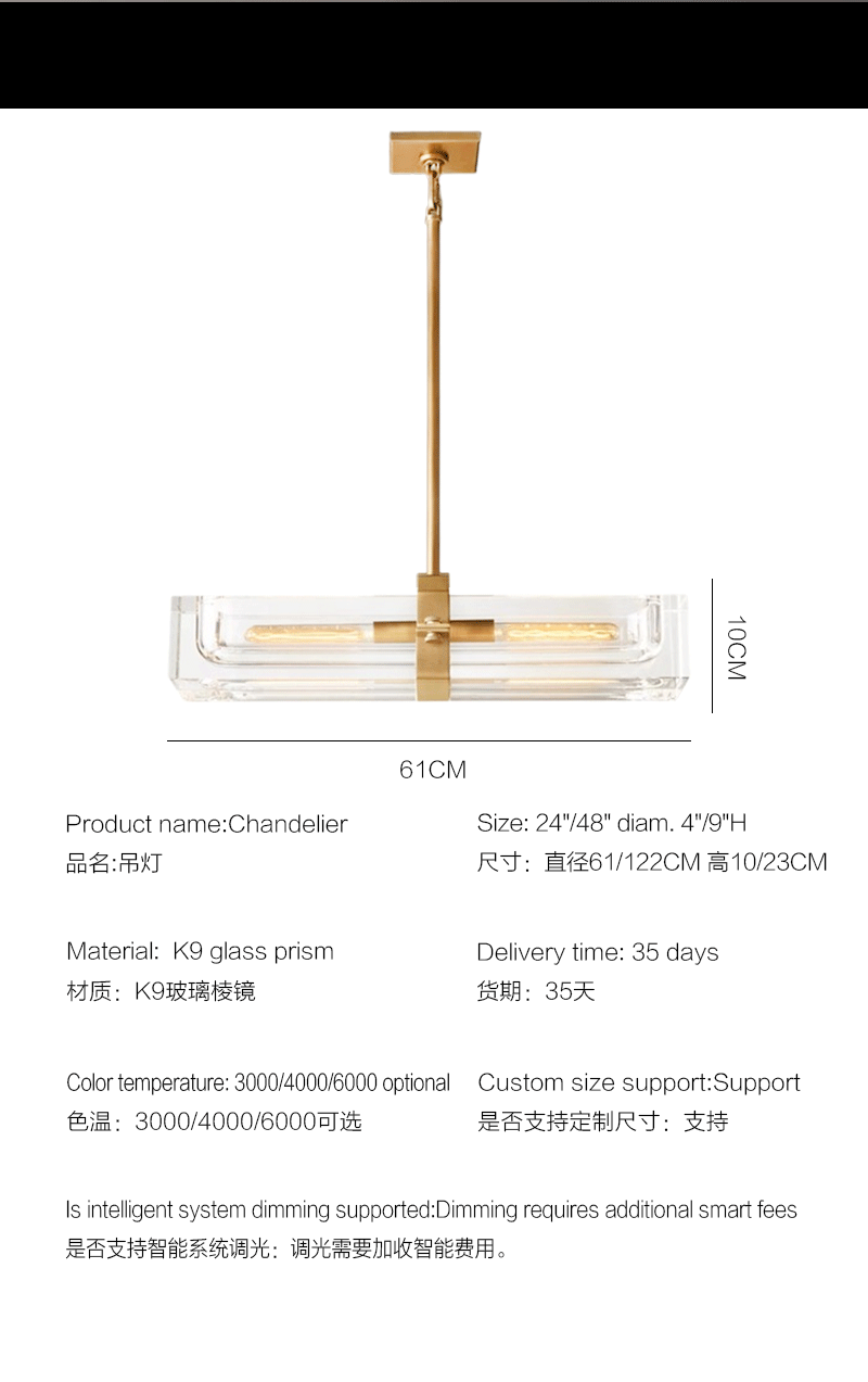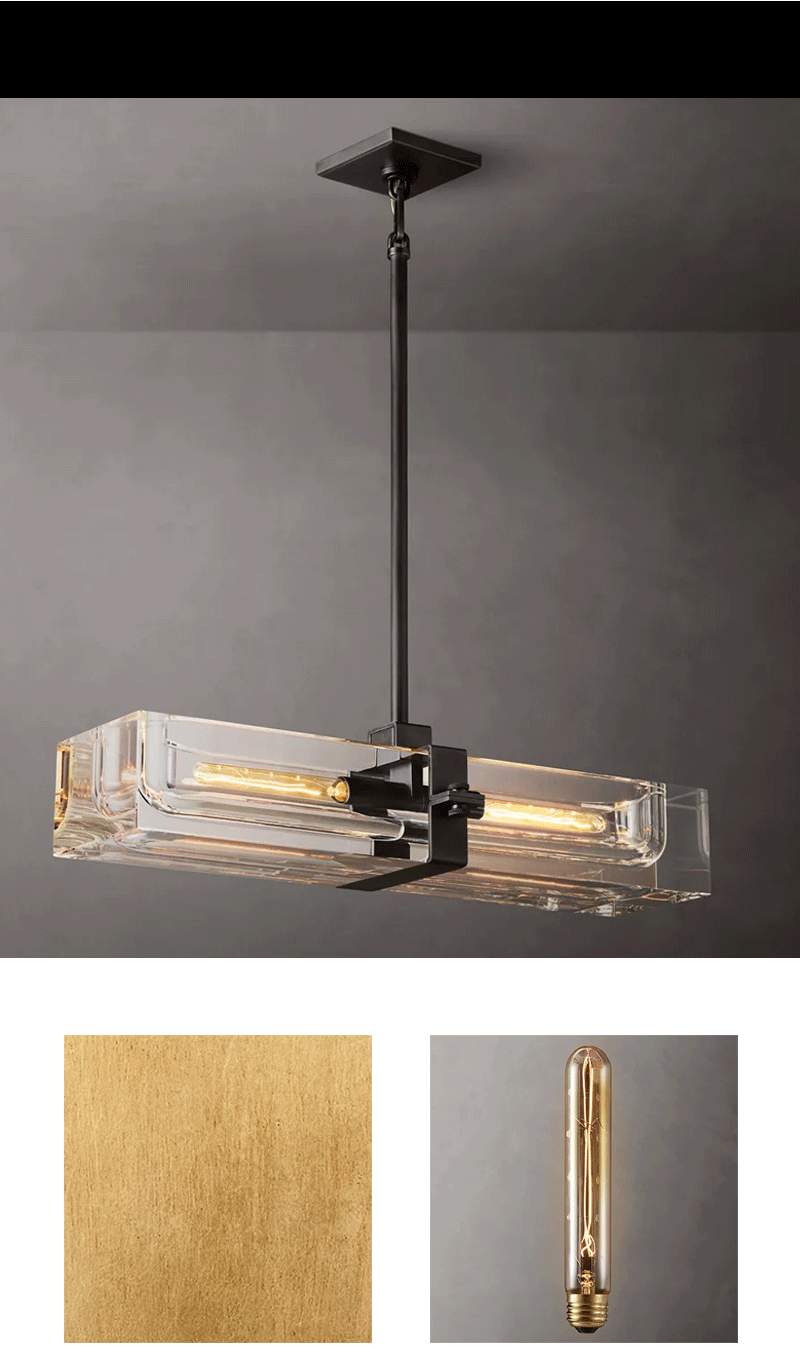 美式轻奢客厅餐厅线性透明玻璃吊灯