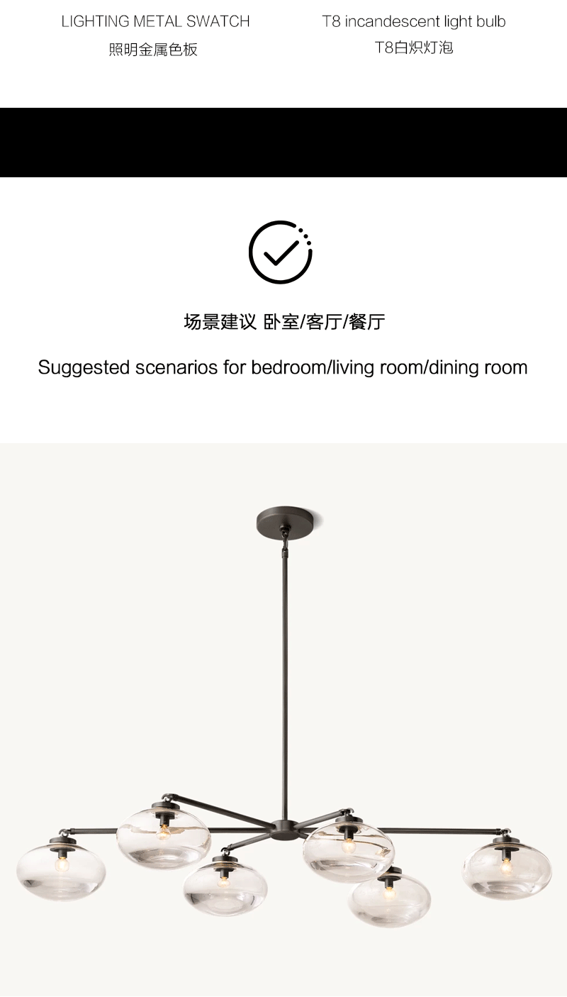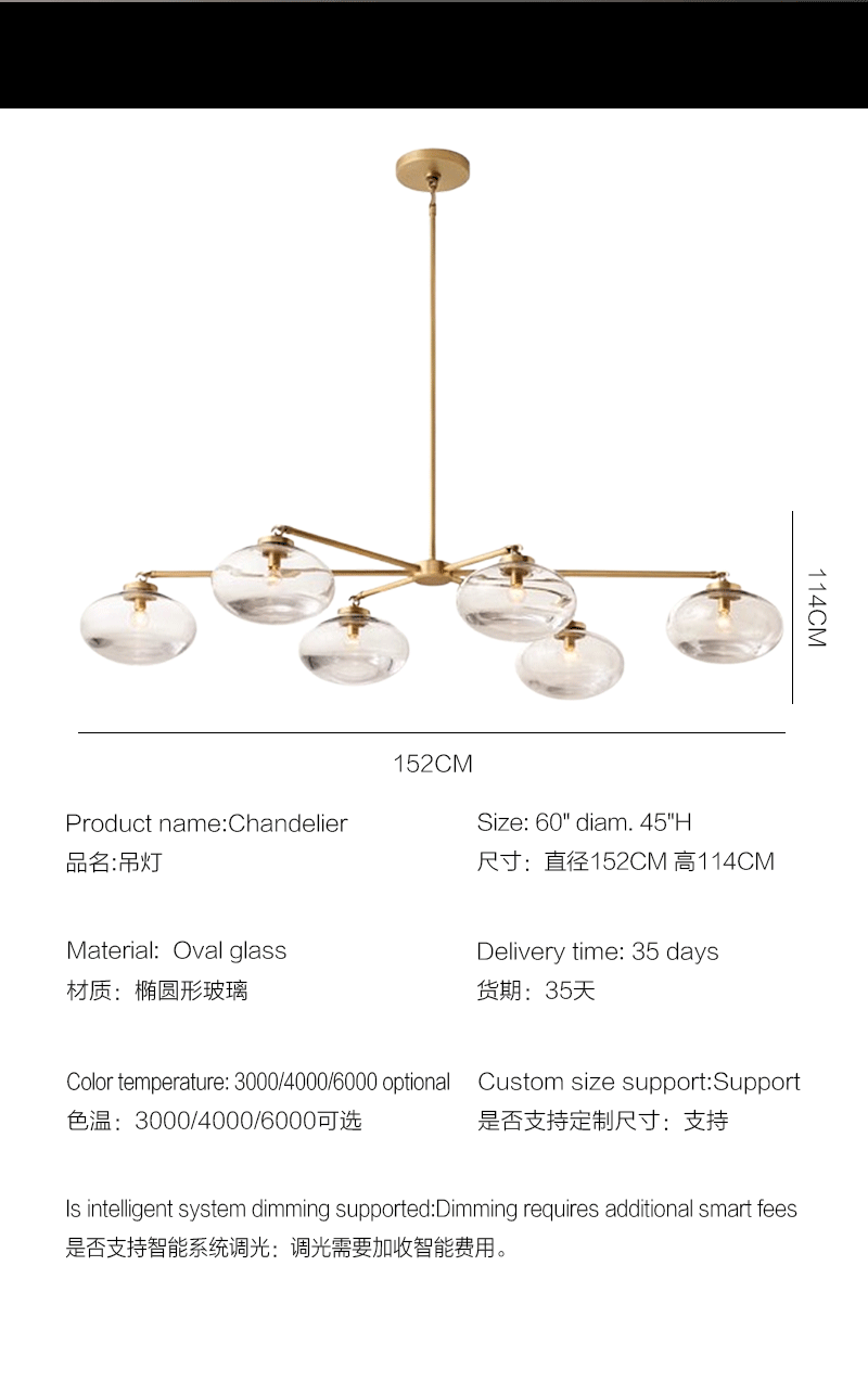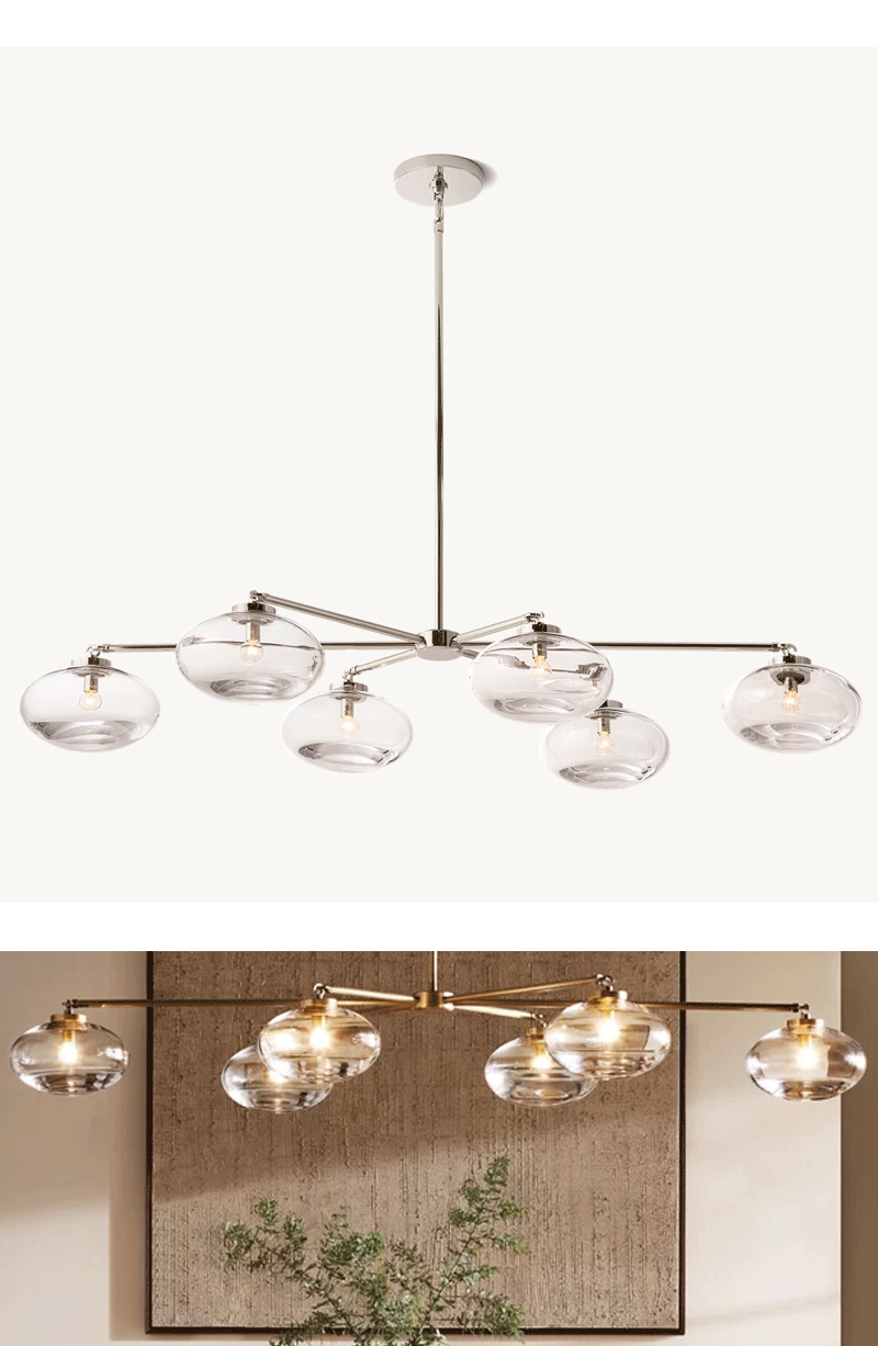 美式轻奢客厅餐厅透明玻璃移动吊灯