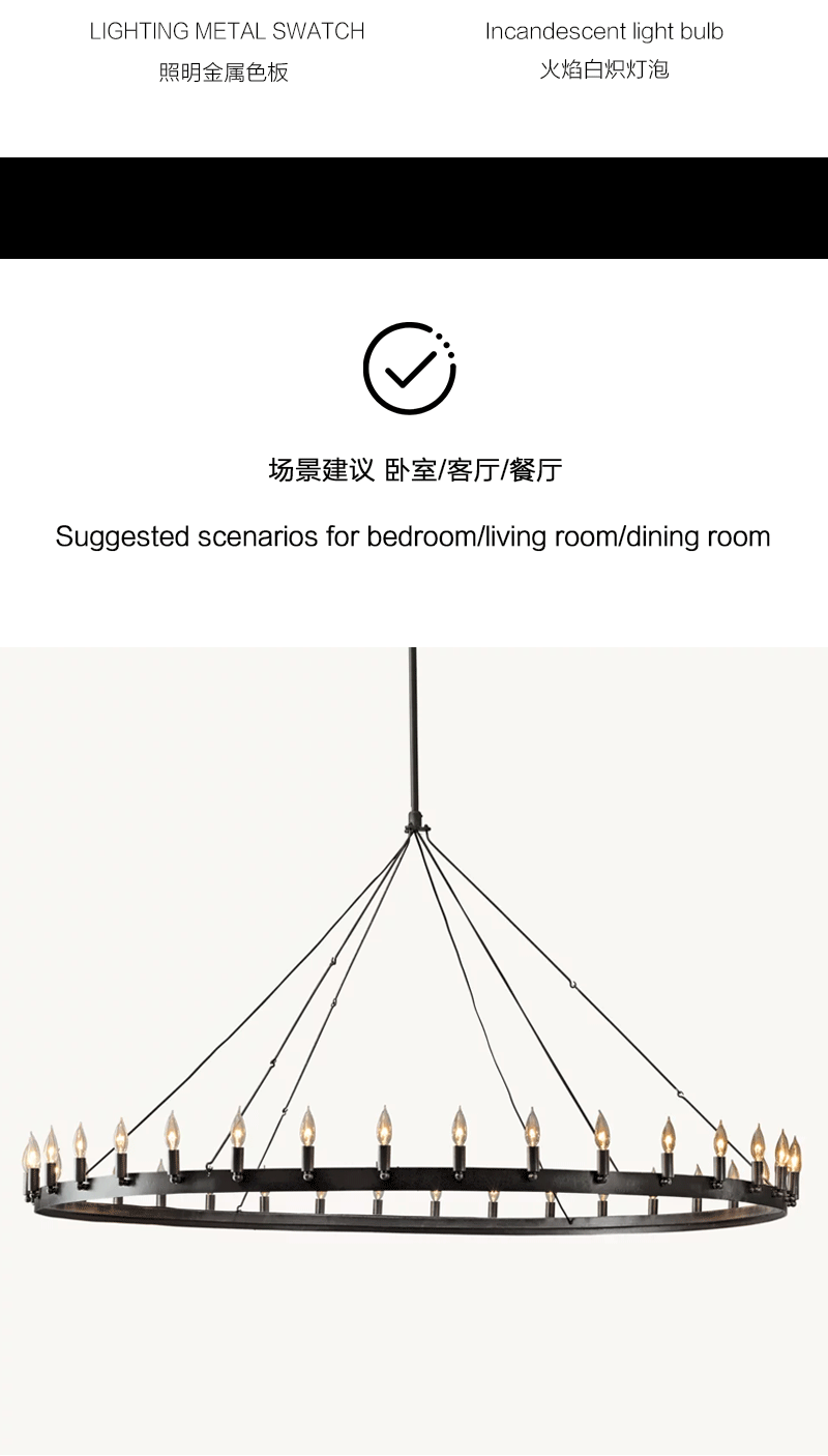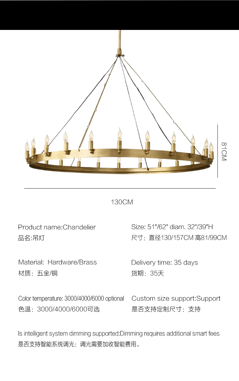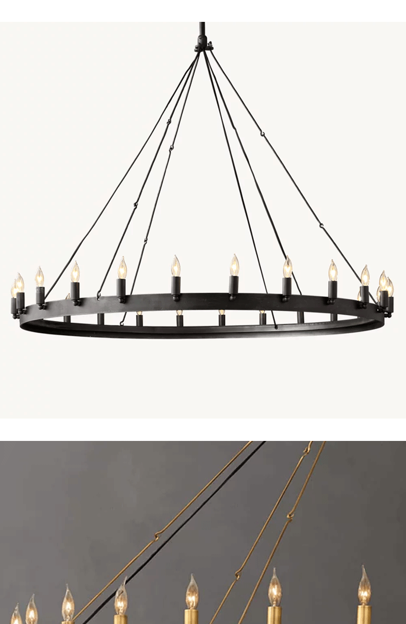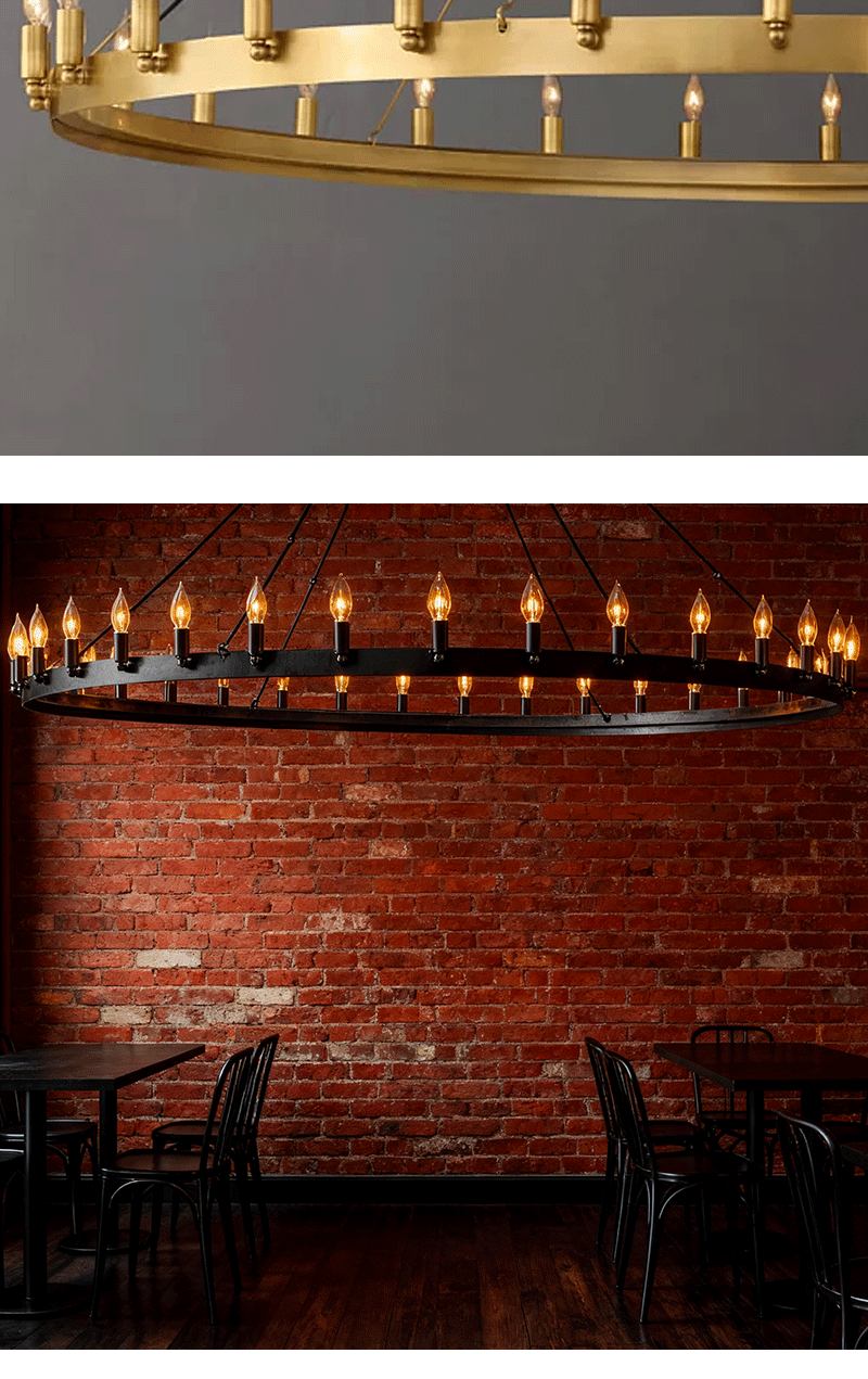 美式轻奢客厅卧室复古烛台圆形吊灯