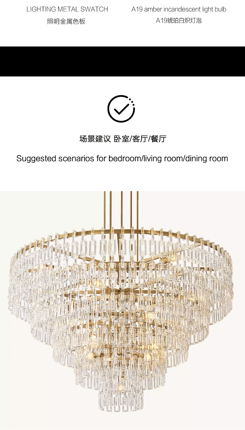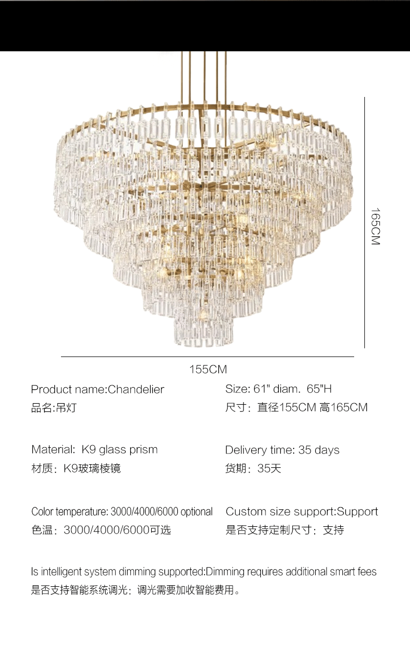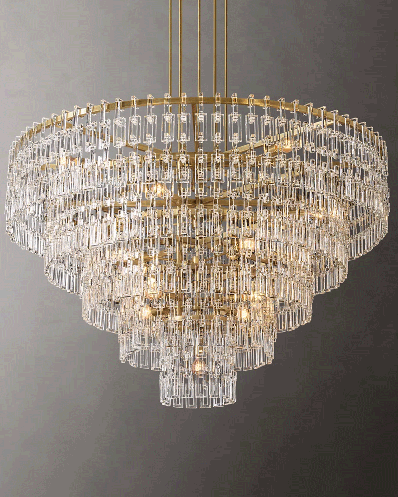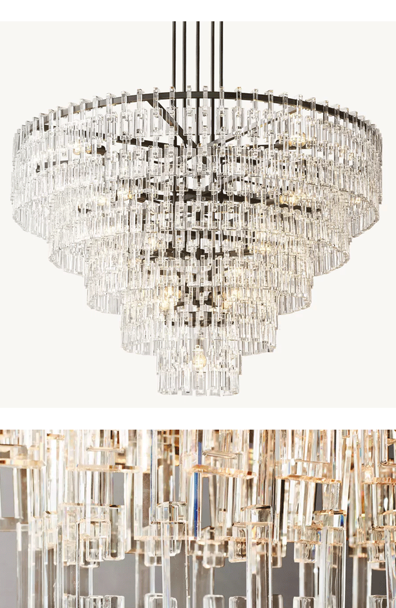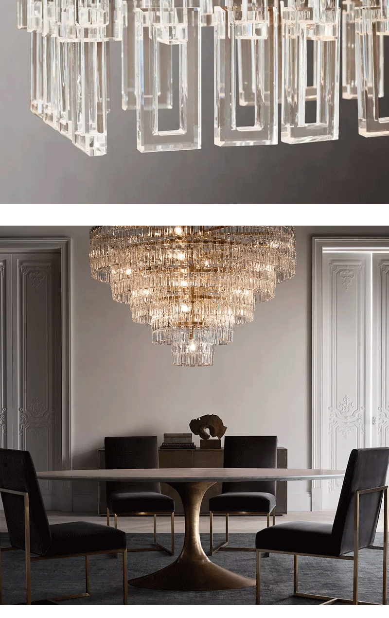 美式轻奢客厅楼梯分层玻璃棱镜吊灯
