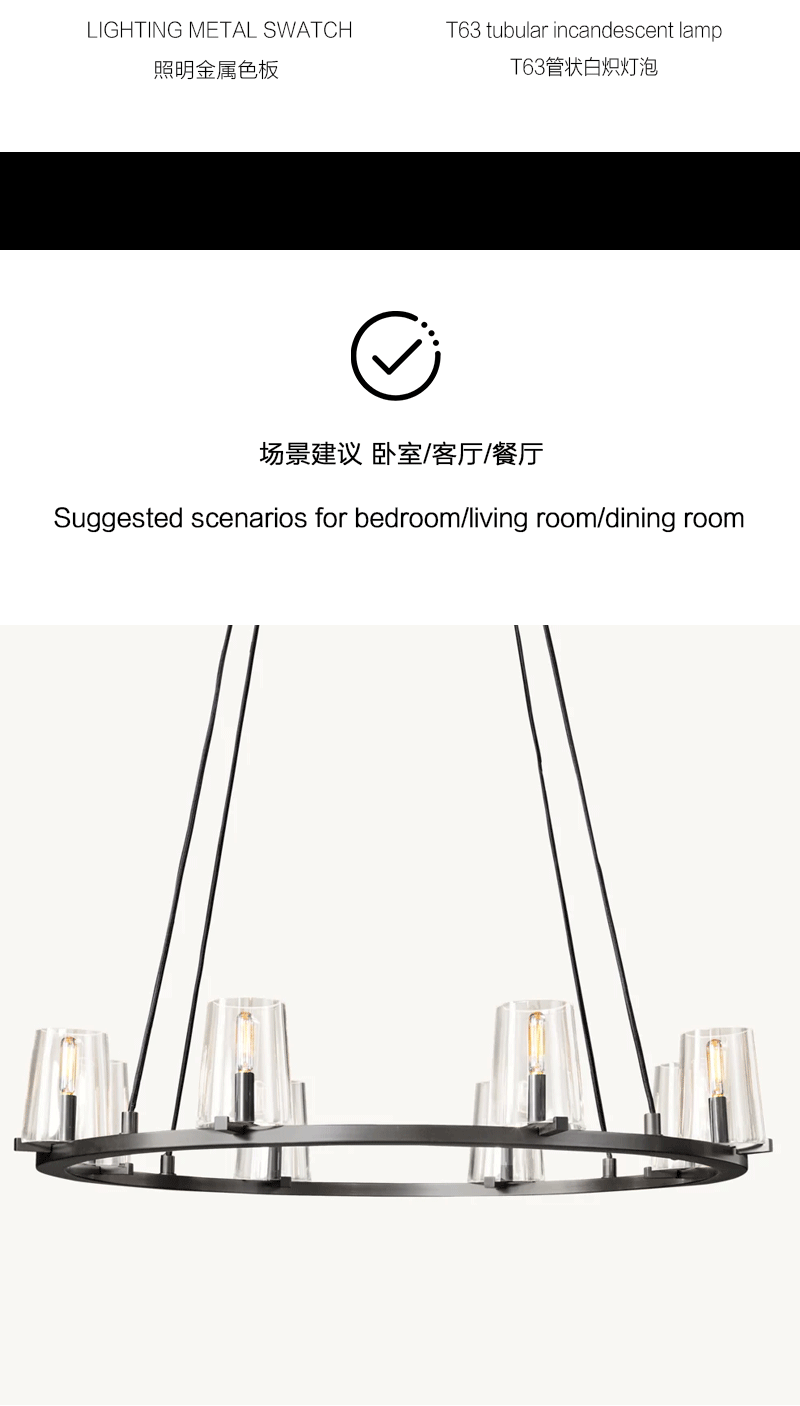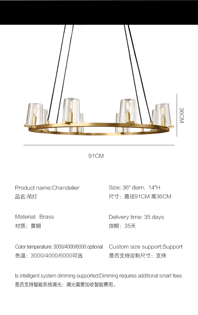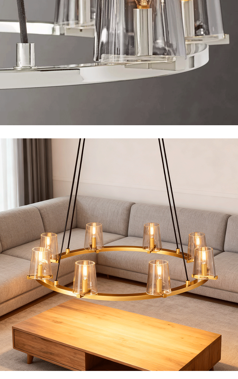 美式轻奢客厅餐厅圆形黄铜吊灯