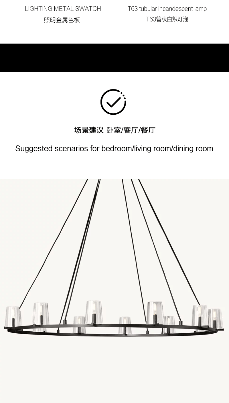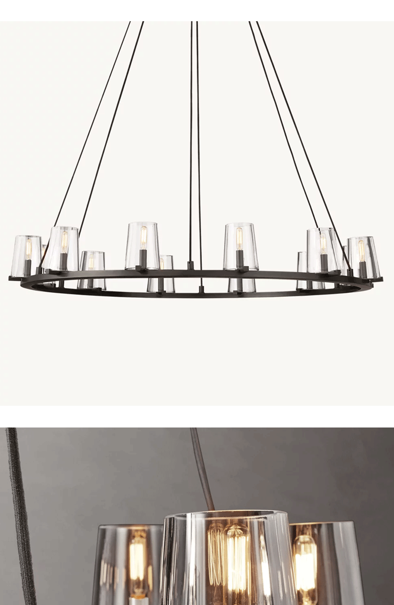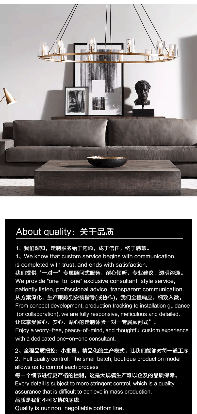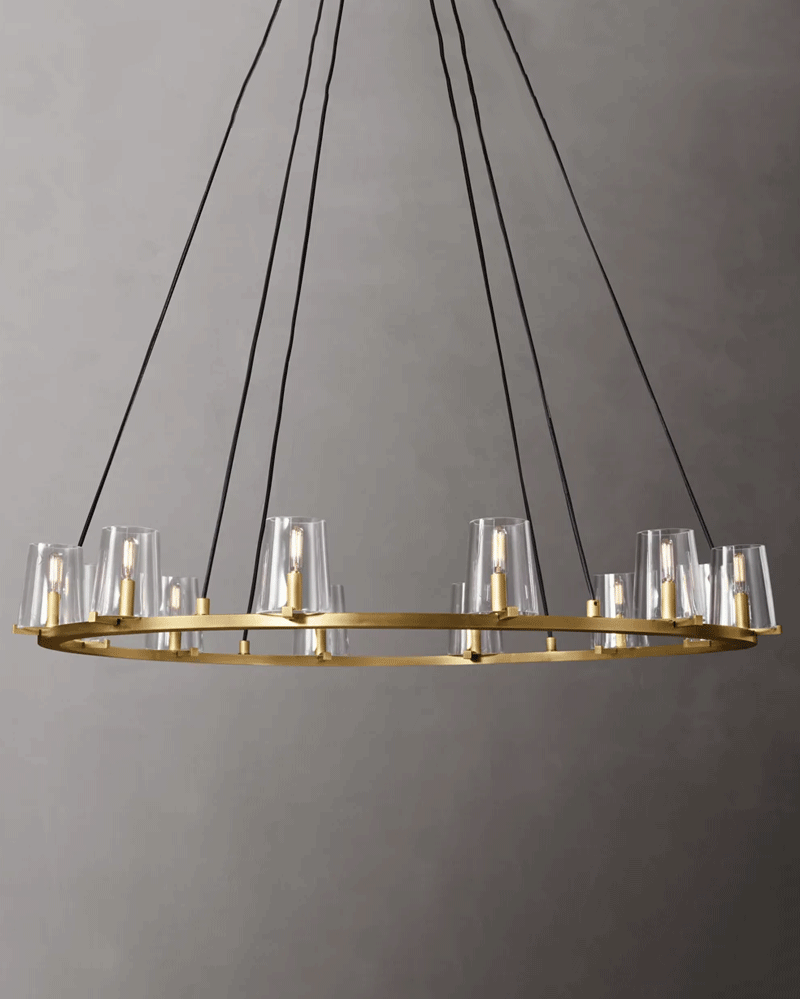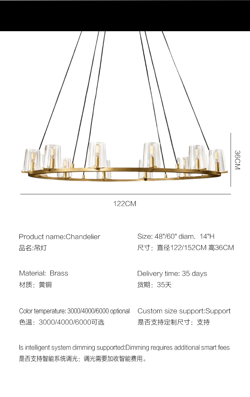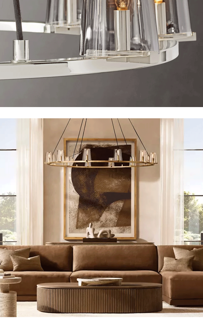 美式轻奢客厅餐厅黄铜圆形吊灯