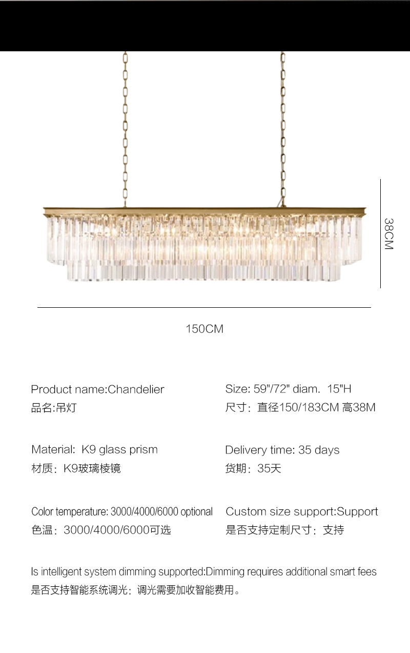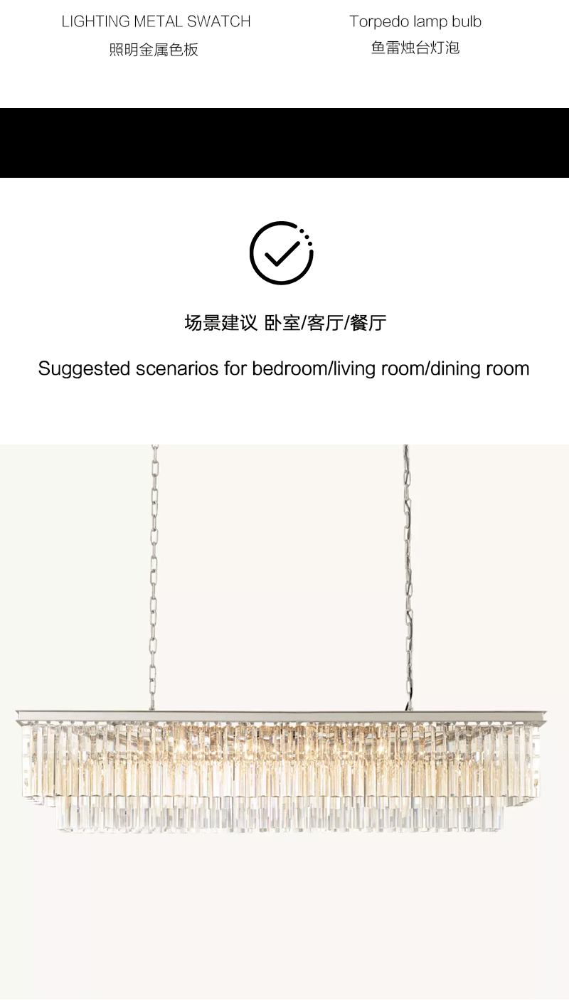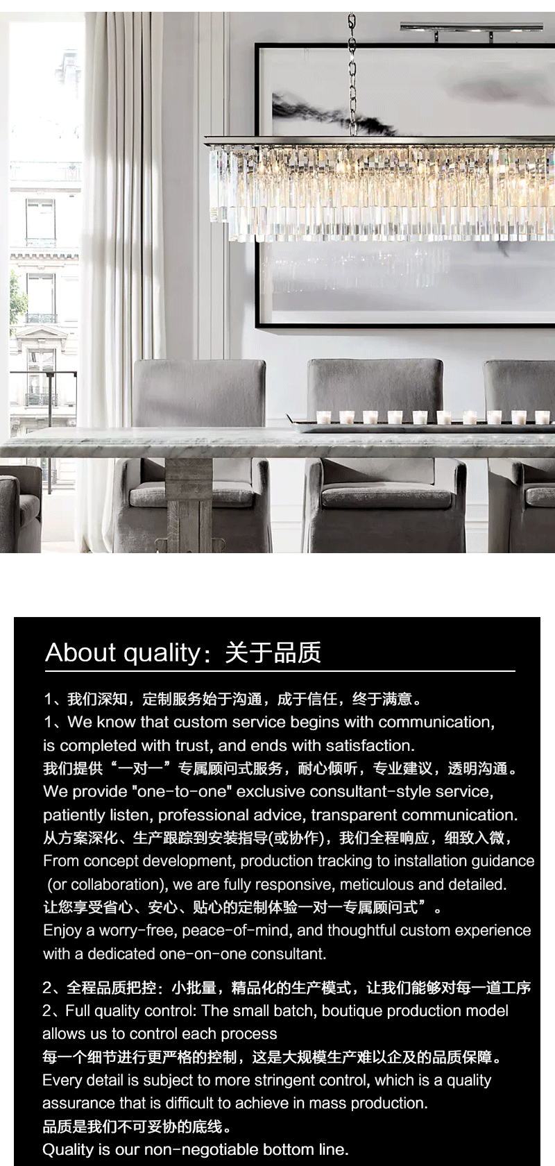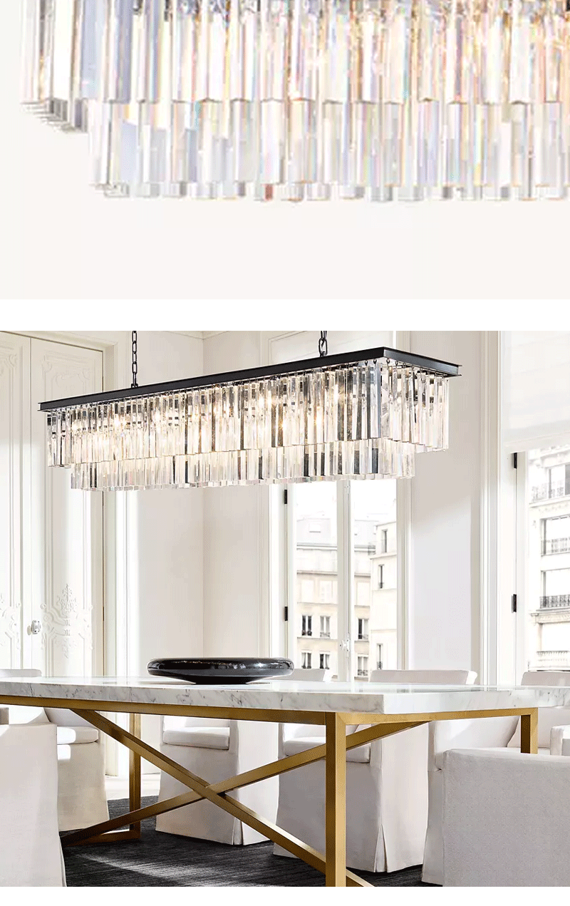 美式轻奢客厅餐厅矩形玻璃吊灯