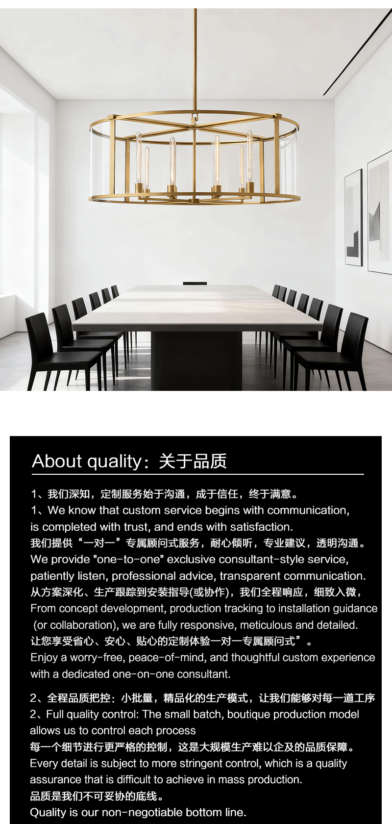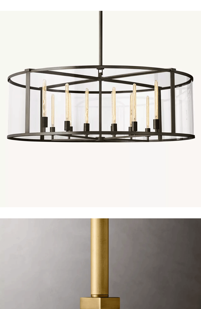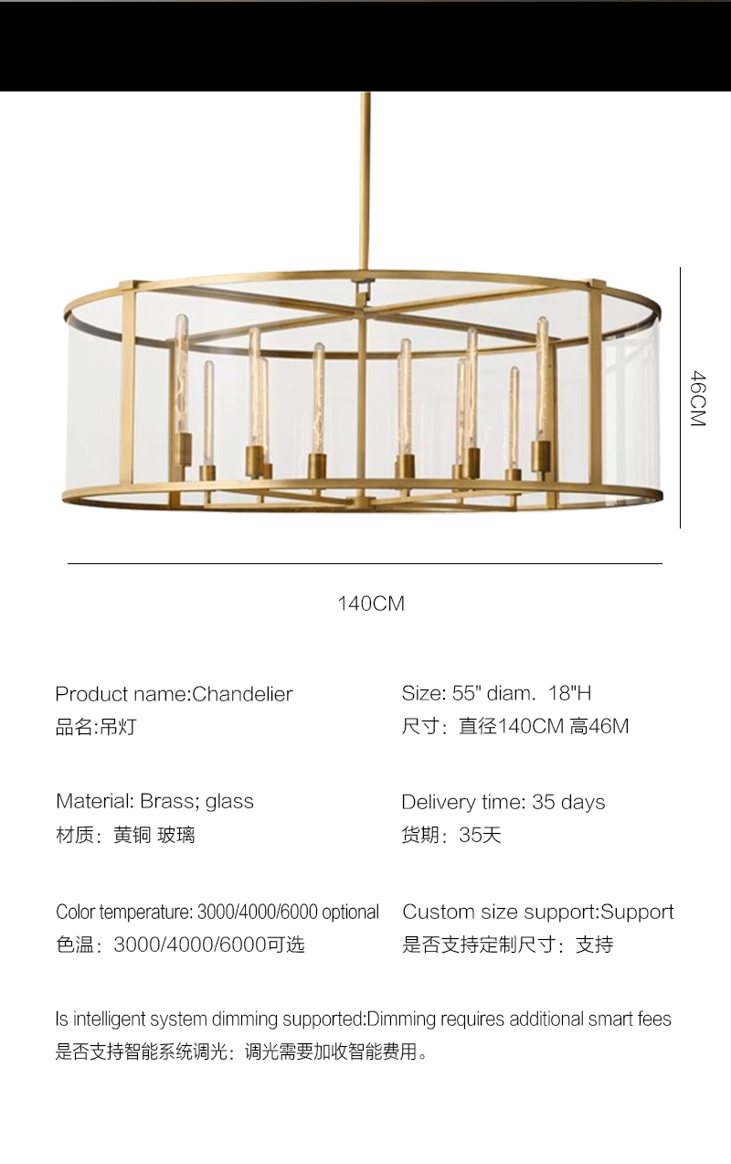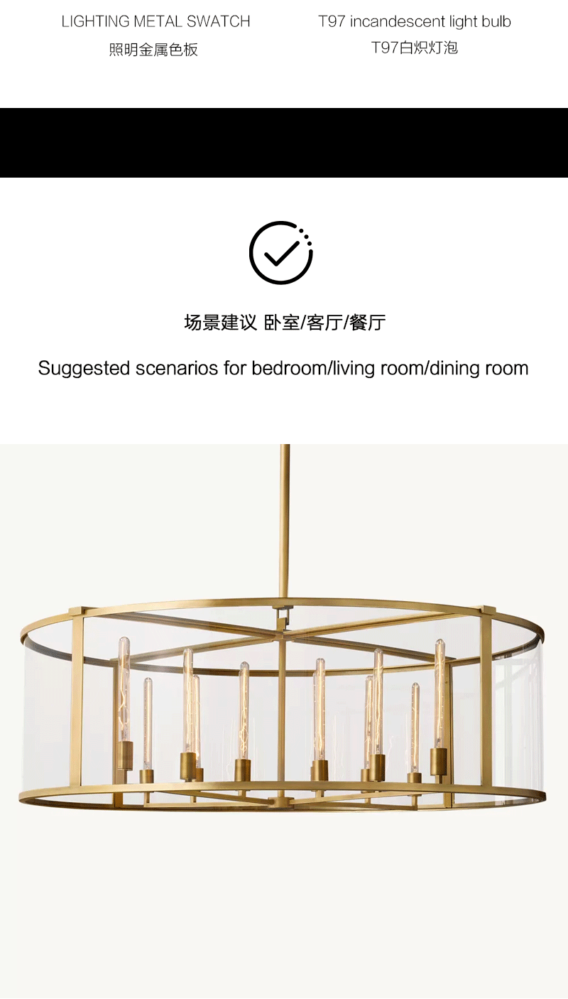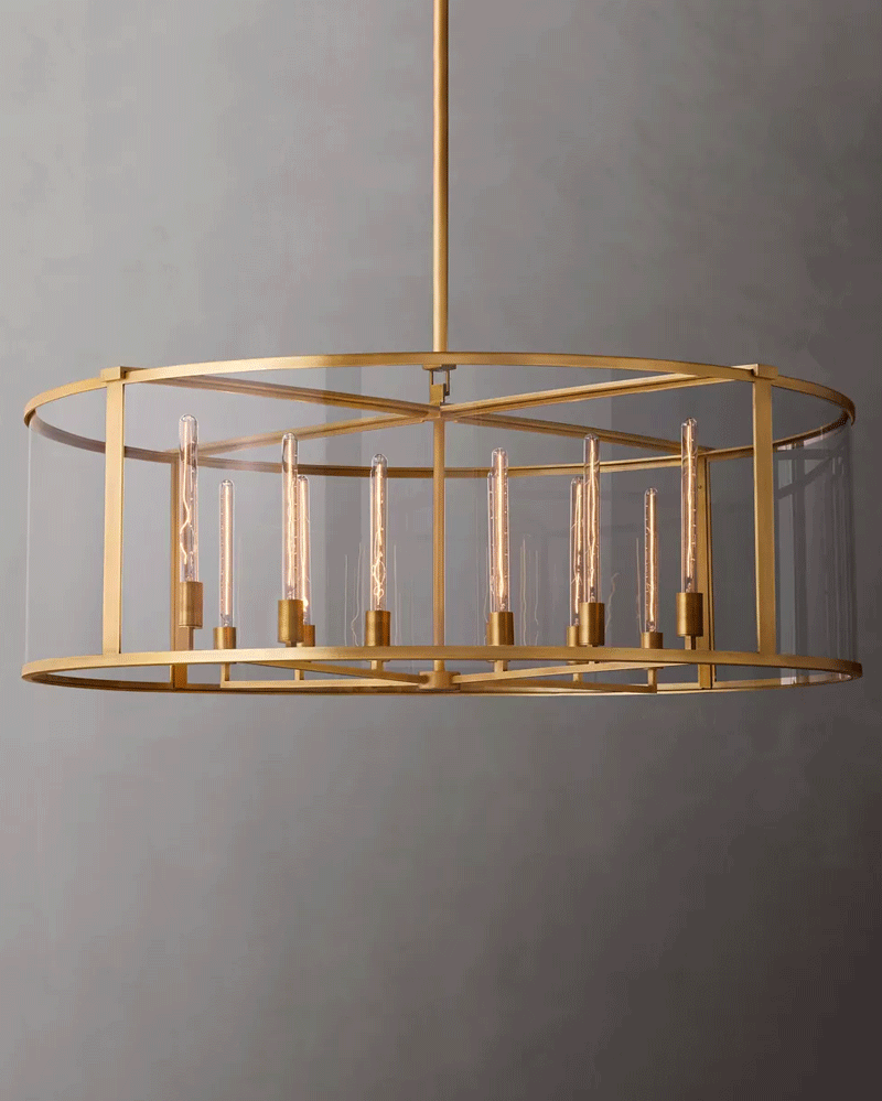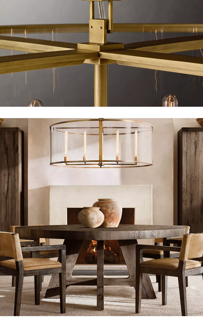 美式轻奢客厅餐厅枝形黄铜圆形玻璃吊灯