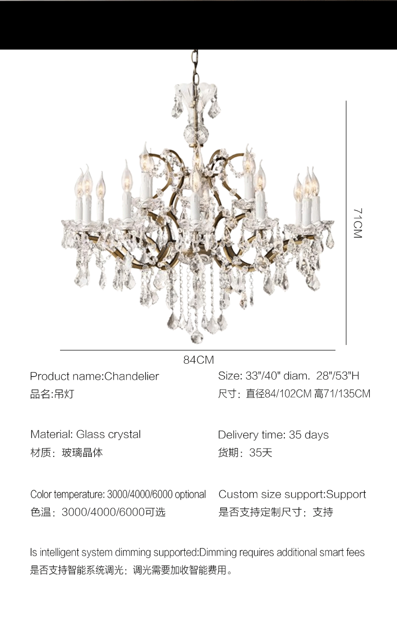 美式轻奢客厅餐厅水晶圆形枝形吊灯
