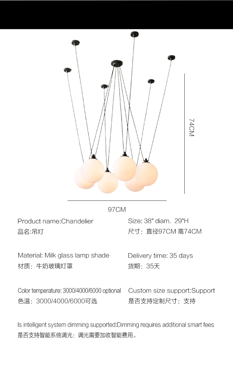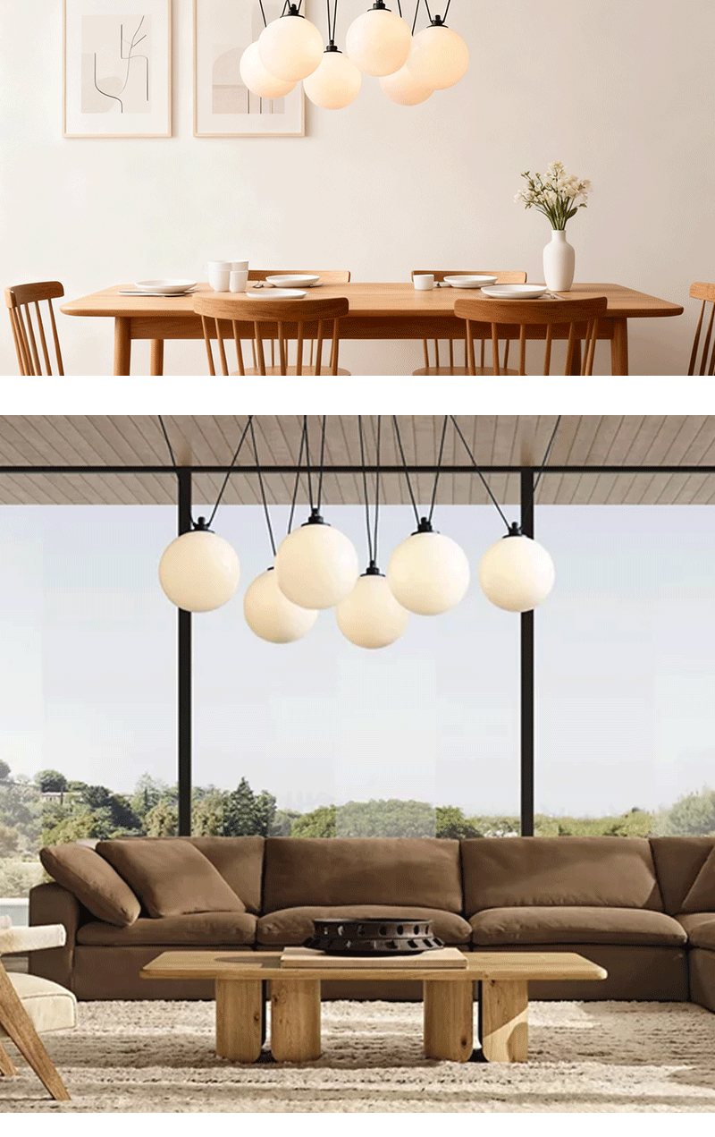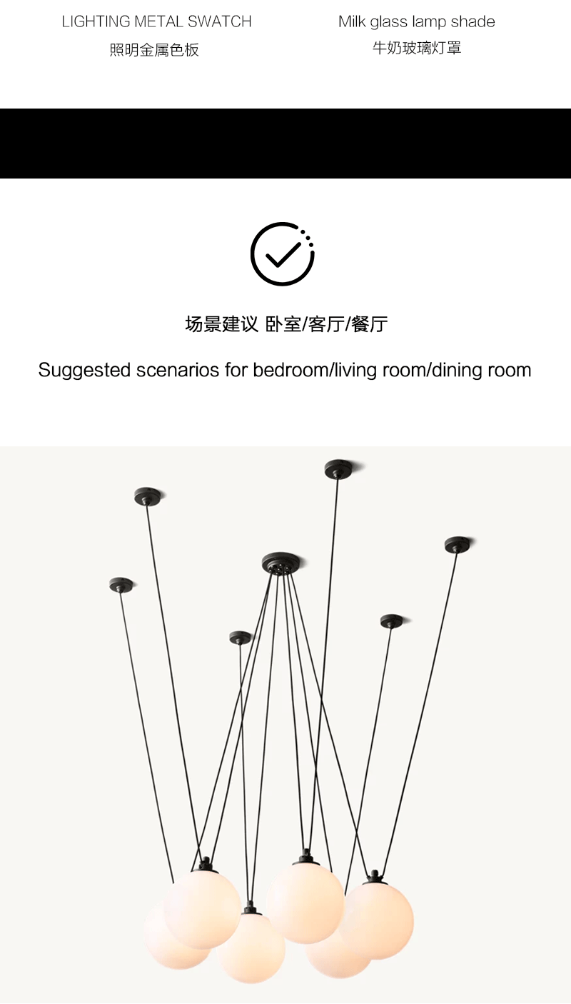 美式轻奢客厅餐厅牛奶玻璃灯罩吊灯