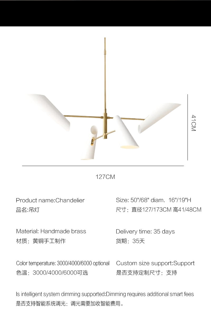 美式轻奢客厅餐厅枝形黄铜吊灯