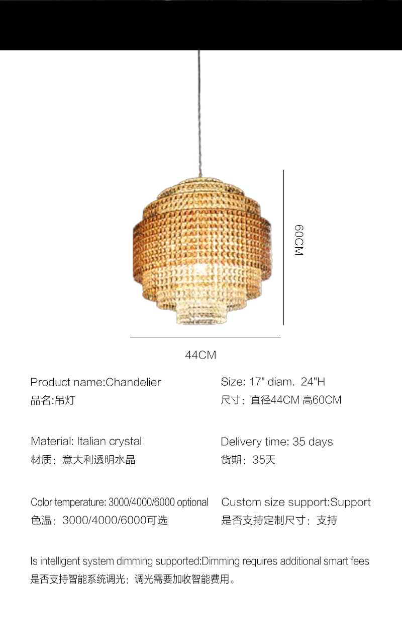 意大利轻奢客厅餐厅透明水晶吊灯
