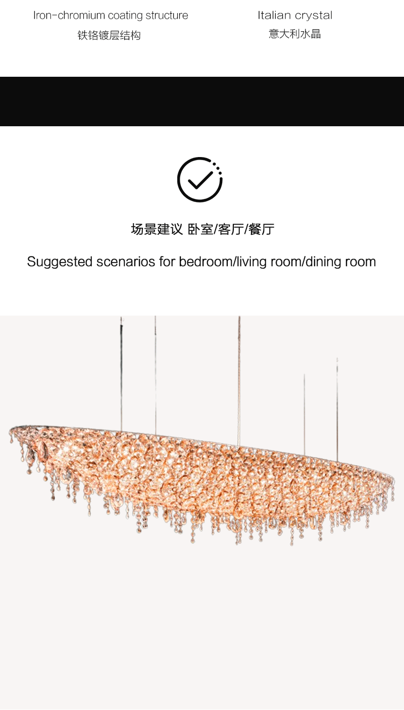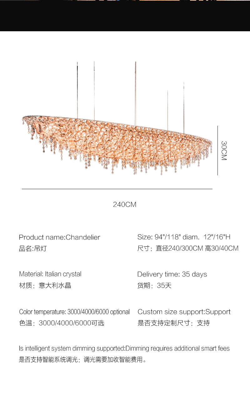 意大利轻奢客厅餐厅椭圆形透明水晶吊灯