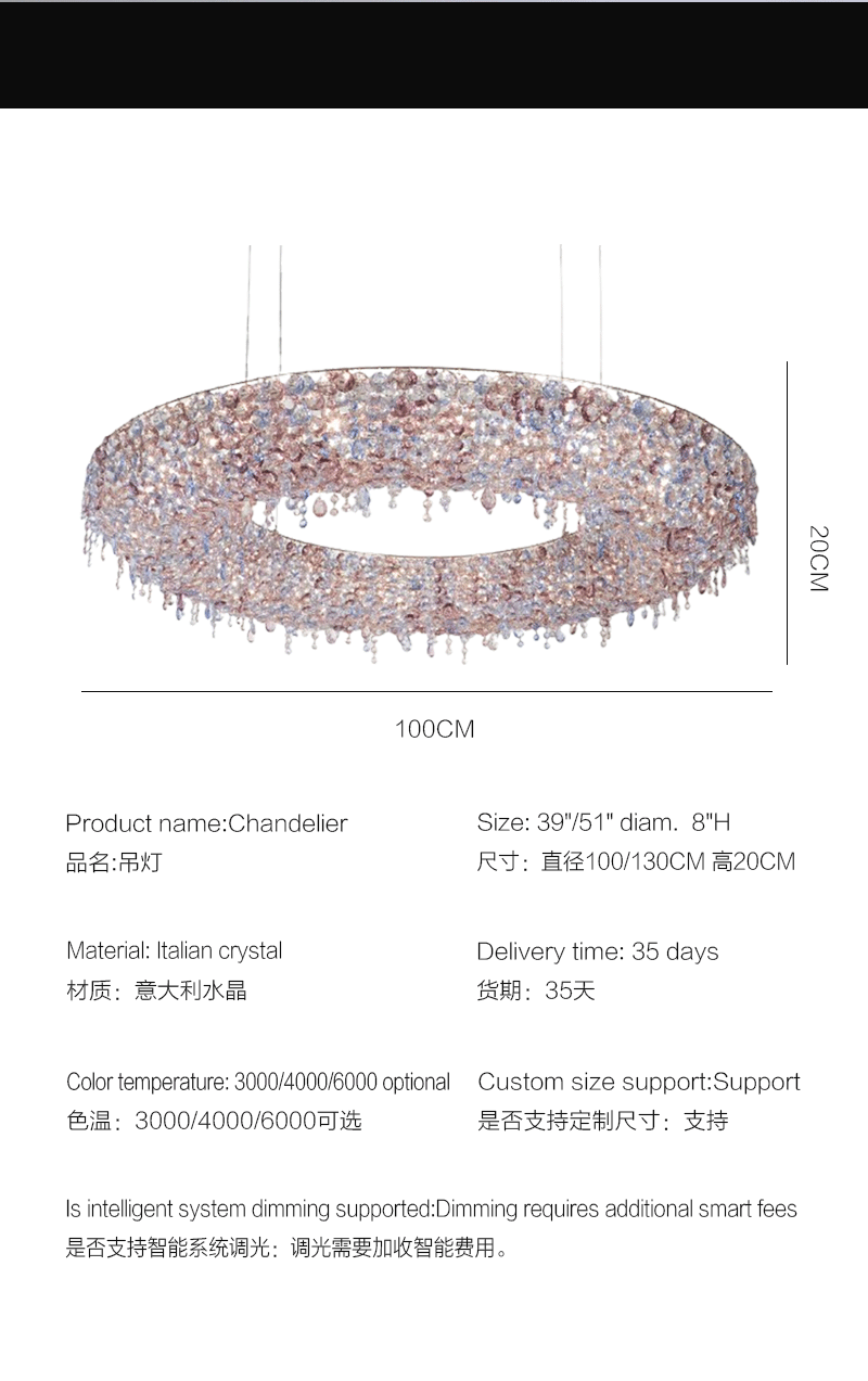 意大利轻奢客厅餐厅圆形透明水晶吊灯