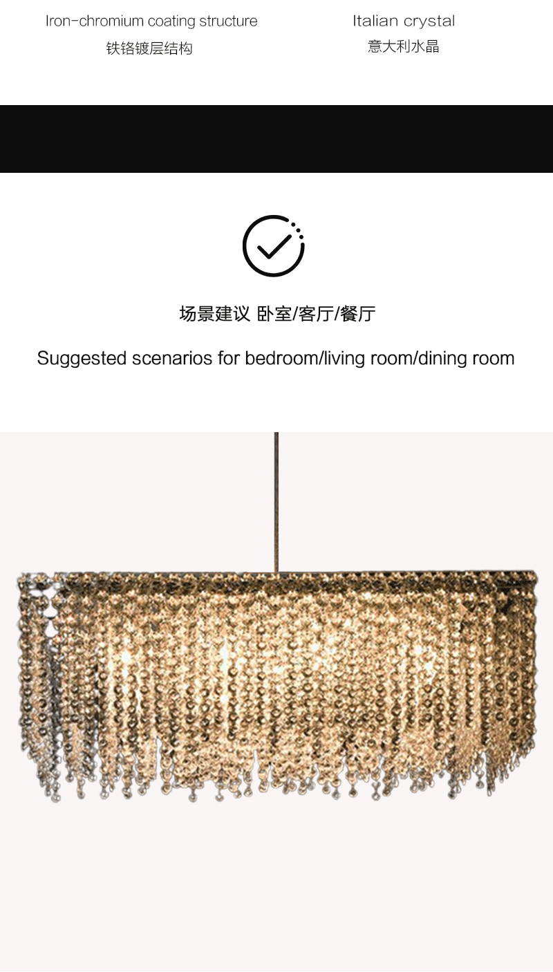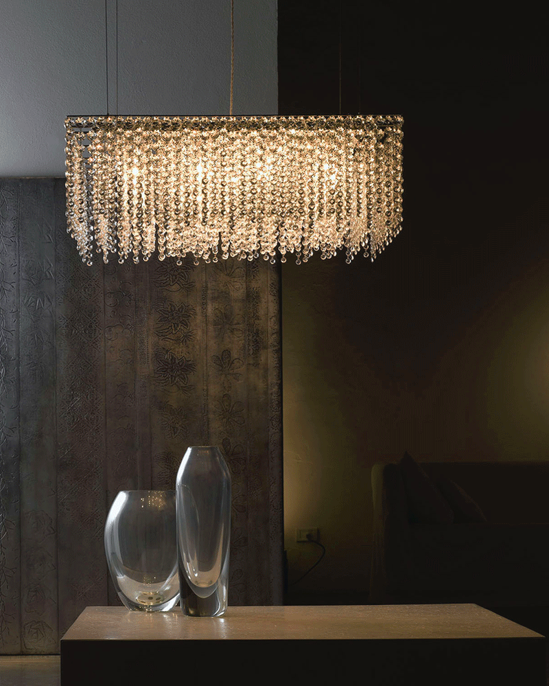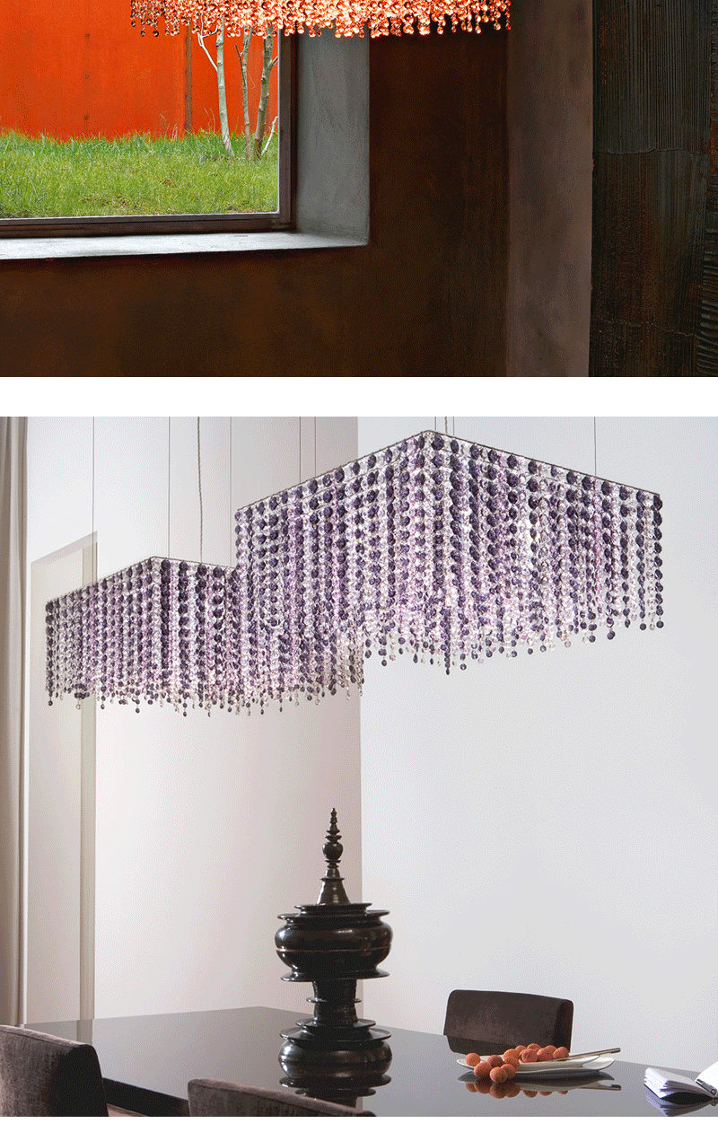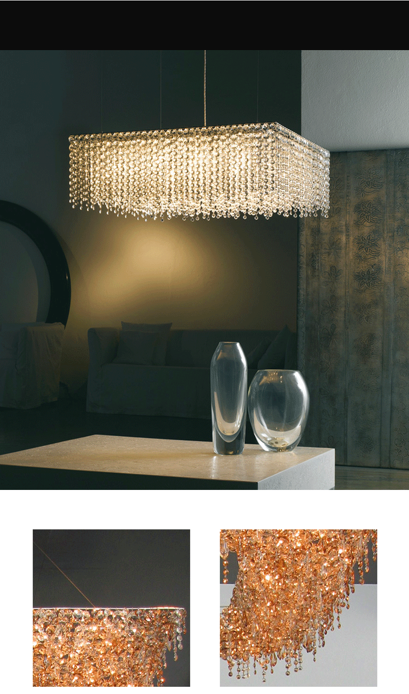 意大利轻奢客厅餐厅矩形透明水晶吊坠吊灯
