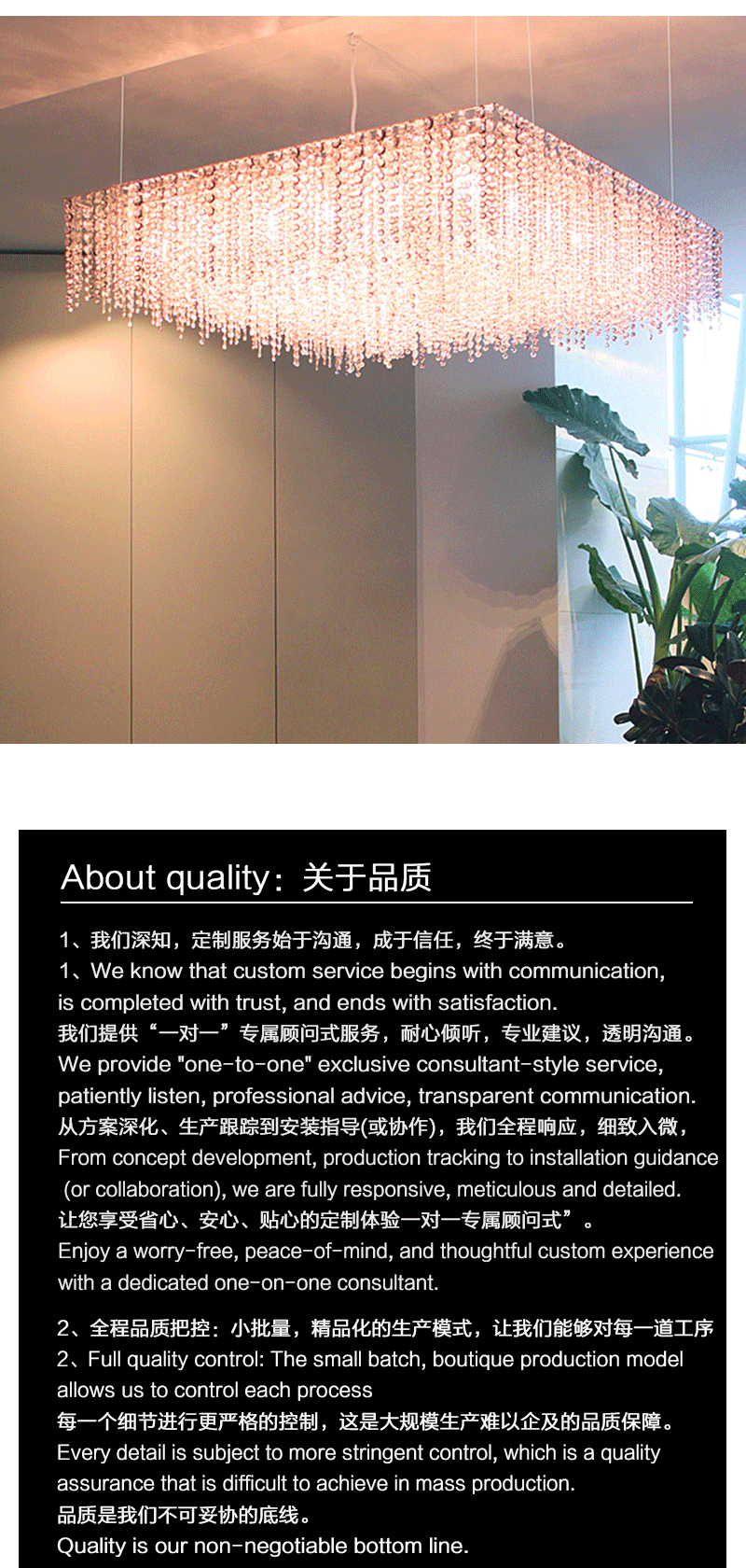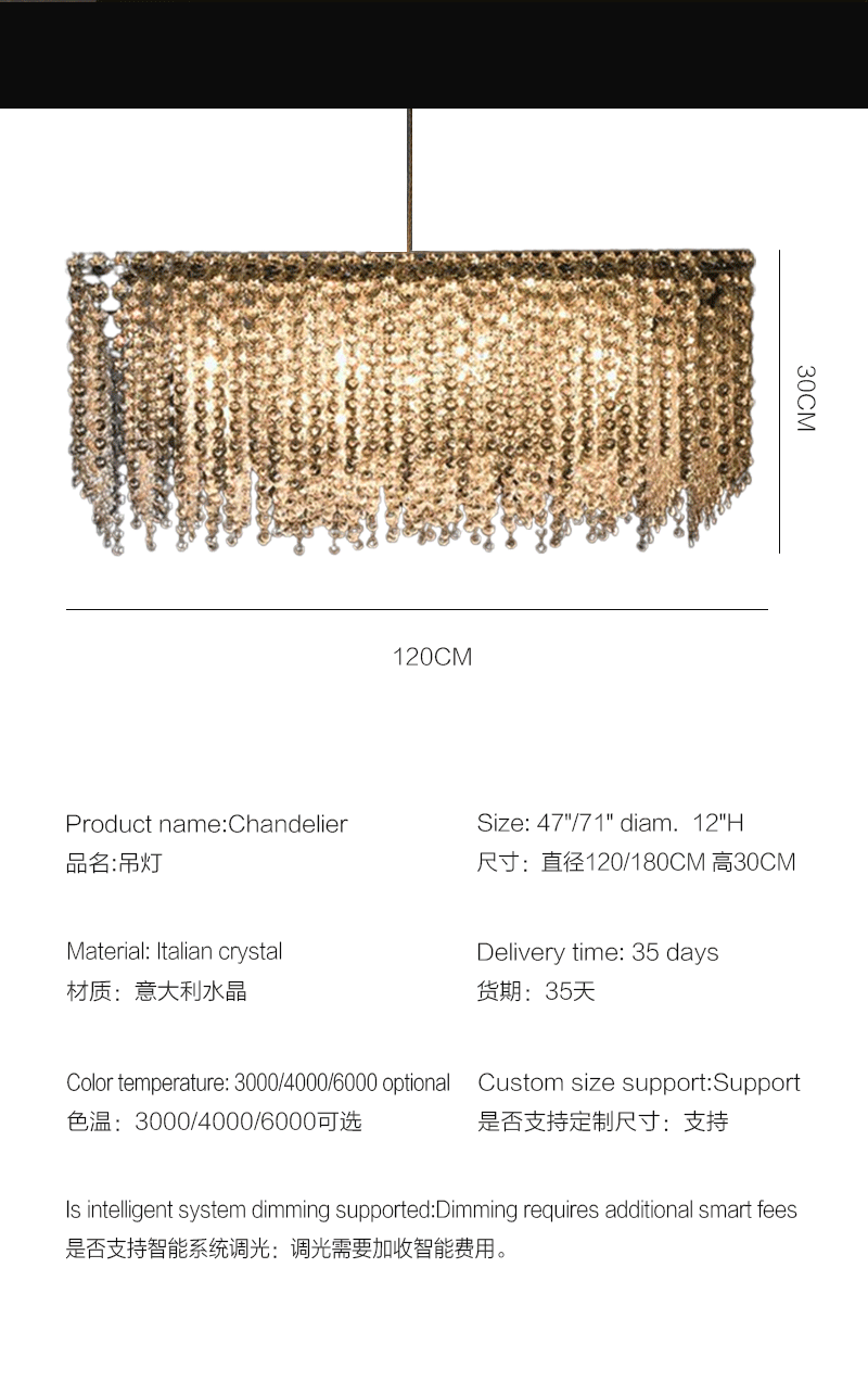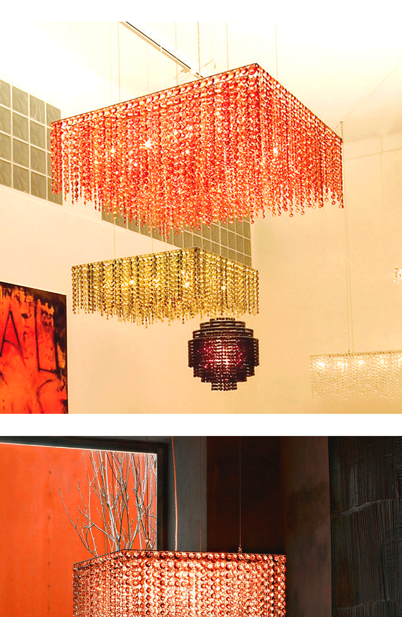 意大利轻奢客厅餐厅矩形透明水晶吊坠吊灯