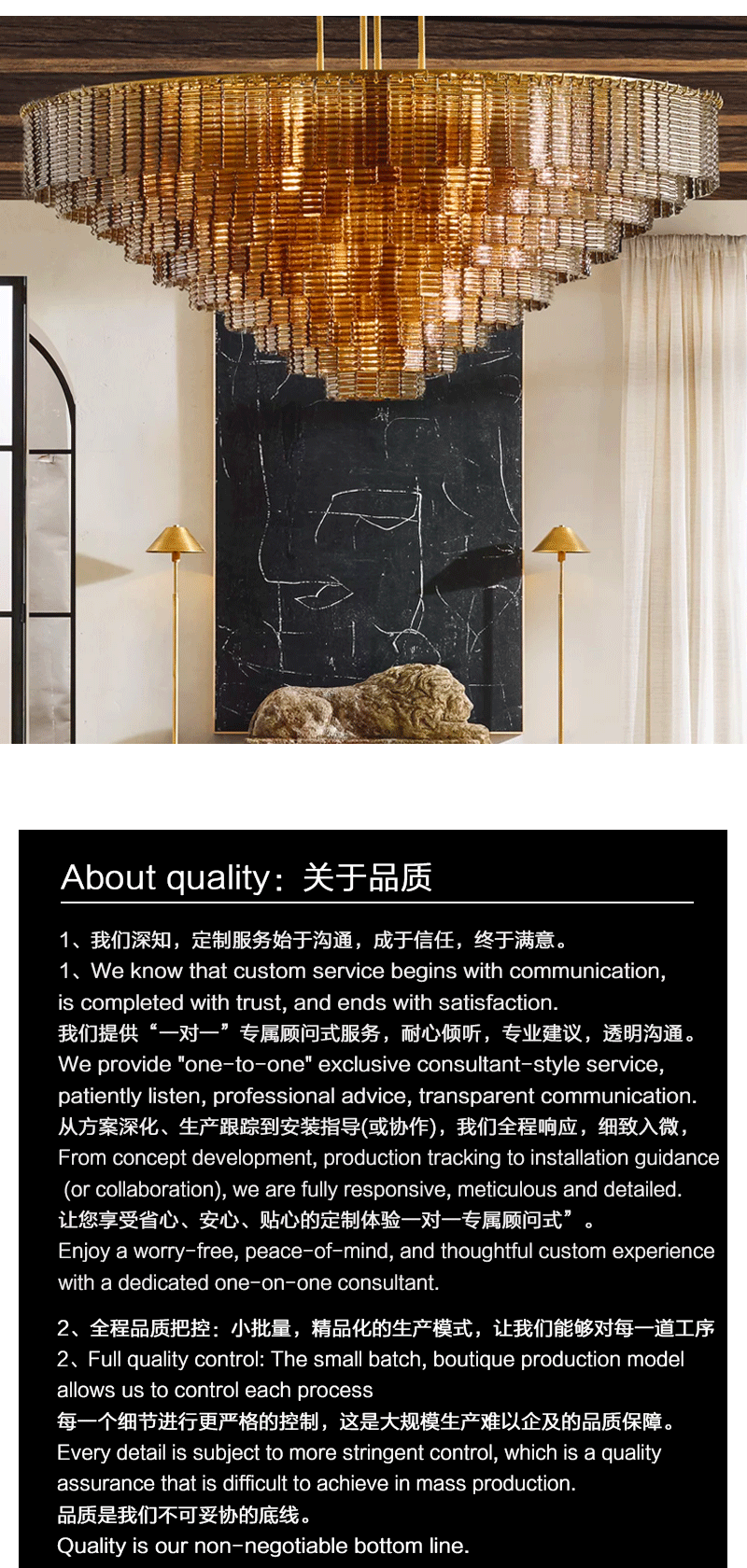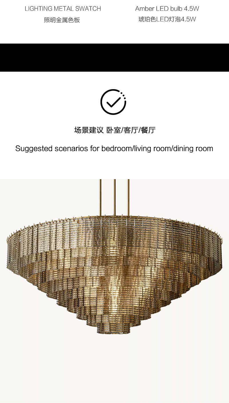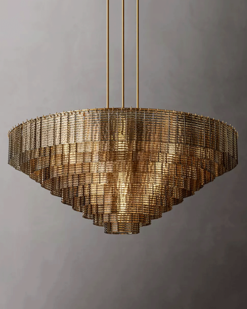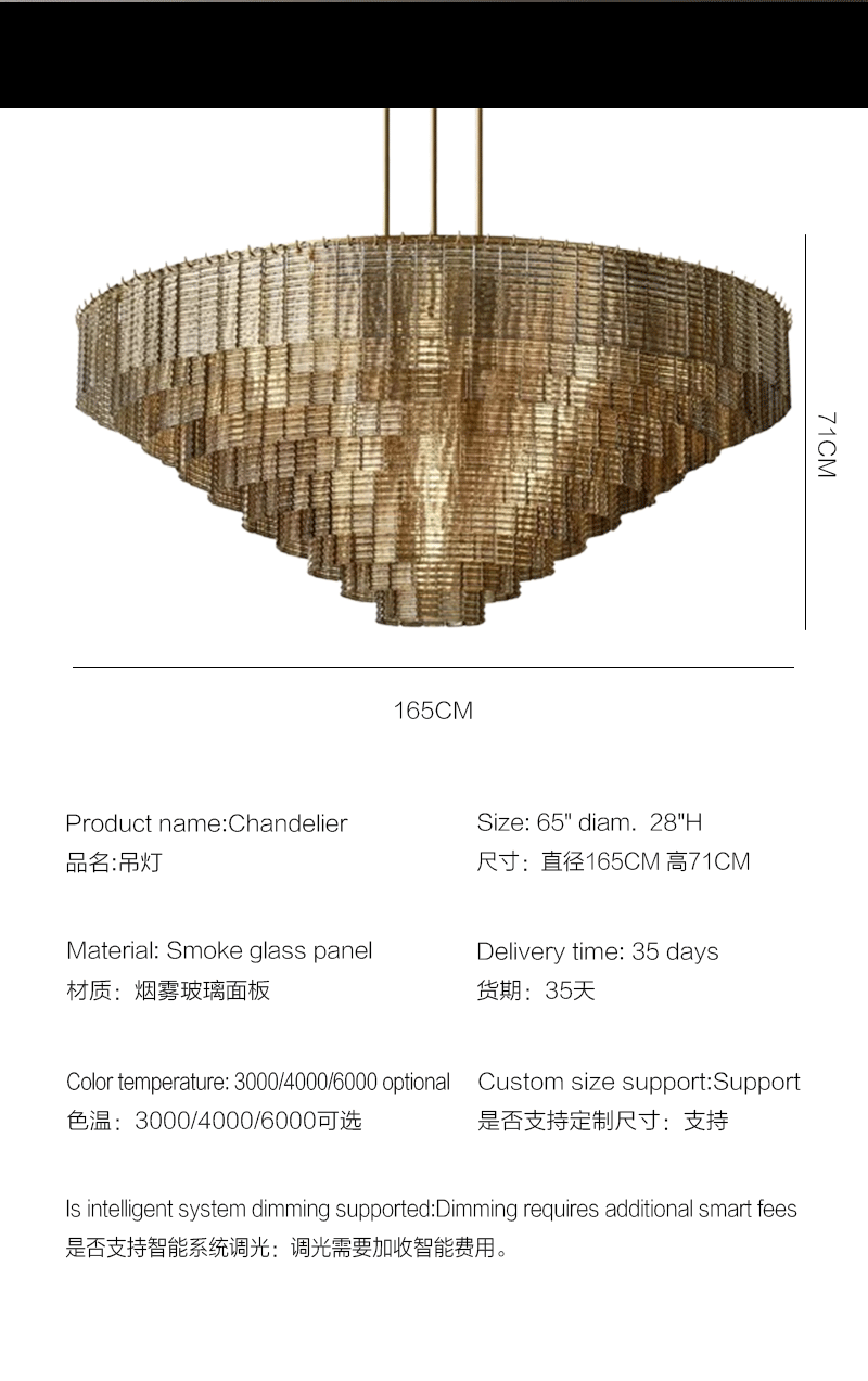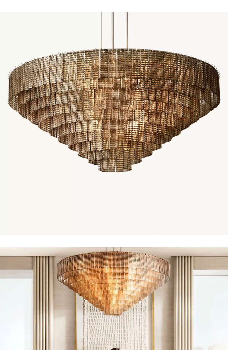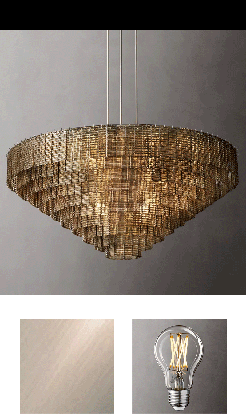 美式轻奢客厅餐厅烟雾玻璃面板吊灯