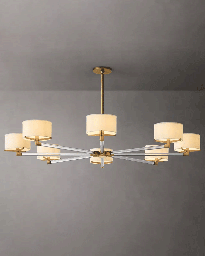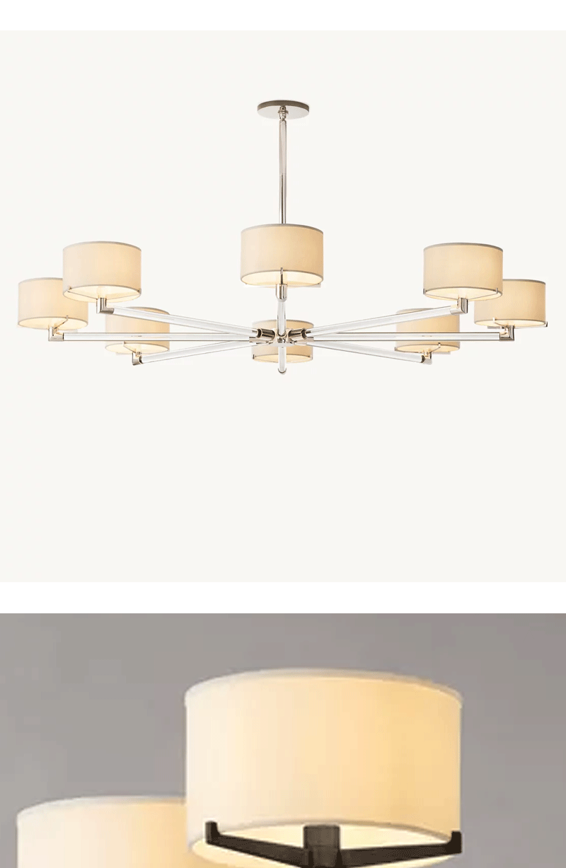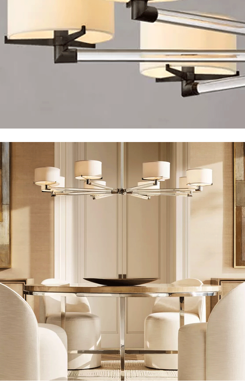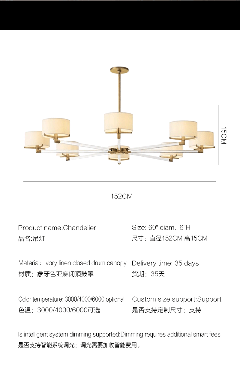 美式轻奢客厅餐厅枝形亚麻鼓罩吊灯