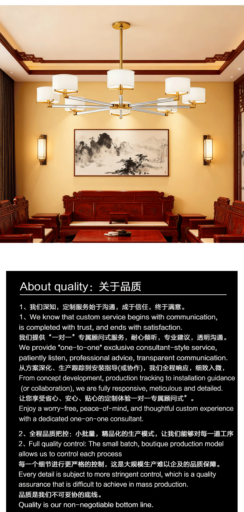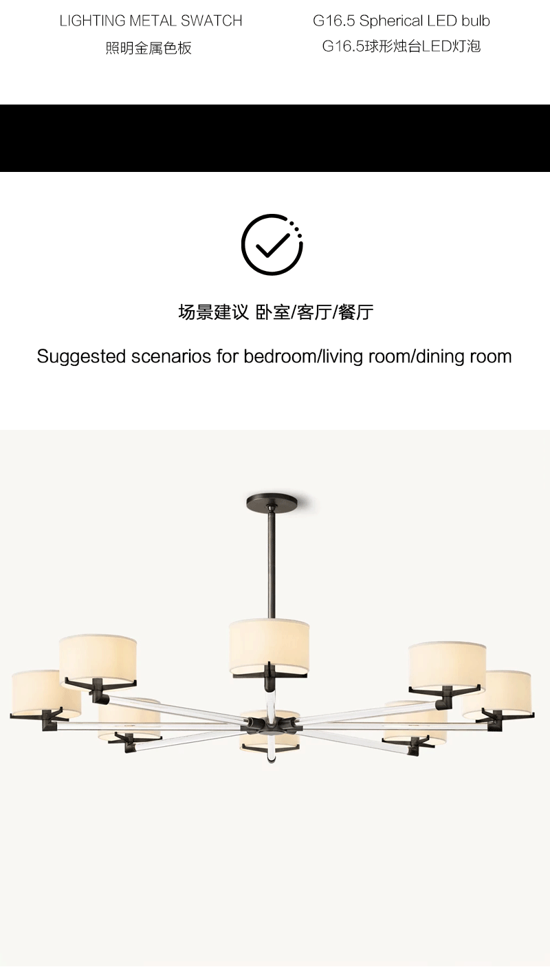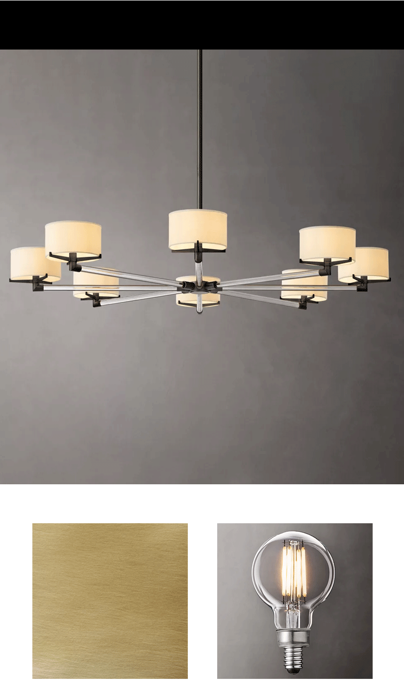 美式轻奢客厅餐厅枝形亚麻鼓罩吊灯