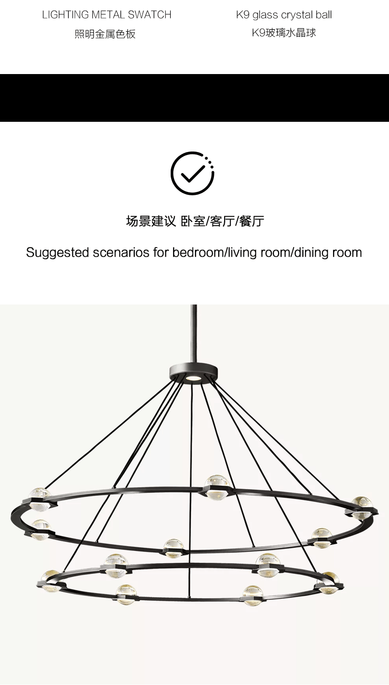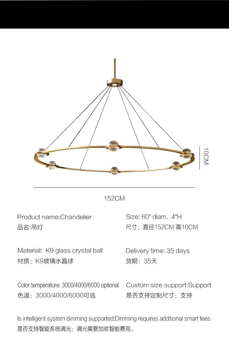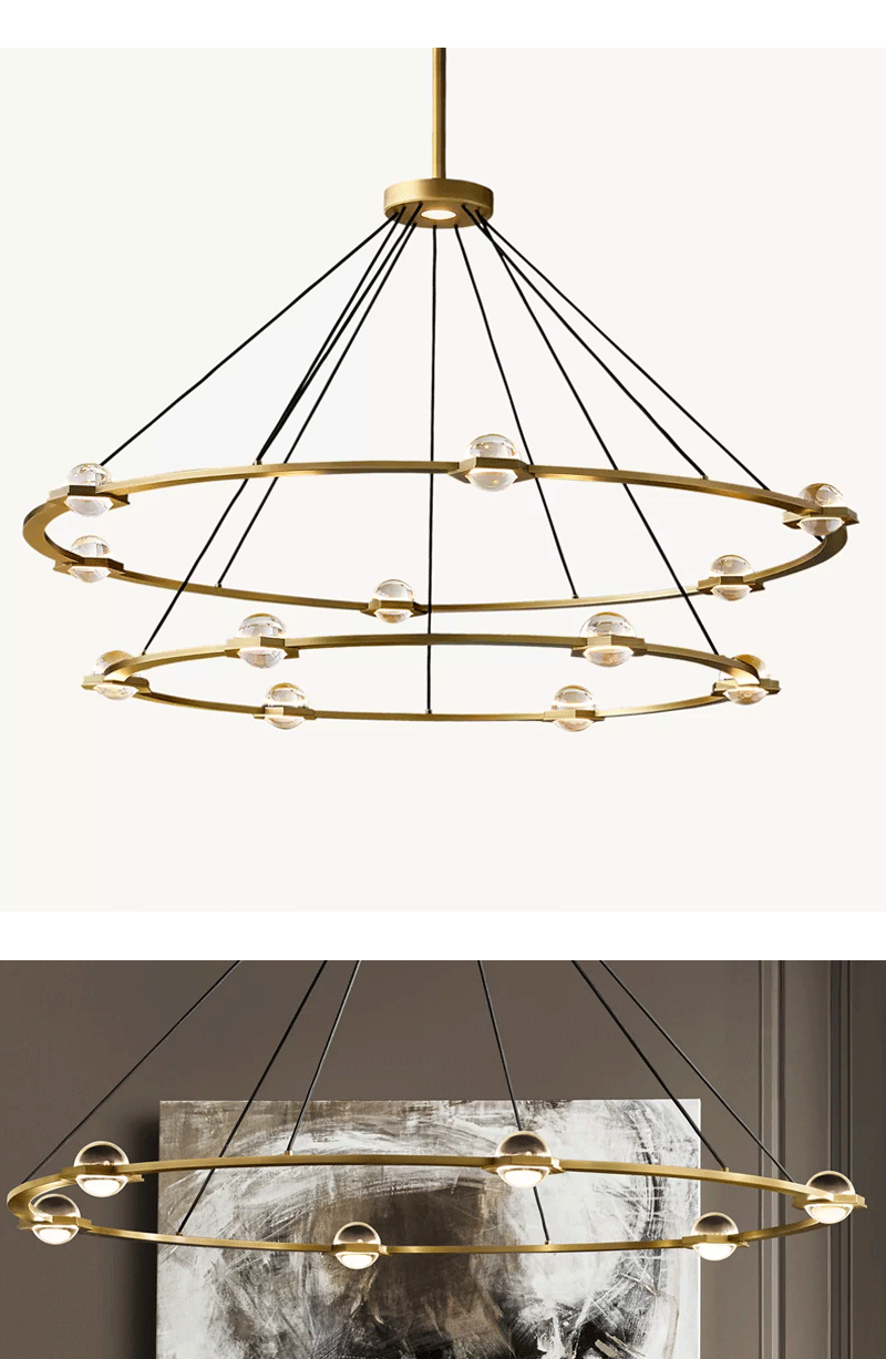 美式轻奢客厅餐厅圆形玻璃水晶球吊灯