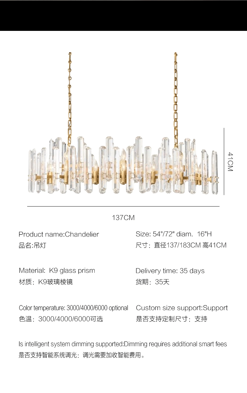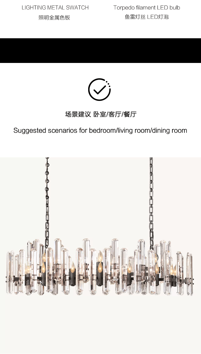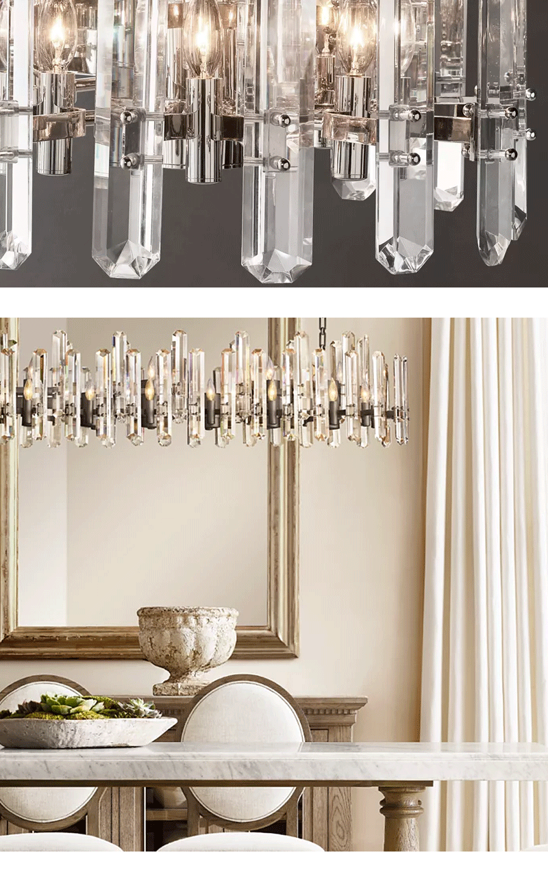 美式轻奢客厅餐厅矩形玻璃吊灯