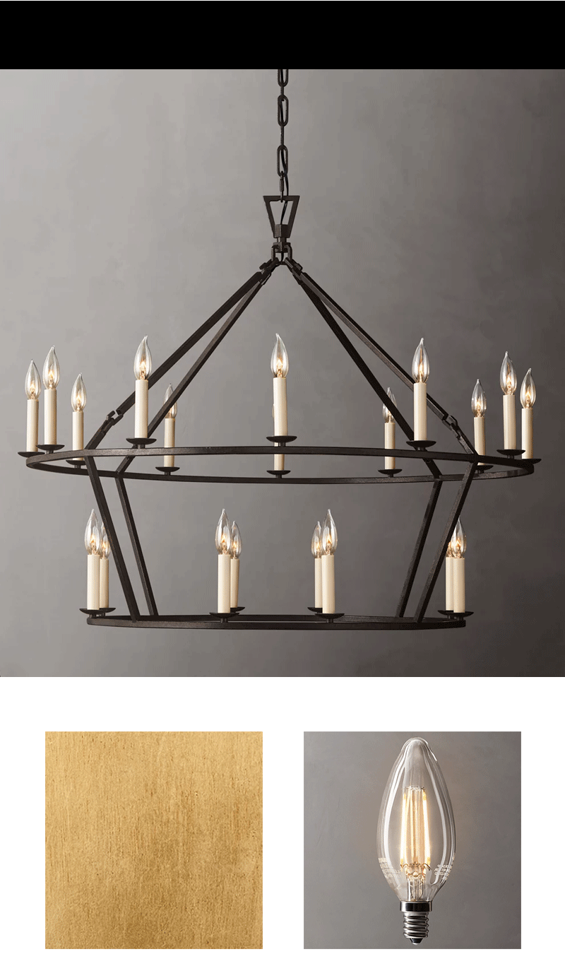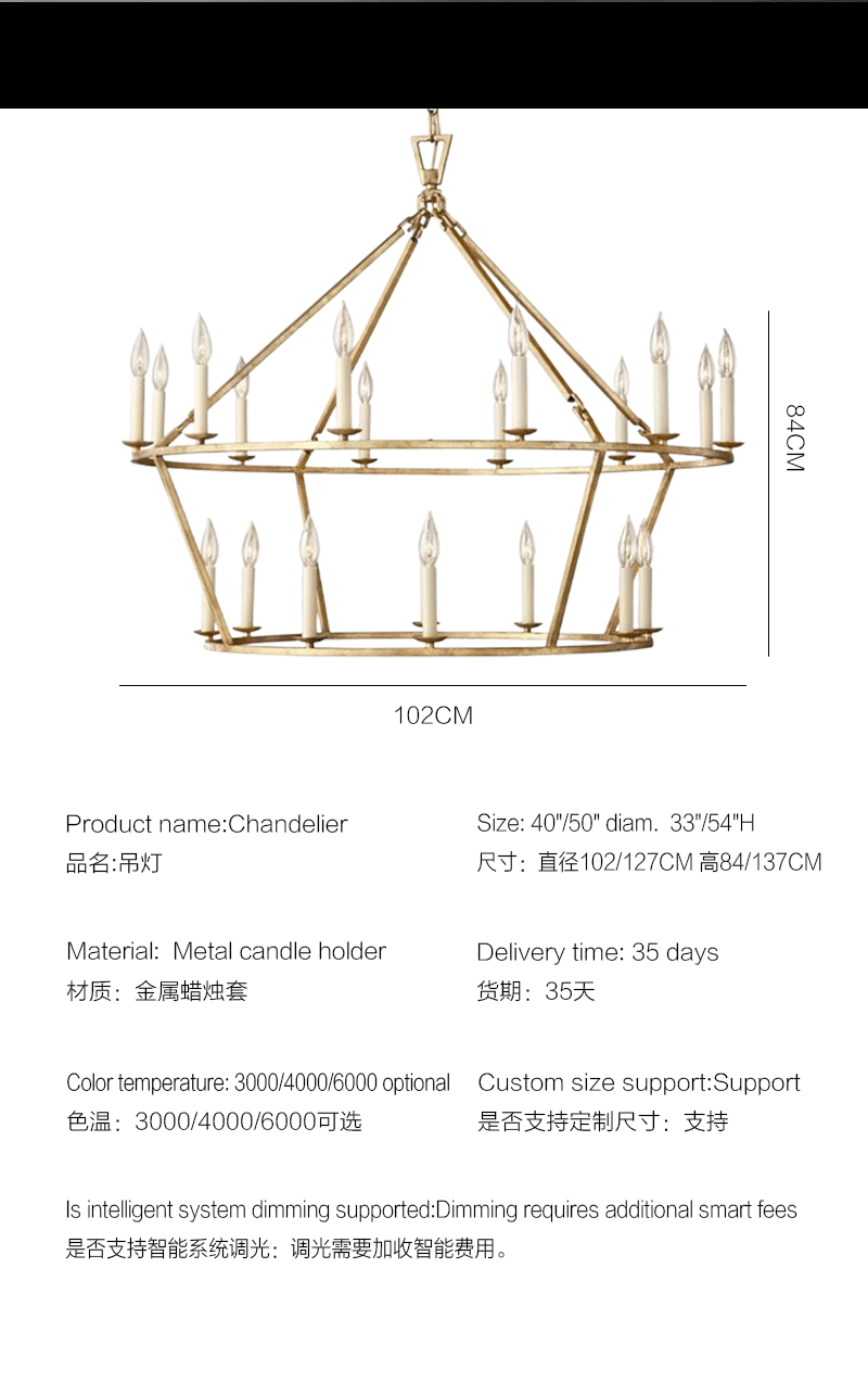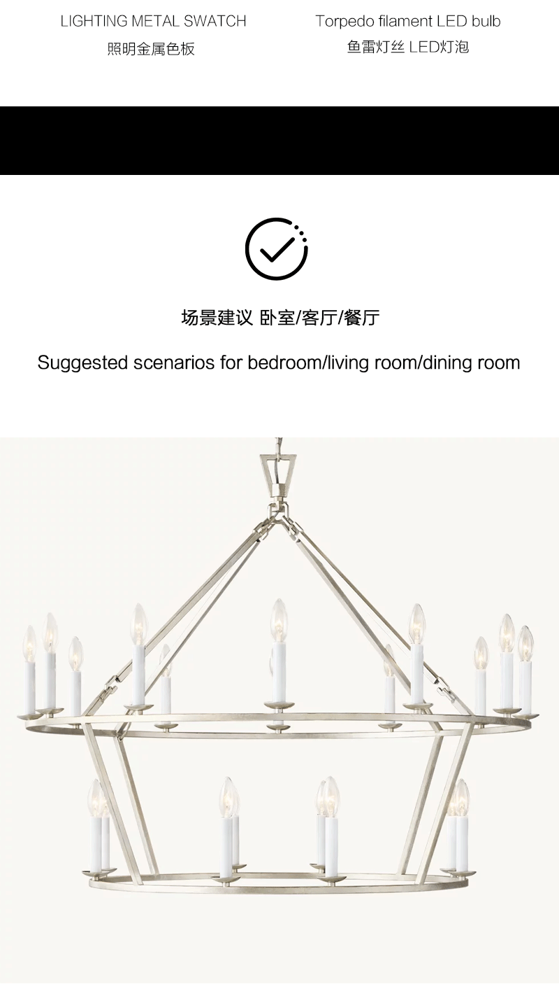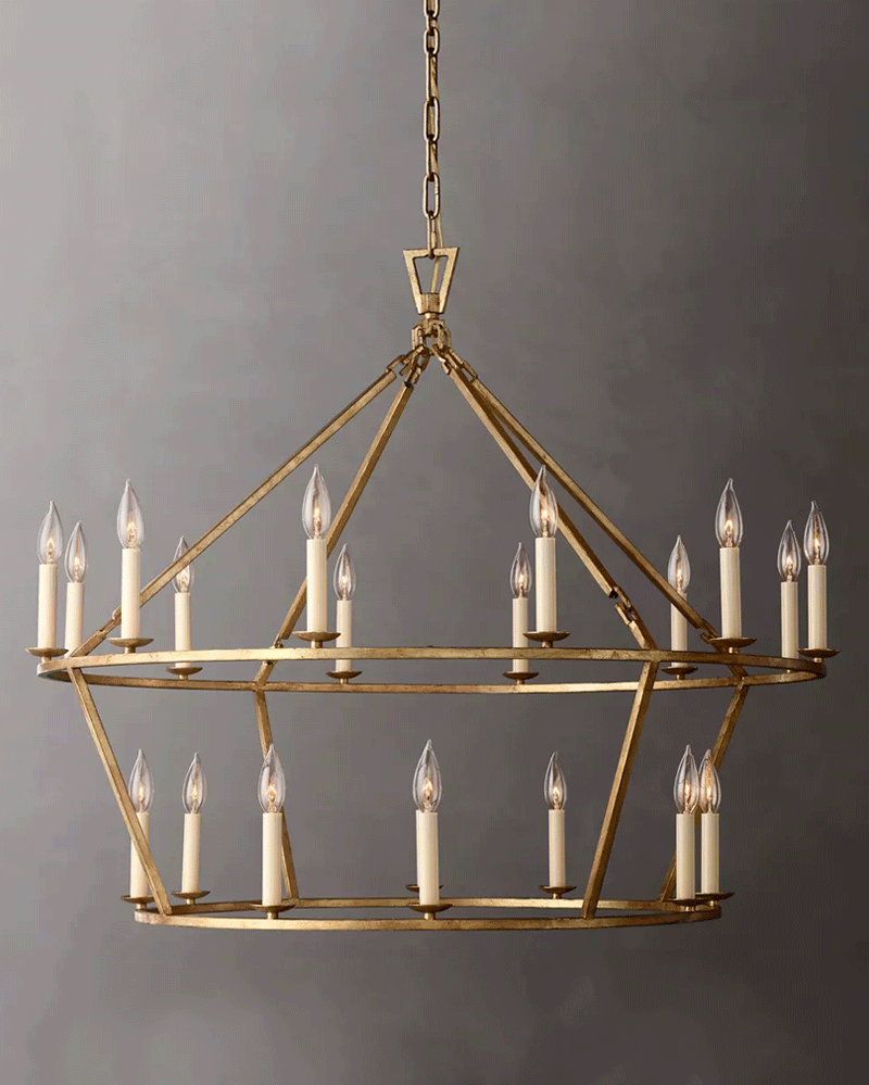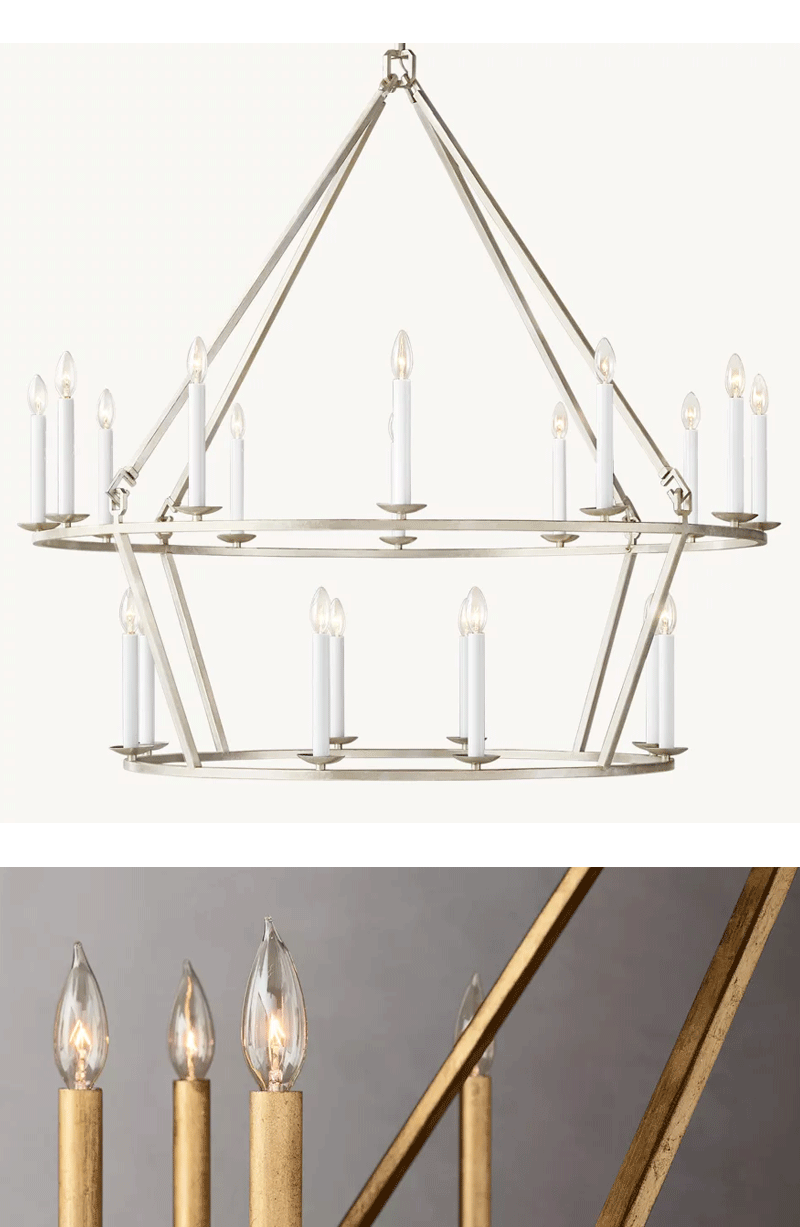 美式轻奢客厅餐厅镂空两层金属蜡烛套吊灯