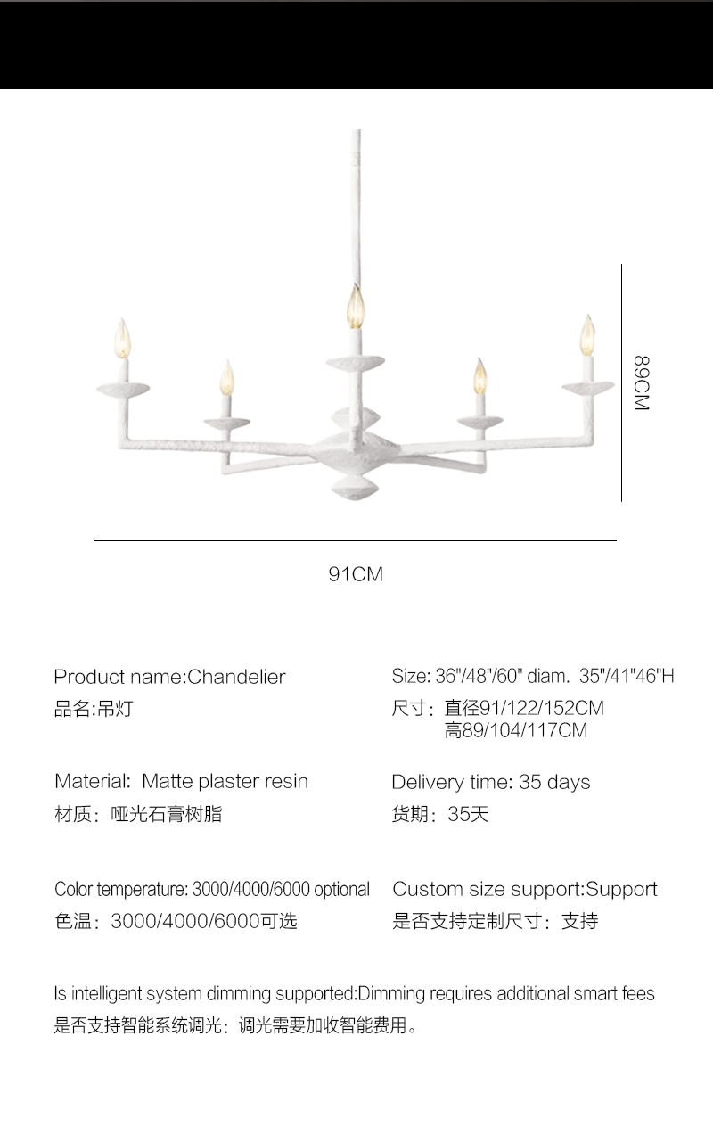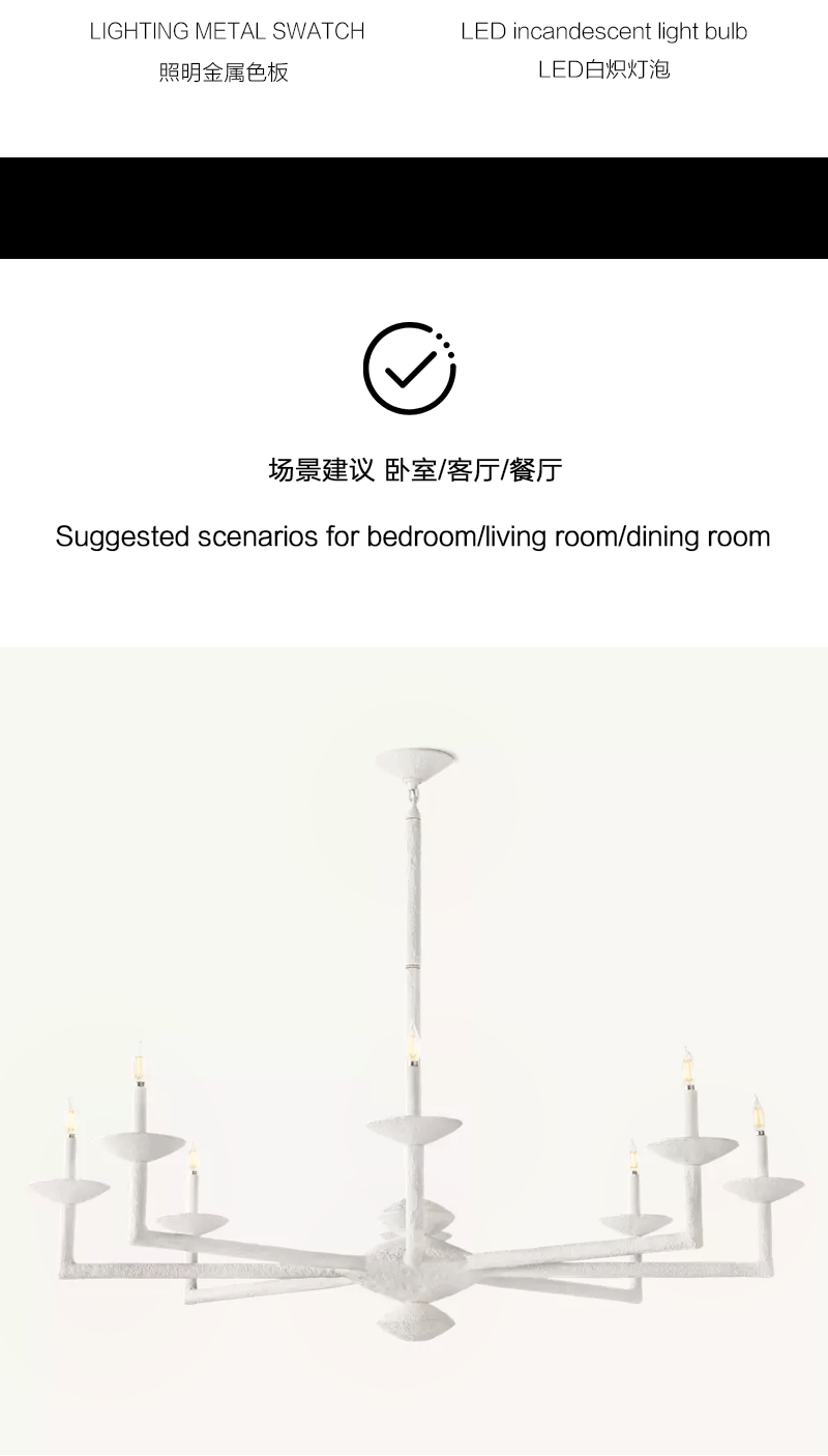 美式轻奢客厅卧室枝形石膏树脂吊灯