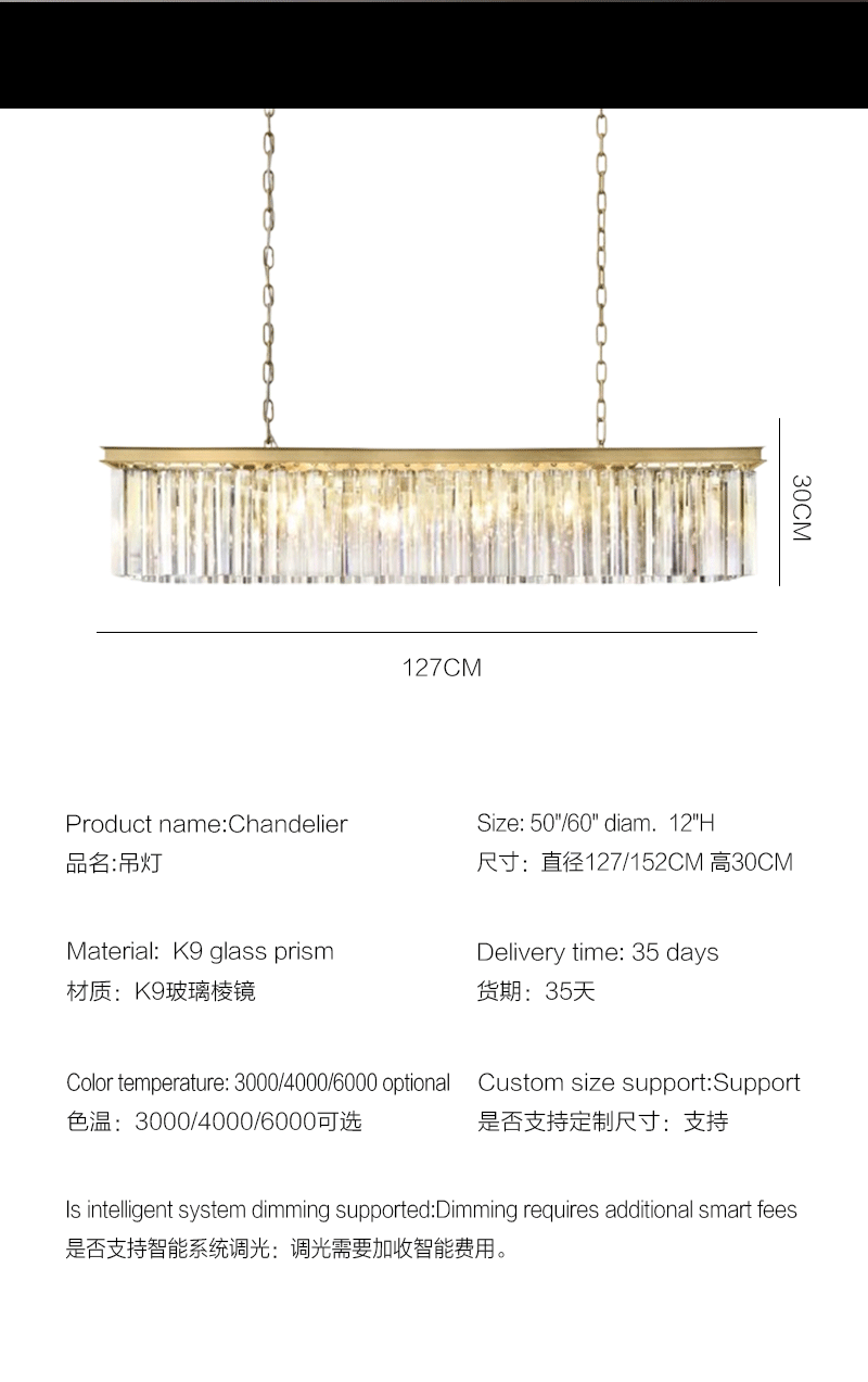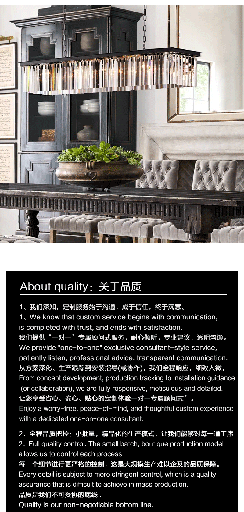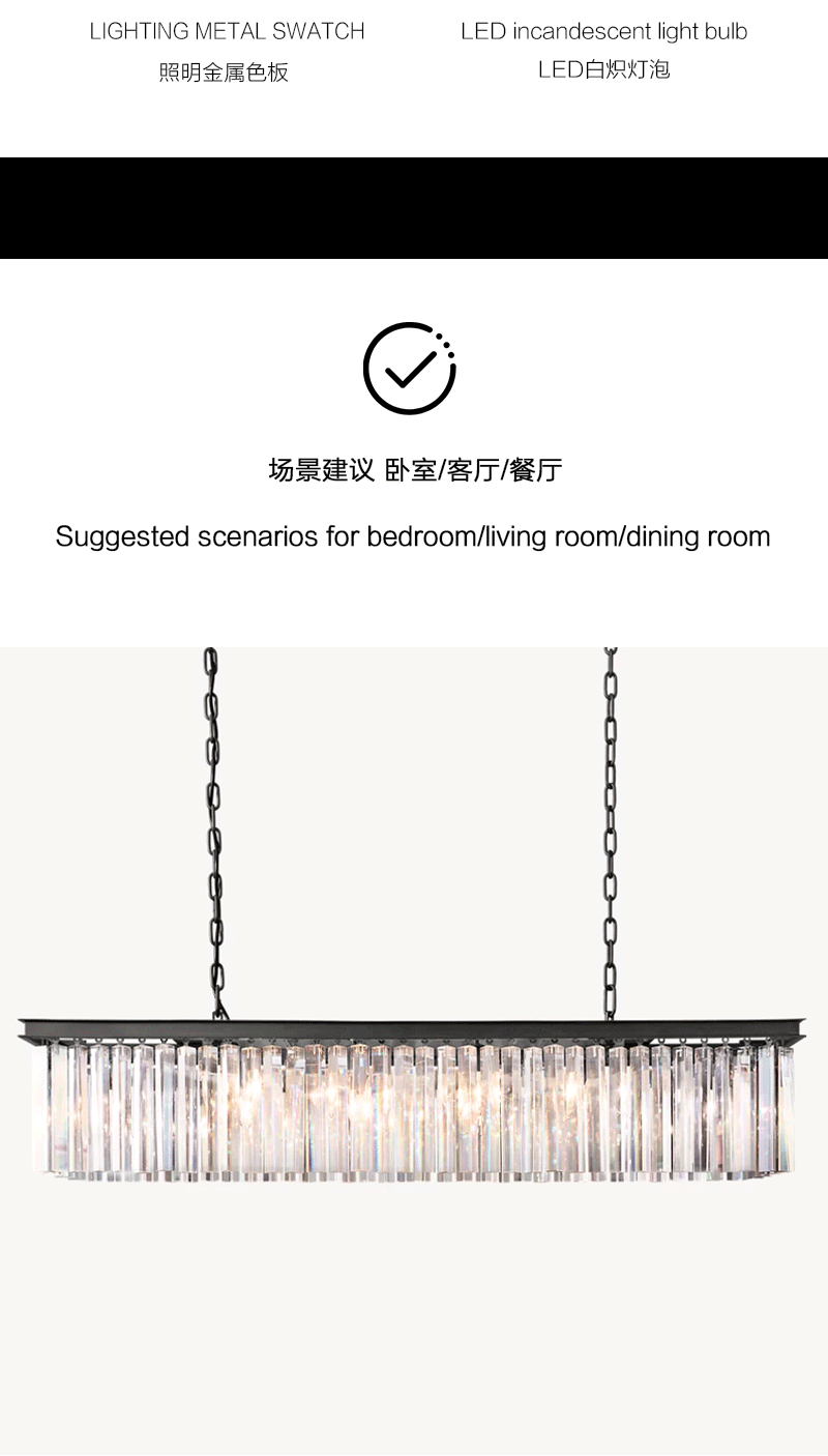 美式轻奢客厅餐厅矩形玻璃吊灯