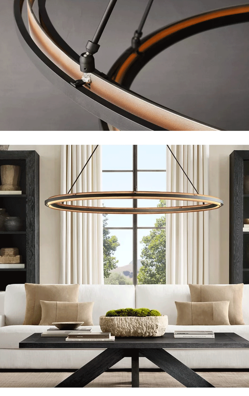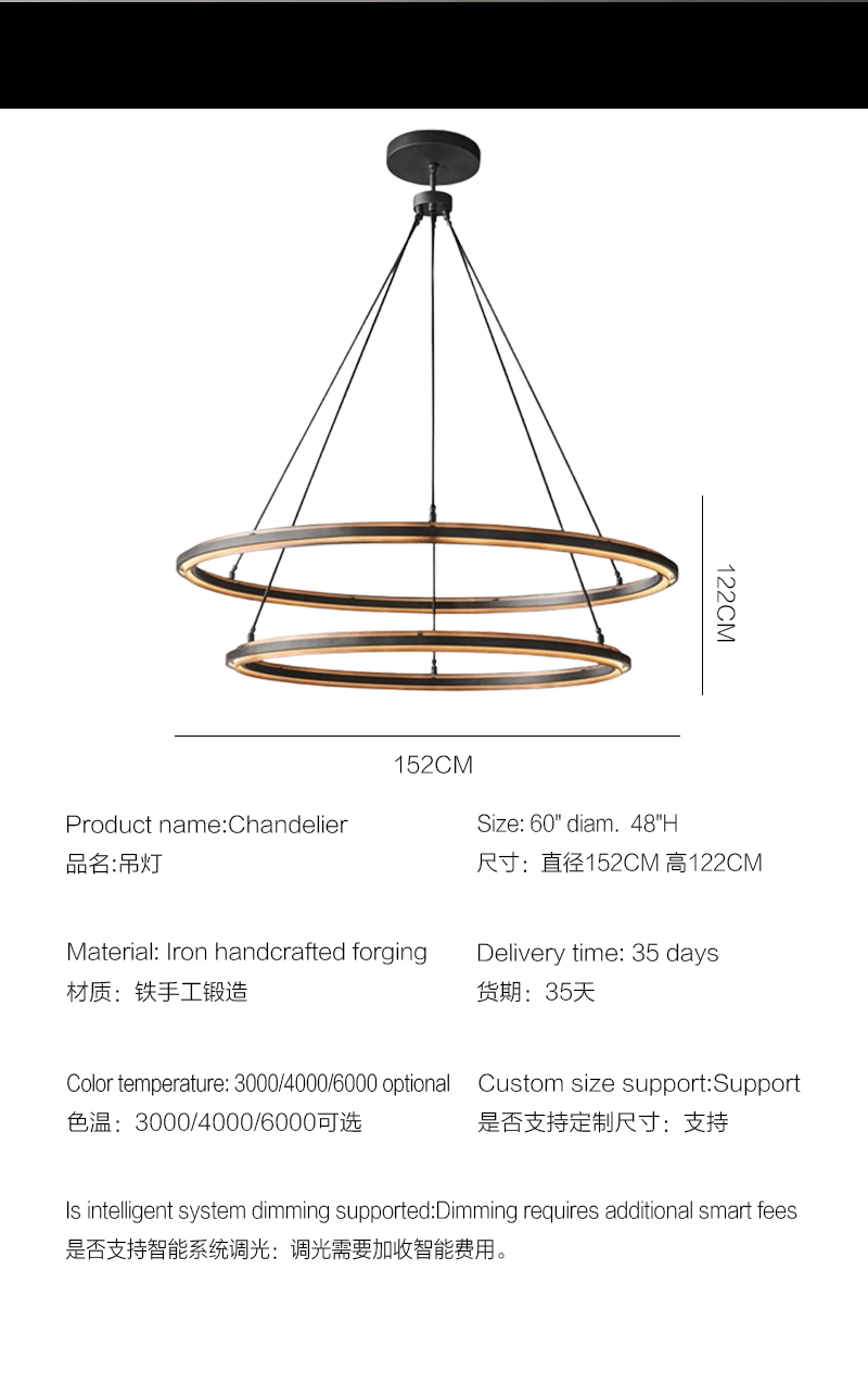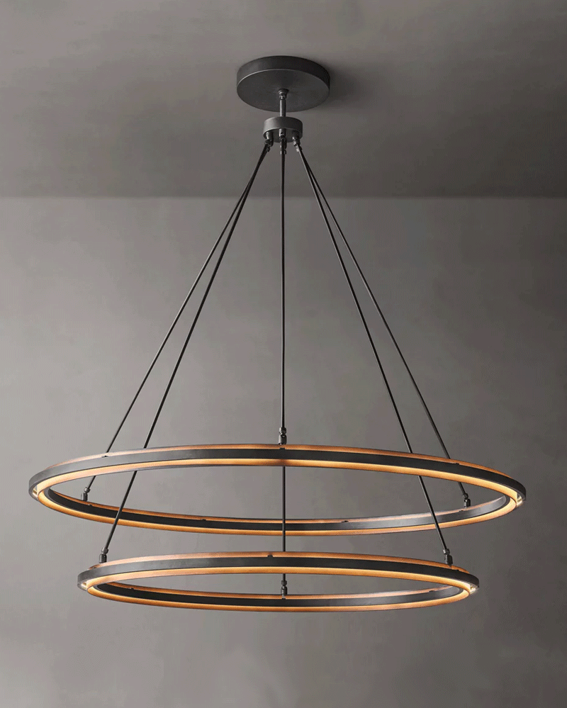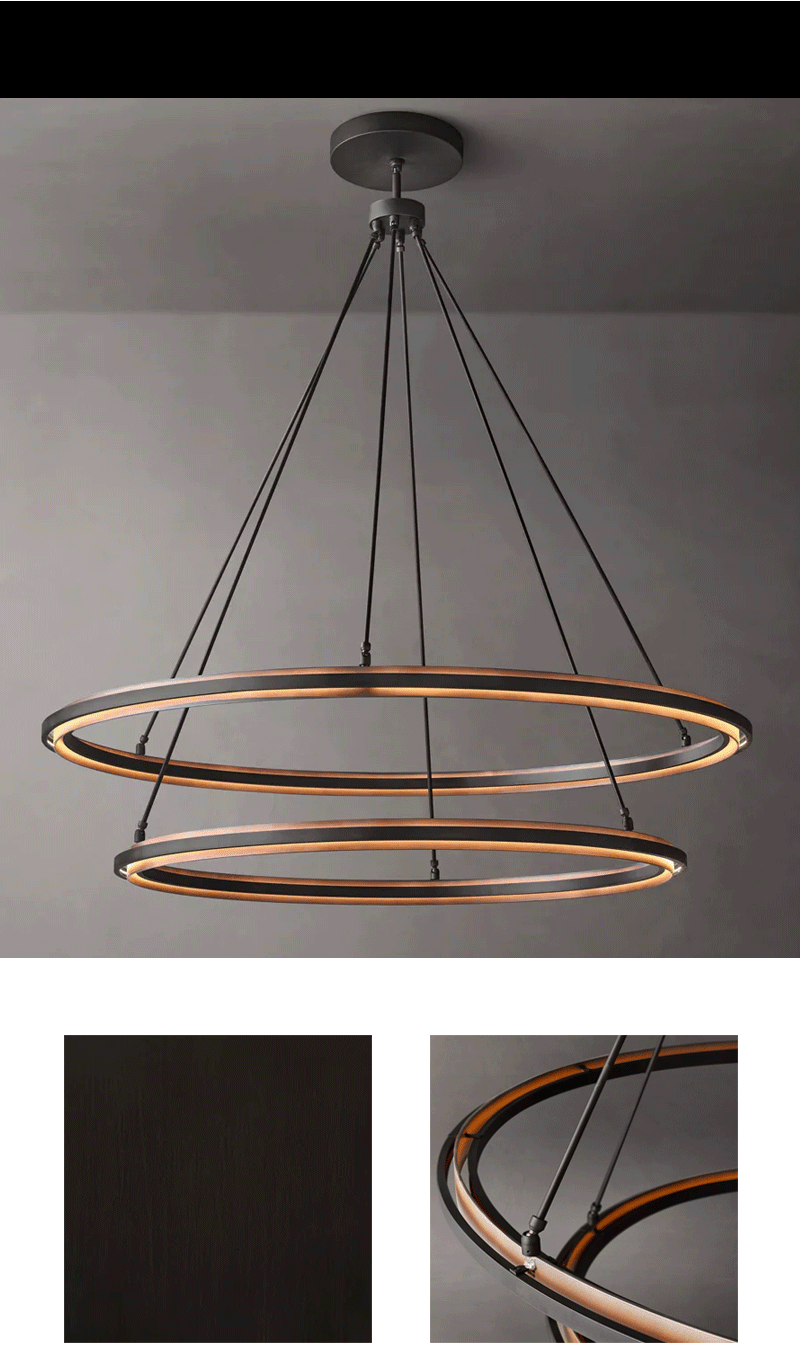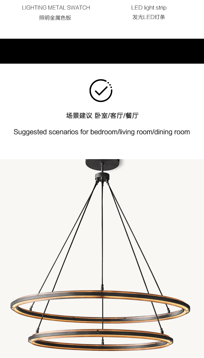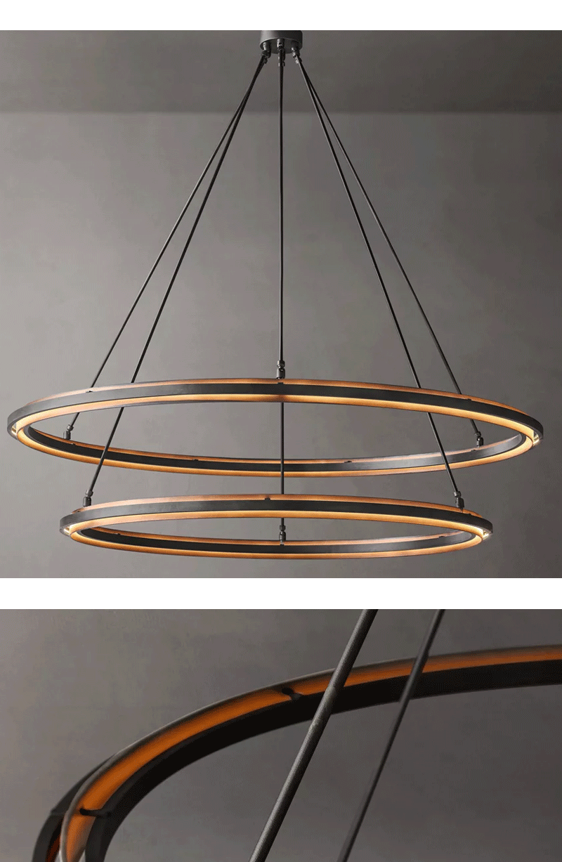 美式轻奢客厅卧室两层圆形枝形吊灯
