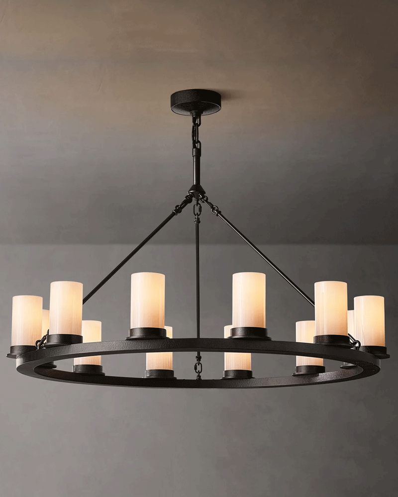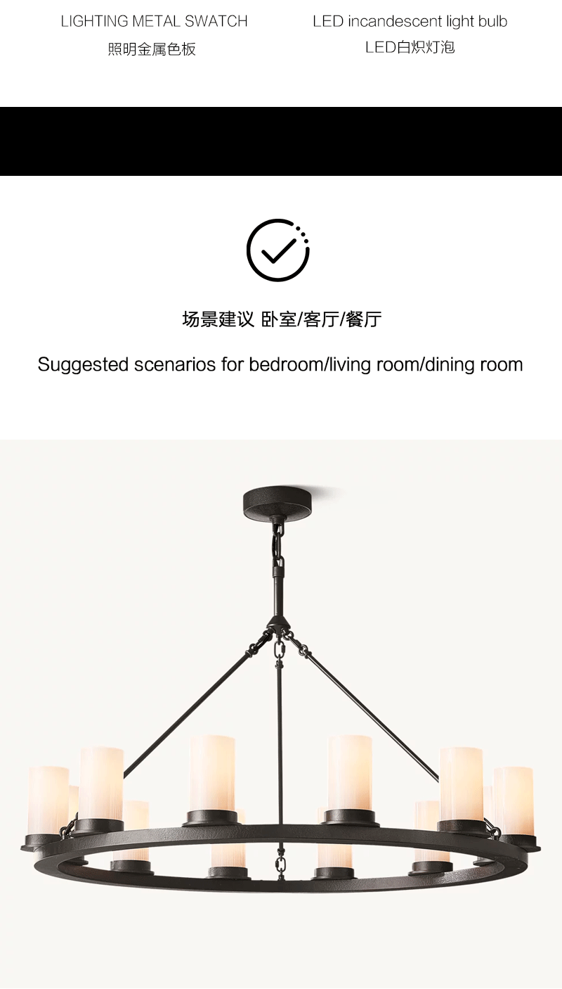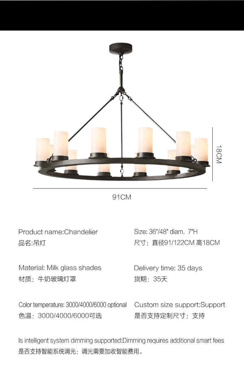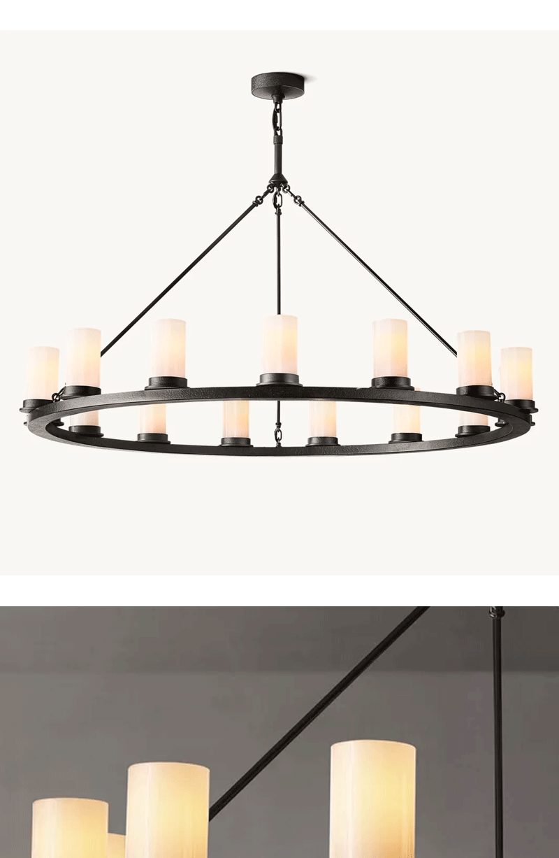 美式轻奢客厅卧室圆形牛奶玻璃灯罩吊灯