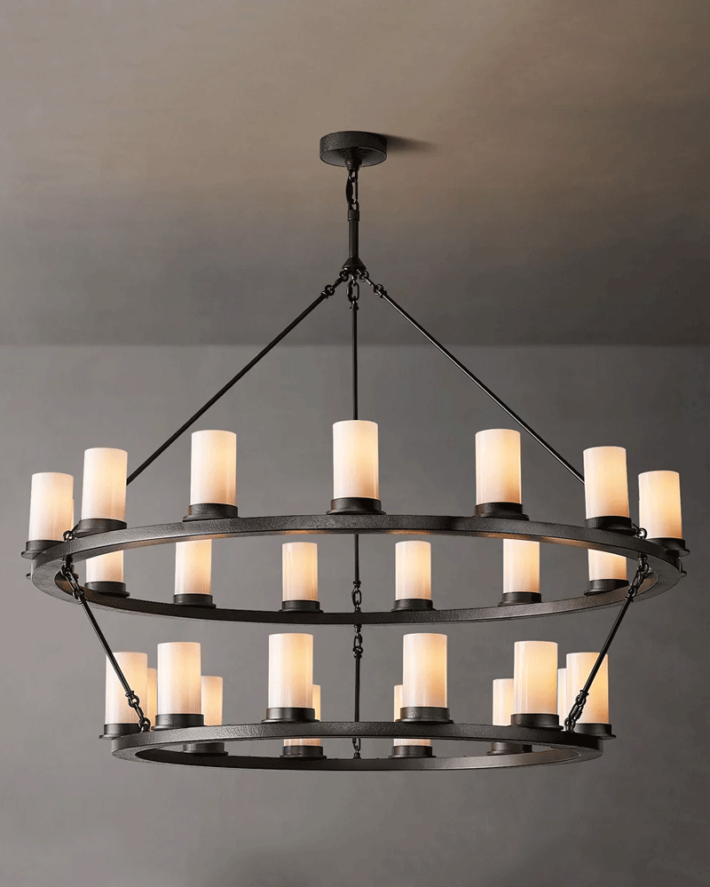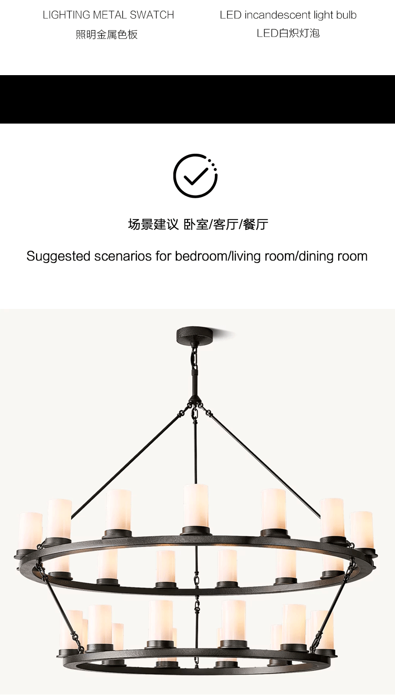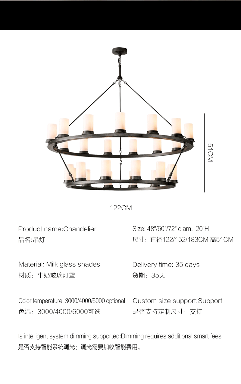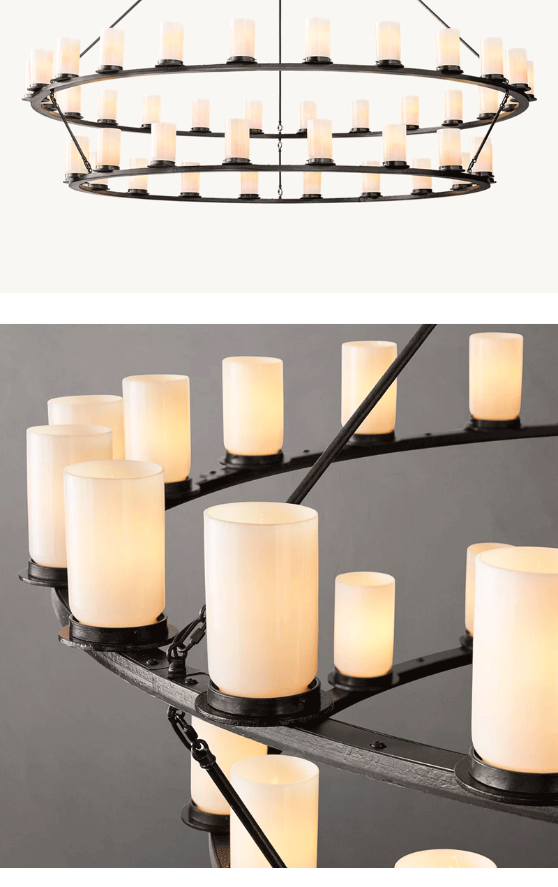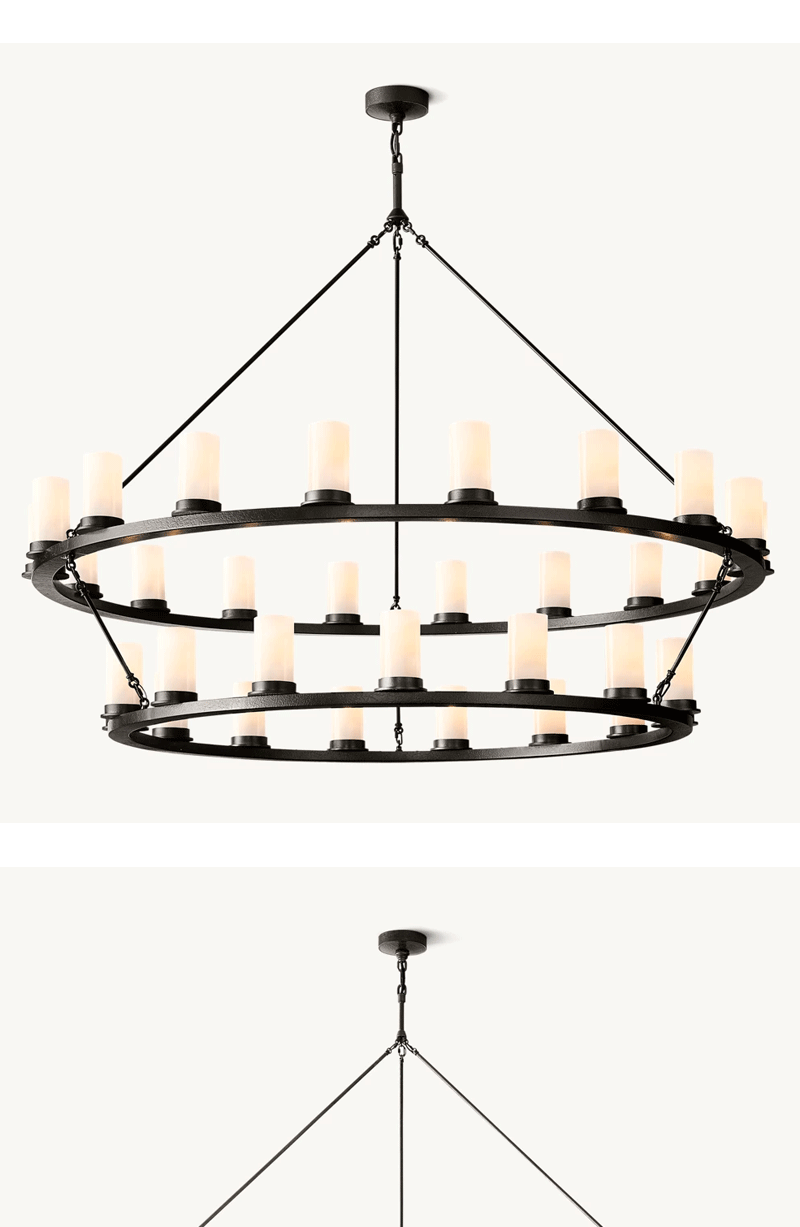 美式轻奢客厅卧室两层牛奶玻璃枝形吊灯