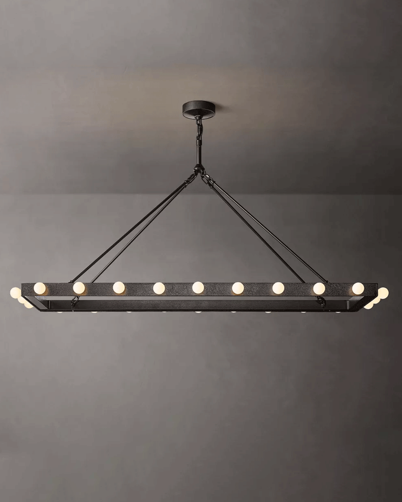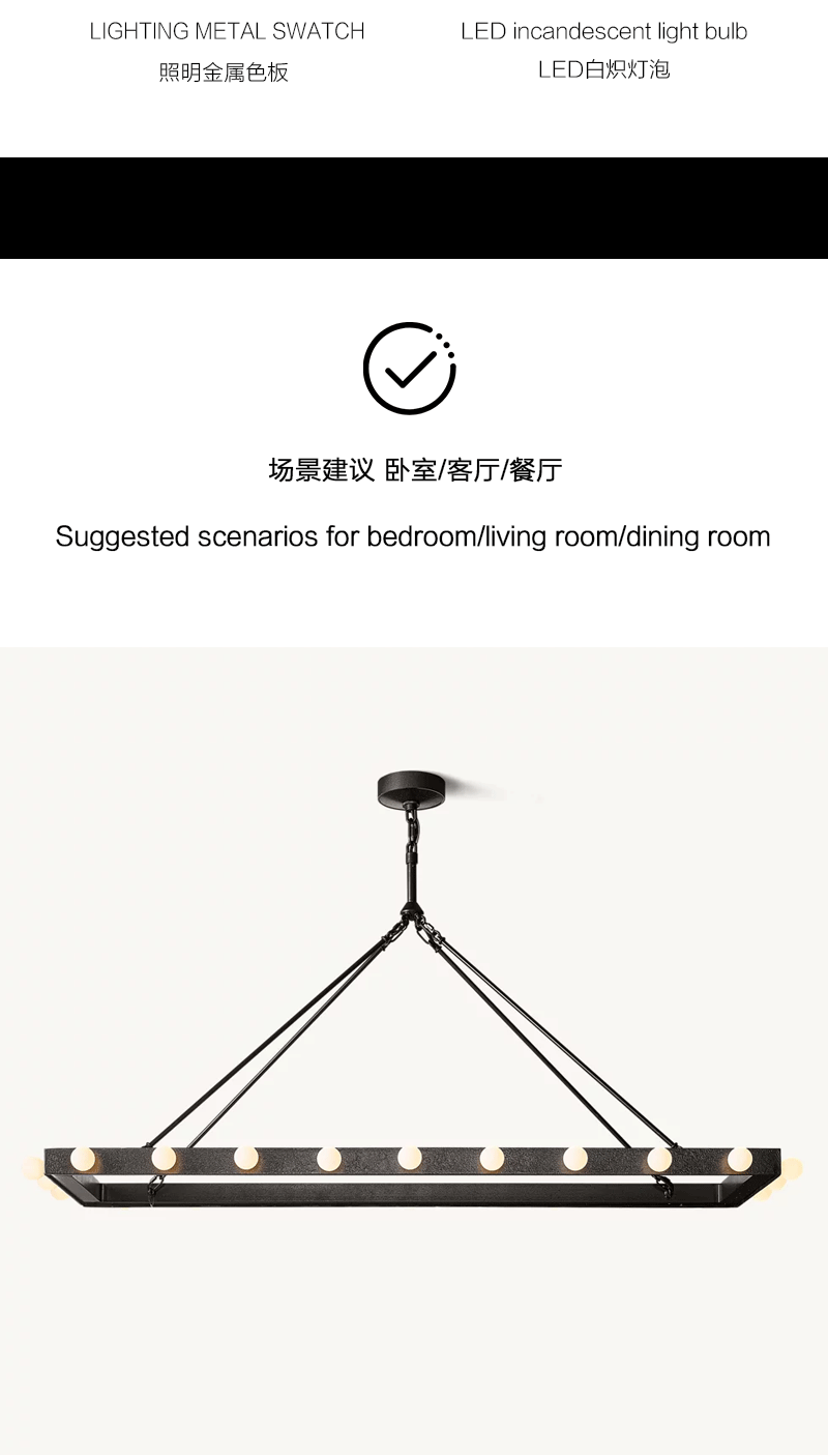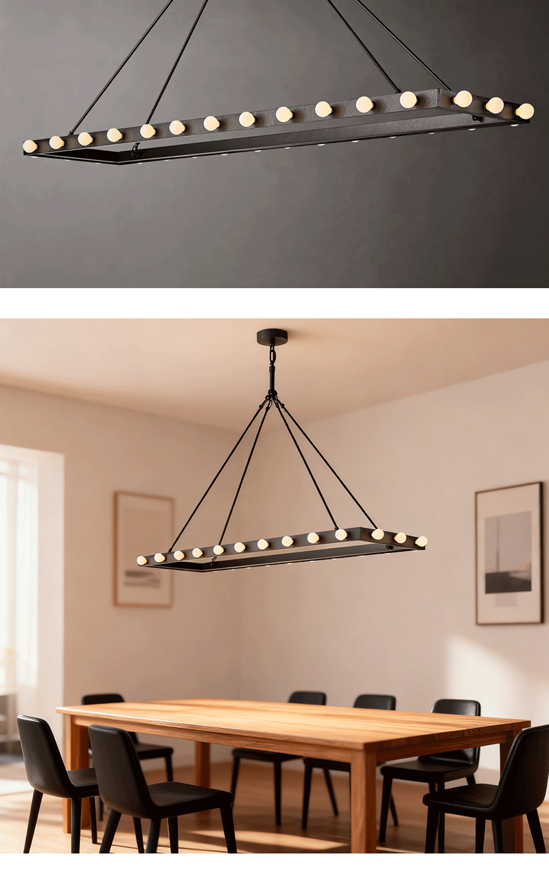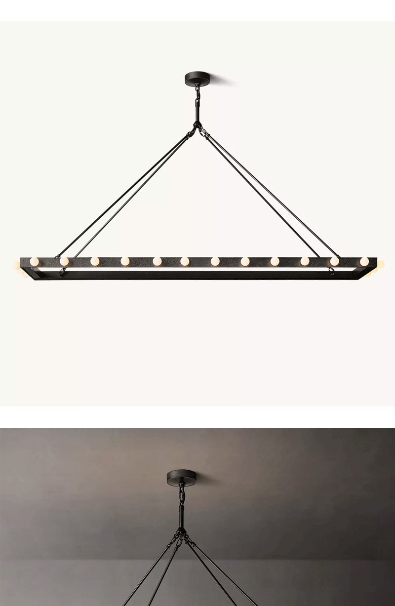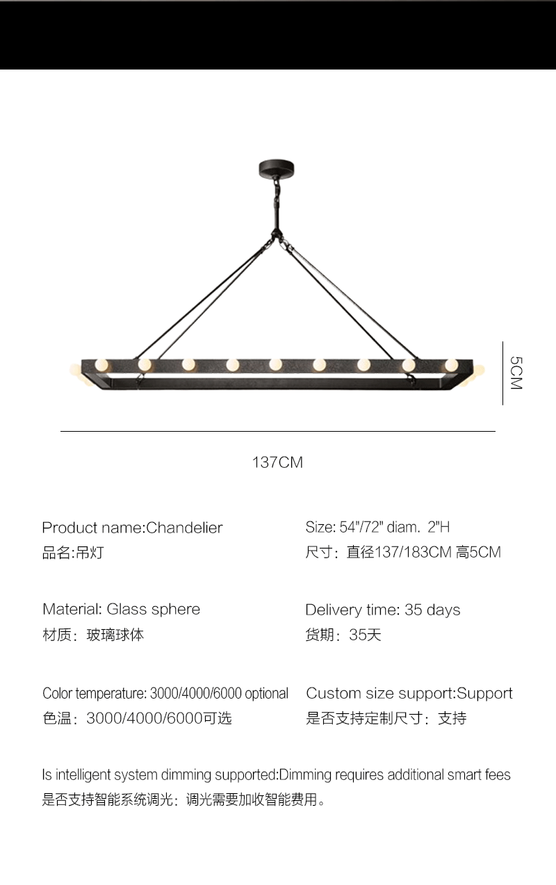 美式轻奢客厅餐厅矩形玻璃球体吊灯