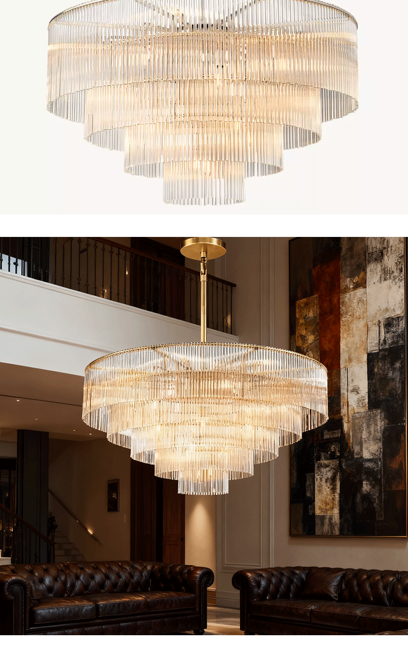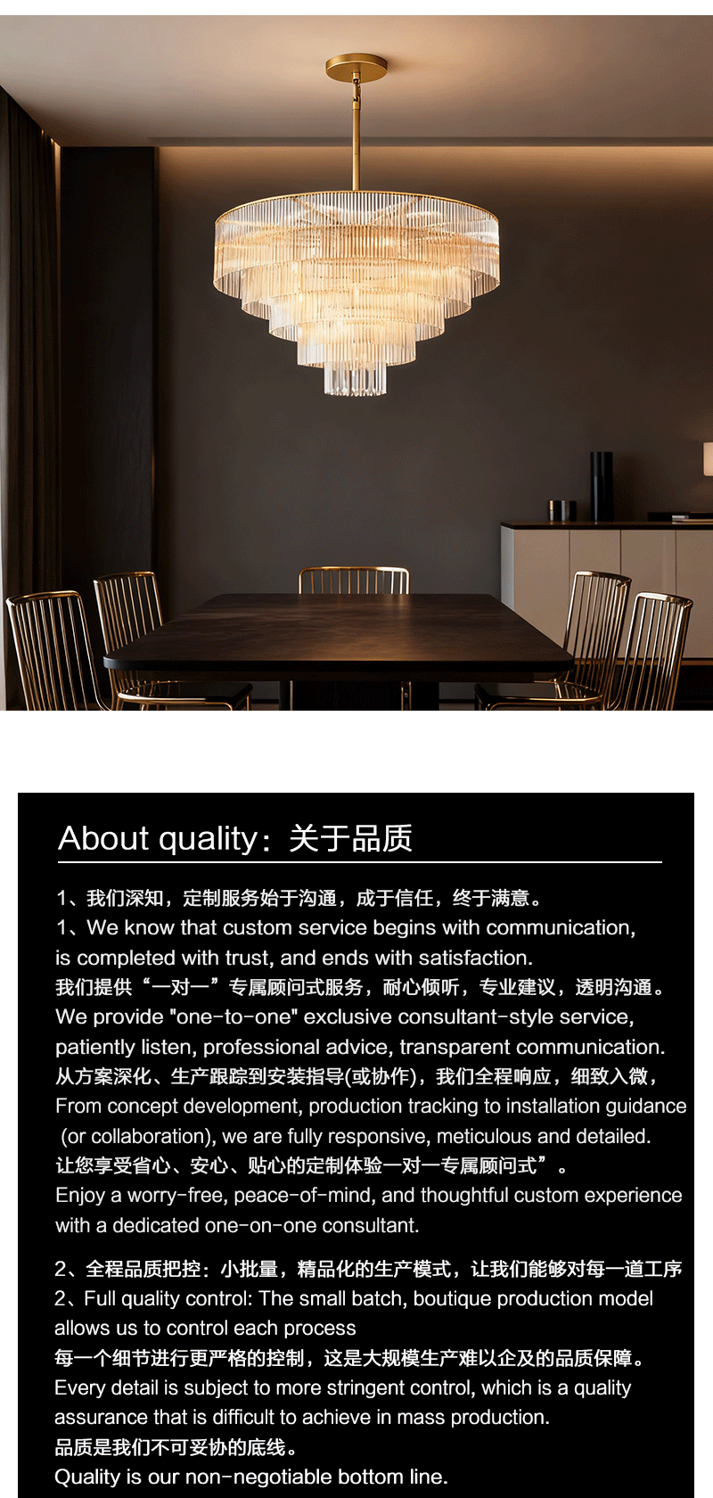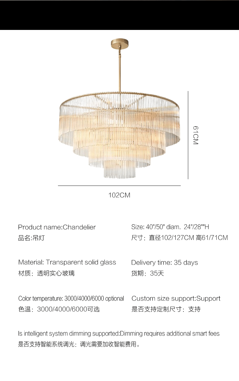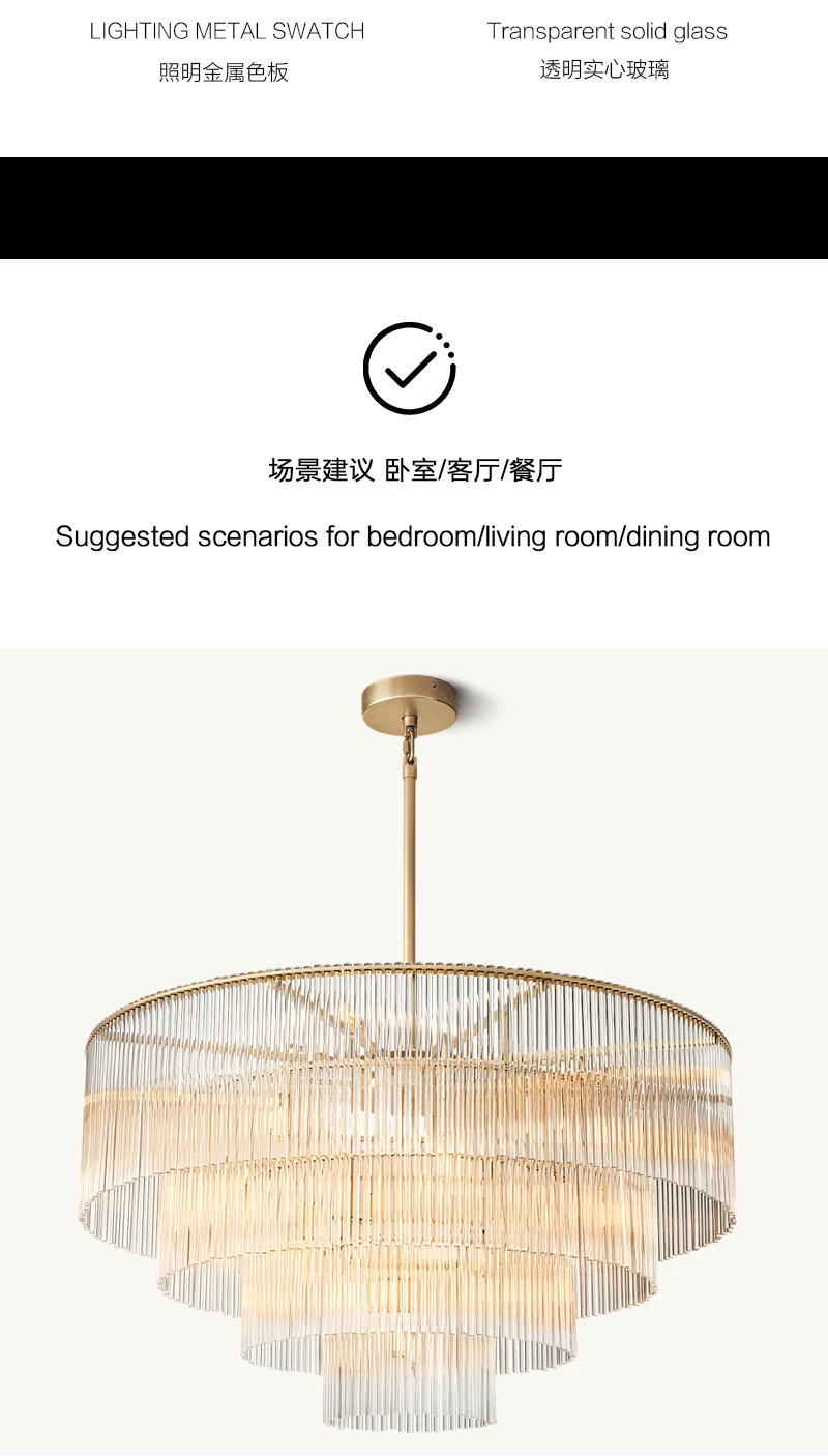 美式轻奢客厅卧室透明实心玻璃吊灯